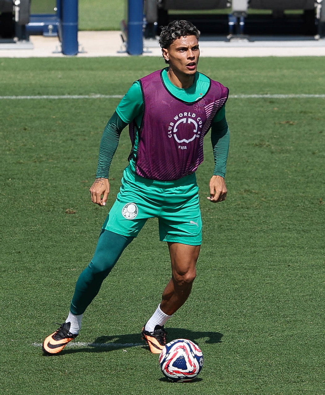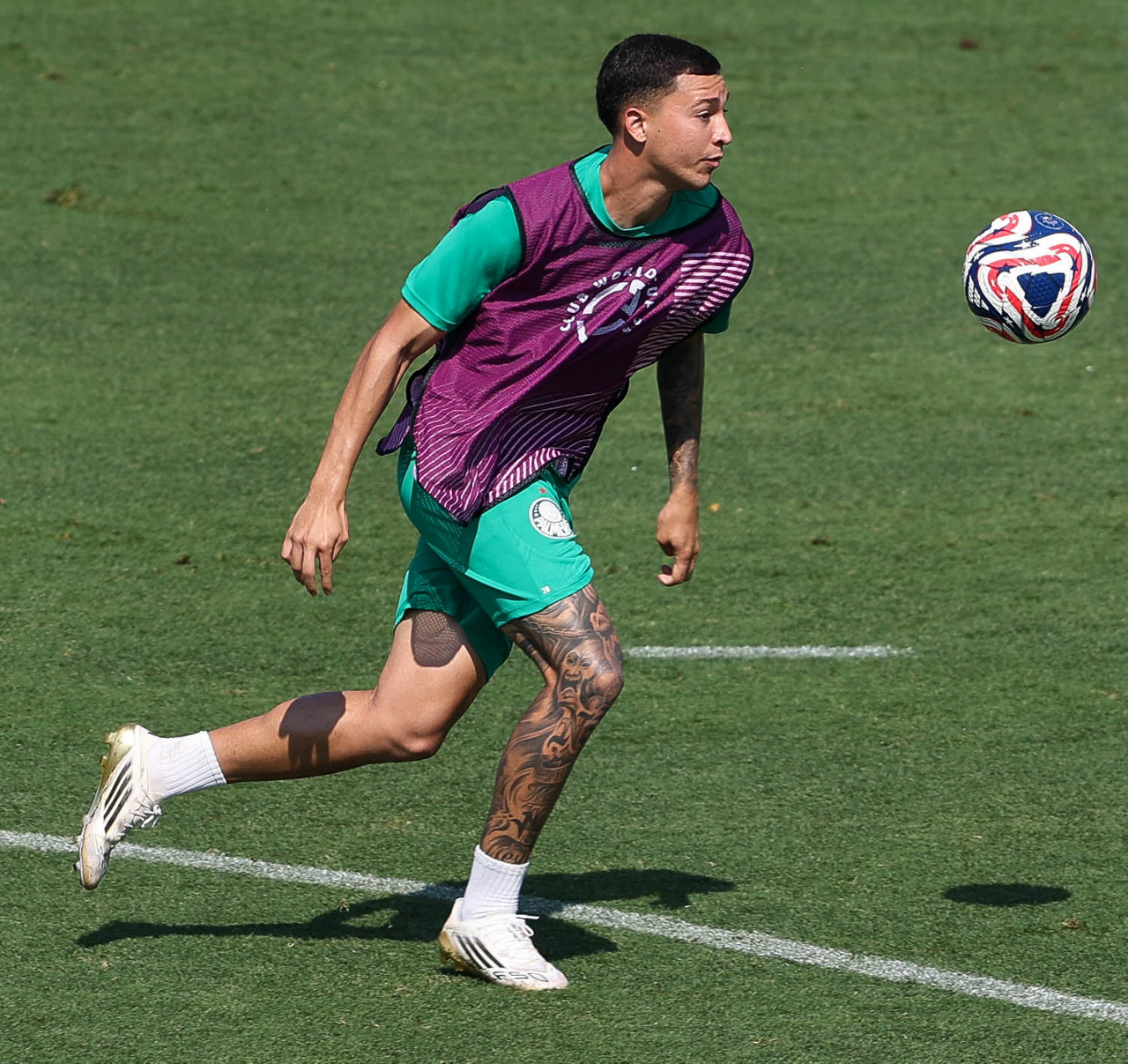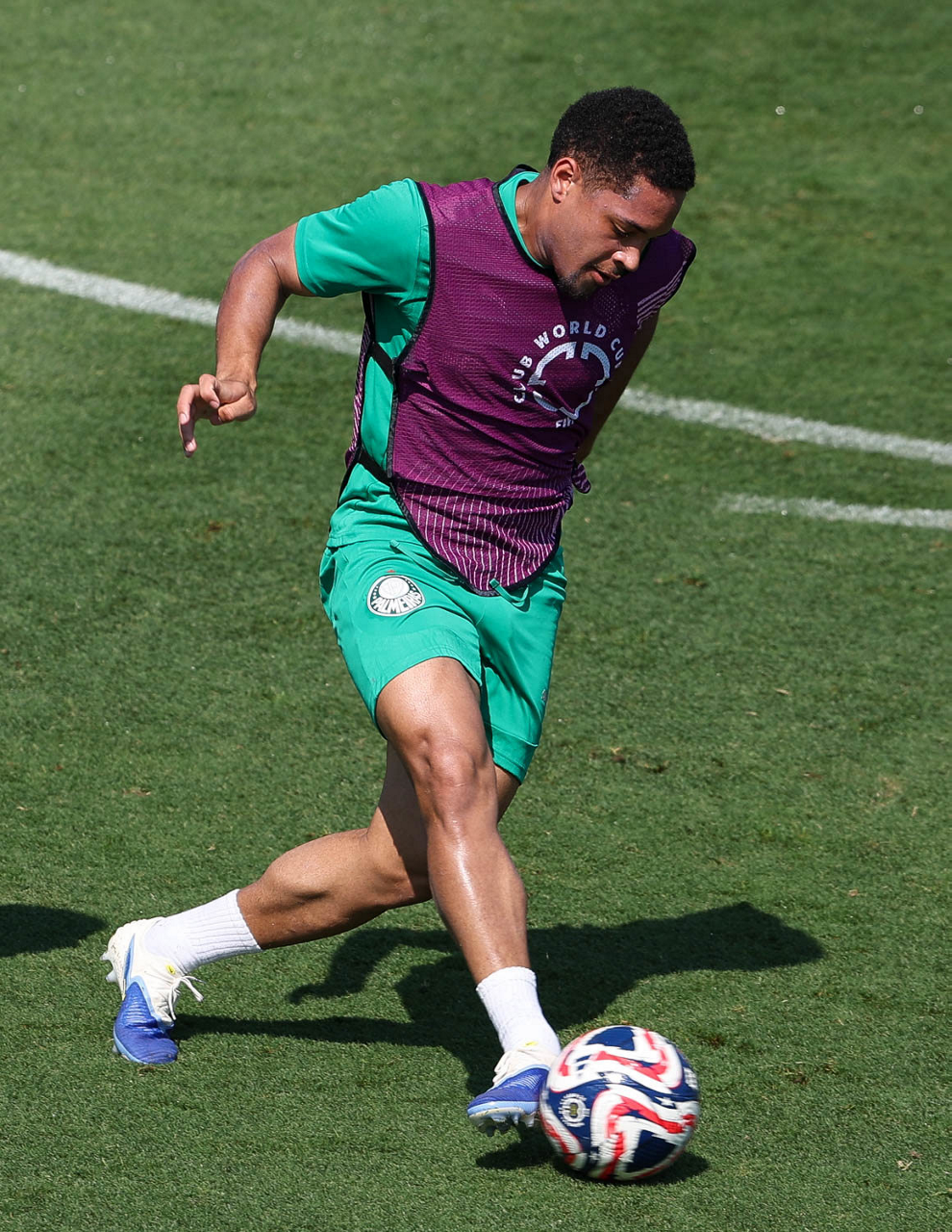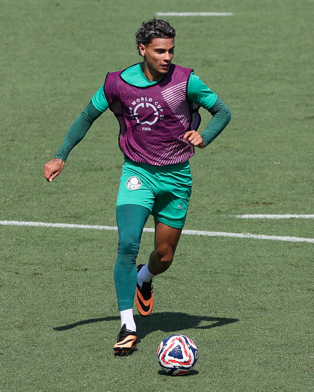 O jogador Richard Ríos, da SE Palmeiras, durante treinamento, na Universidade da Carolina do Norte. (Foto: Cesar Greco/Palmeiras/by Canon)