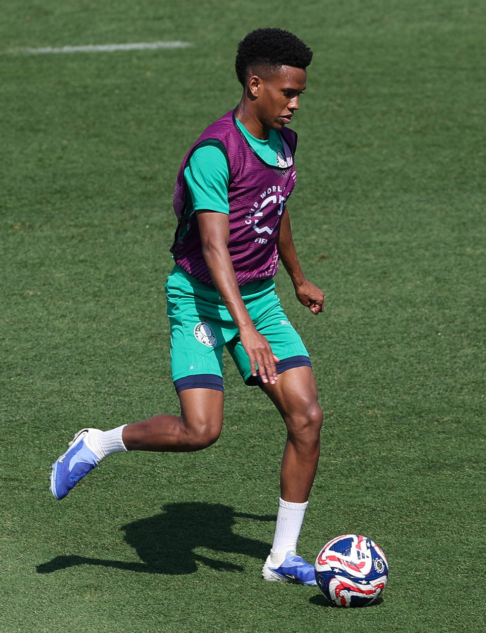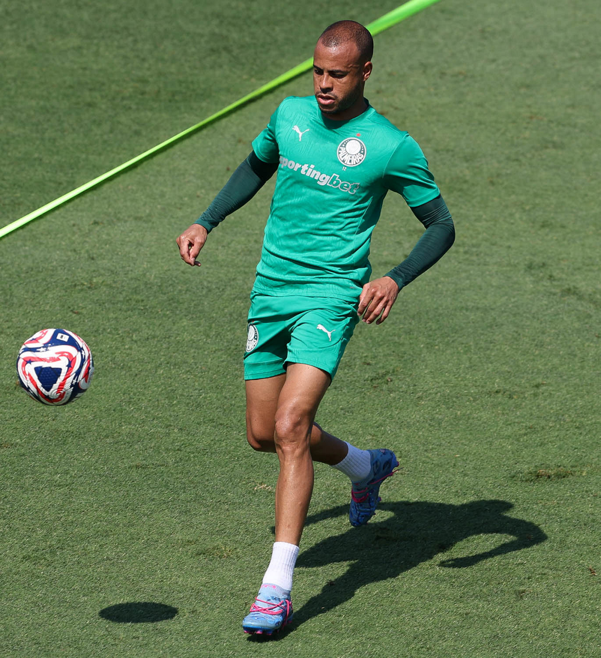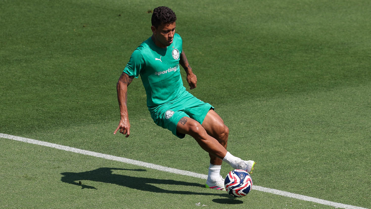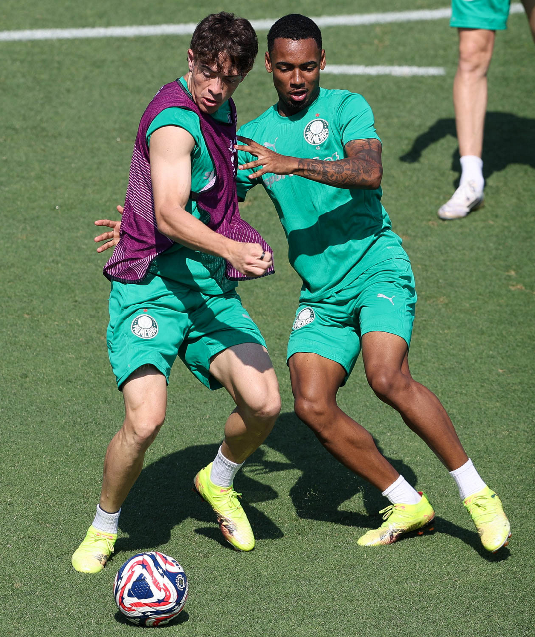 O jogador Richard Ríos, da SE Palmeiras, durante treinamento, na Universidade da Carolina do Norte. (Foto: Cesar Greco/Palmeiras/by Canon)
