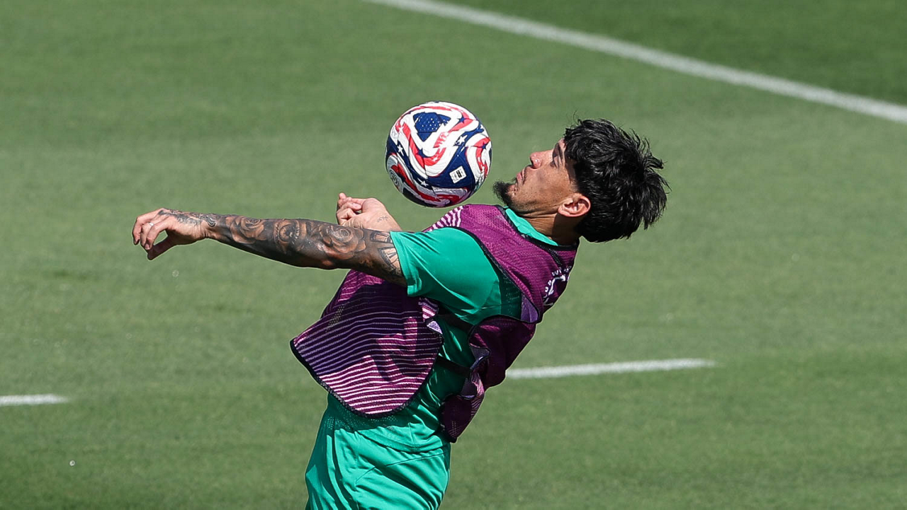 O jogador Joaquín Piquerez, da SE Palmeiras, durante treinamento, na Universidade da Carolina do Norte. (Foto: Cesar Greco/Palmeiras/by Canon)