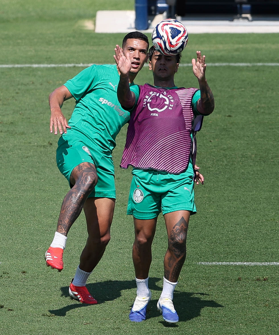 Os jogadores Estêvão e Allan (D), da SE Palmeiras, durante treinamento, na Universidade da Carolina do Norte. (Foto: Cesar Greco/Palmeiras/by Canon)