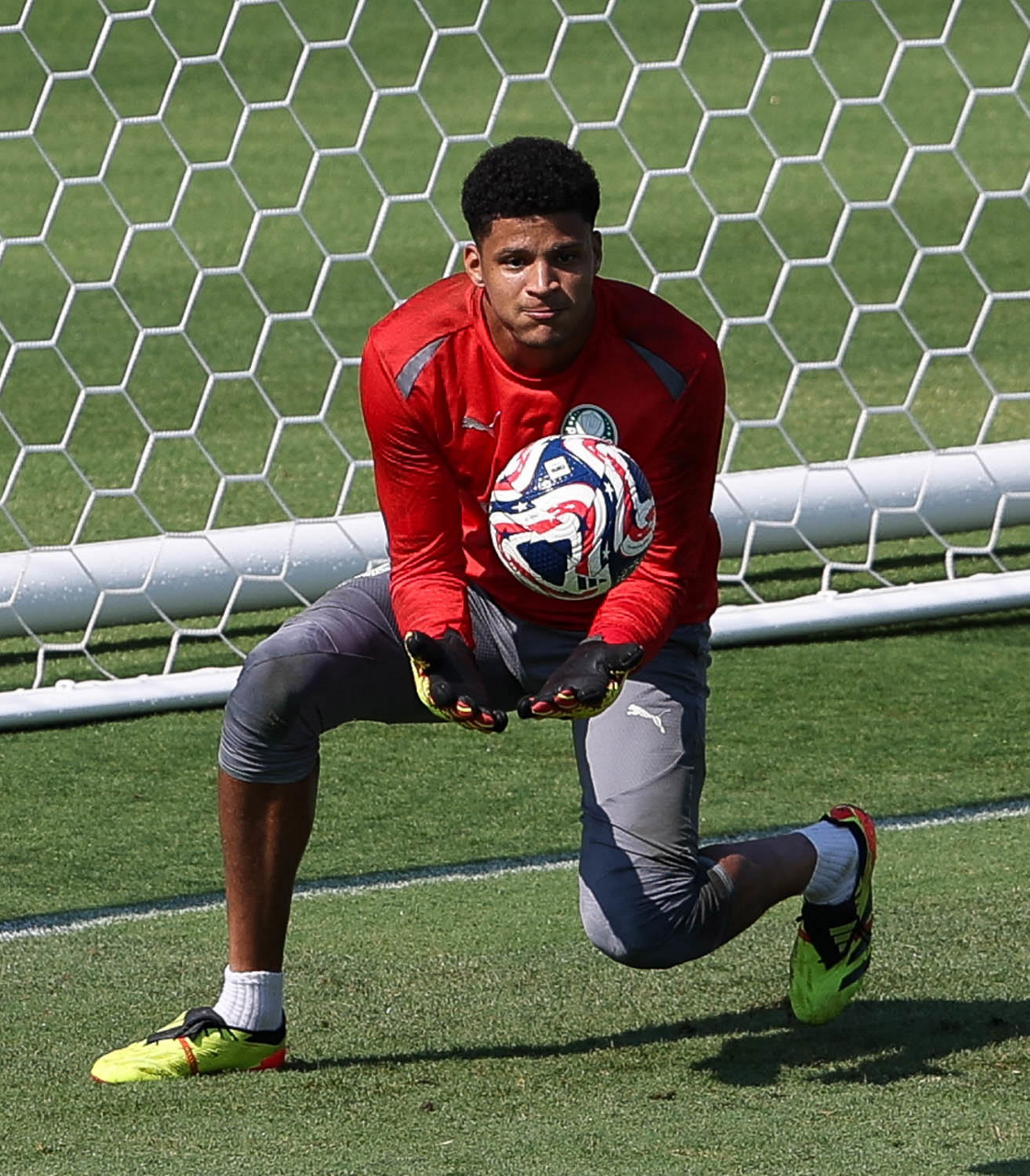 O goleiro Weverton, da SE Palmeiras, durante treinamento, na Universidade da Carolina do Norte. (Foto: Cesar Greco/Palmeiras/by Canon)