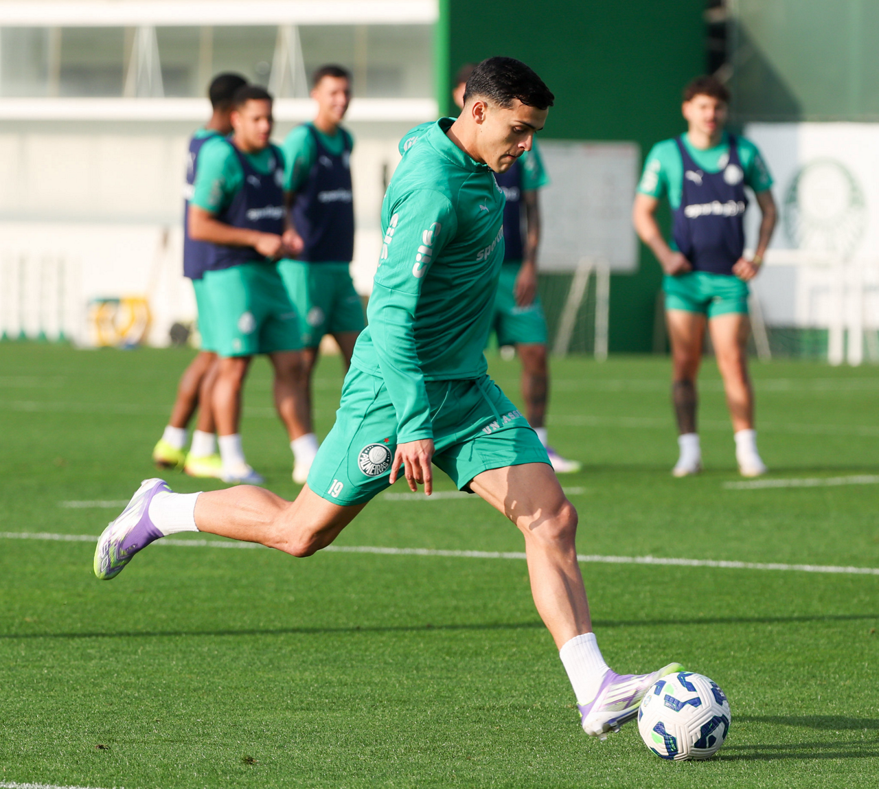 Os atletas da SE Palmeiras, durante treinamento na Academia de Futebol, em São Paulo-SP. (Foto: Fabio Menotti/Palmeiras/by Canon)