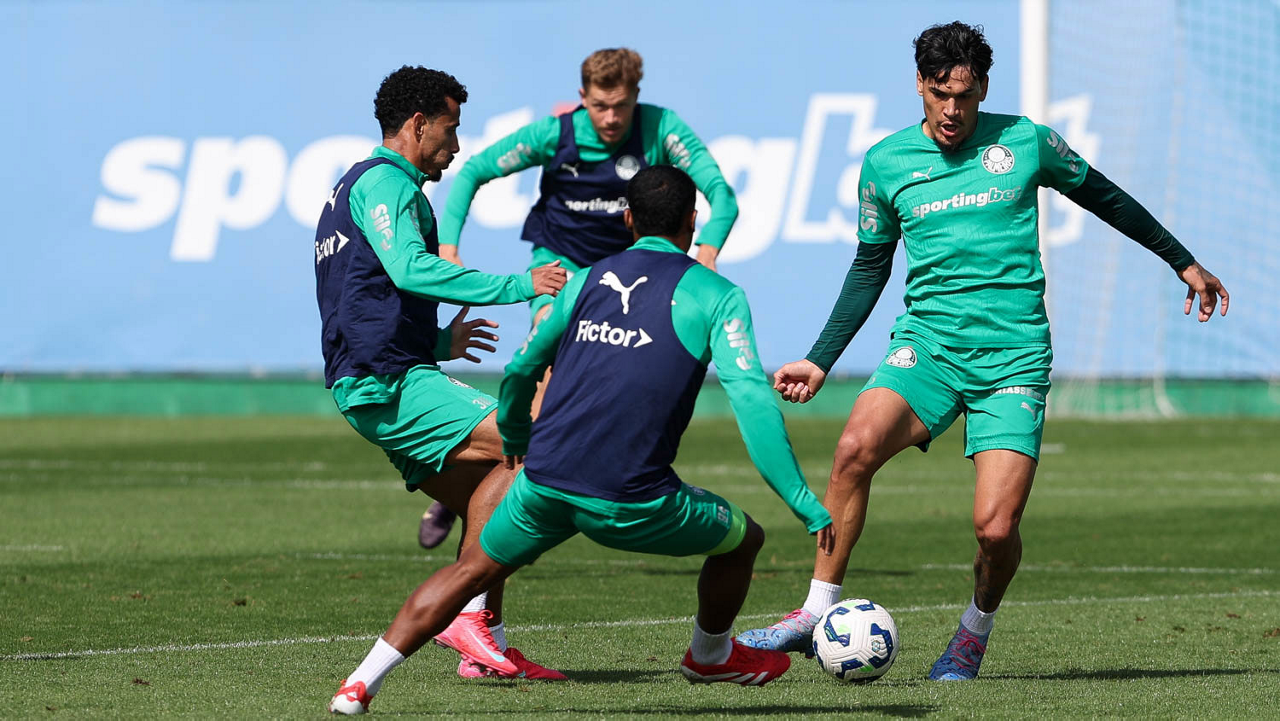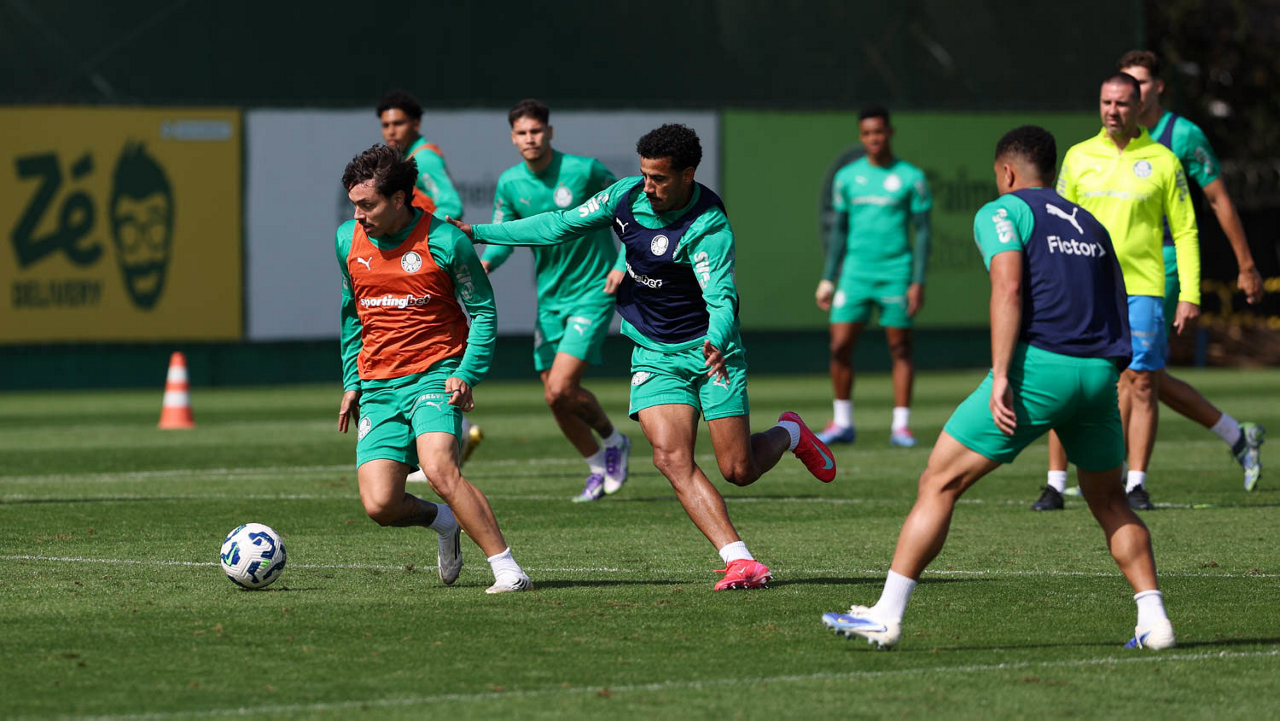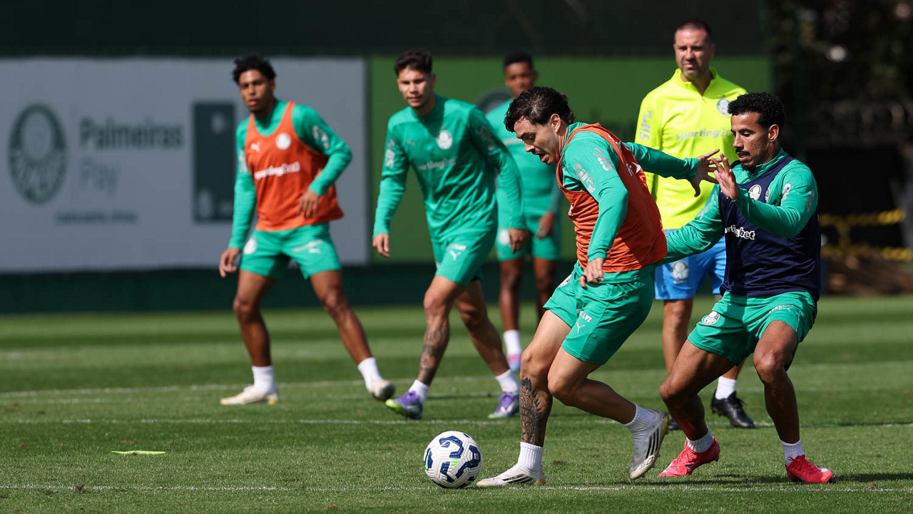 Os jogadores da SE Palmeiras, durante treinamento, na Academia de Futebol. (Foto: Cesar Greco/Palmeiras/by Canon)