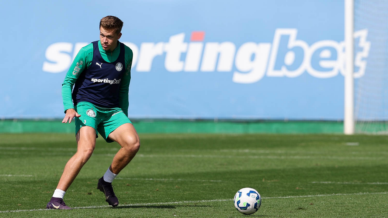 O jogador Bruno Fuchs, da SE Palmeiras, durante treinamento, na Academia de Futebol. (Foto: Cesar Greco/Palmeiras/by Canon)