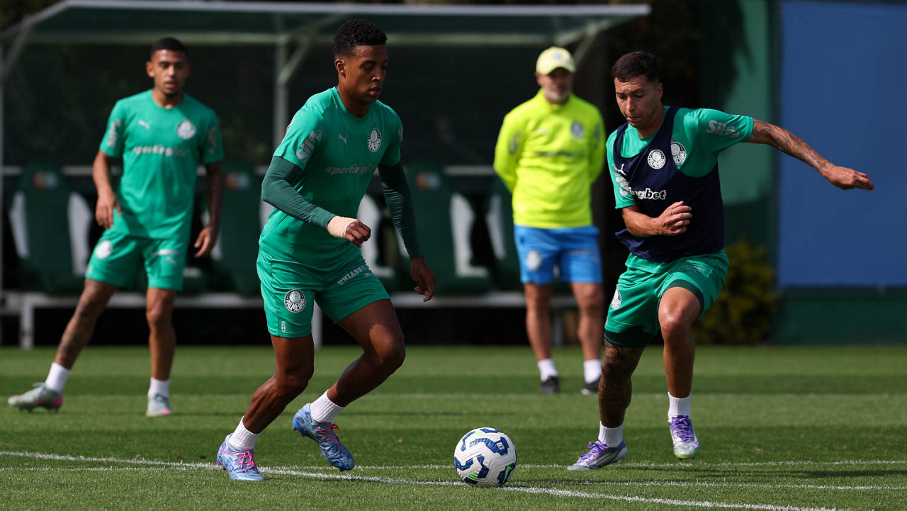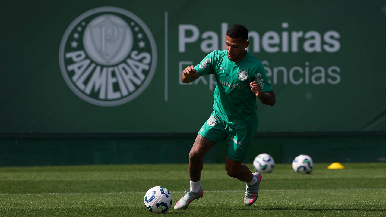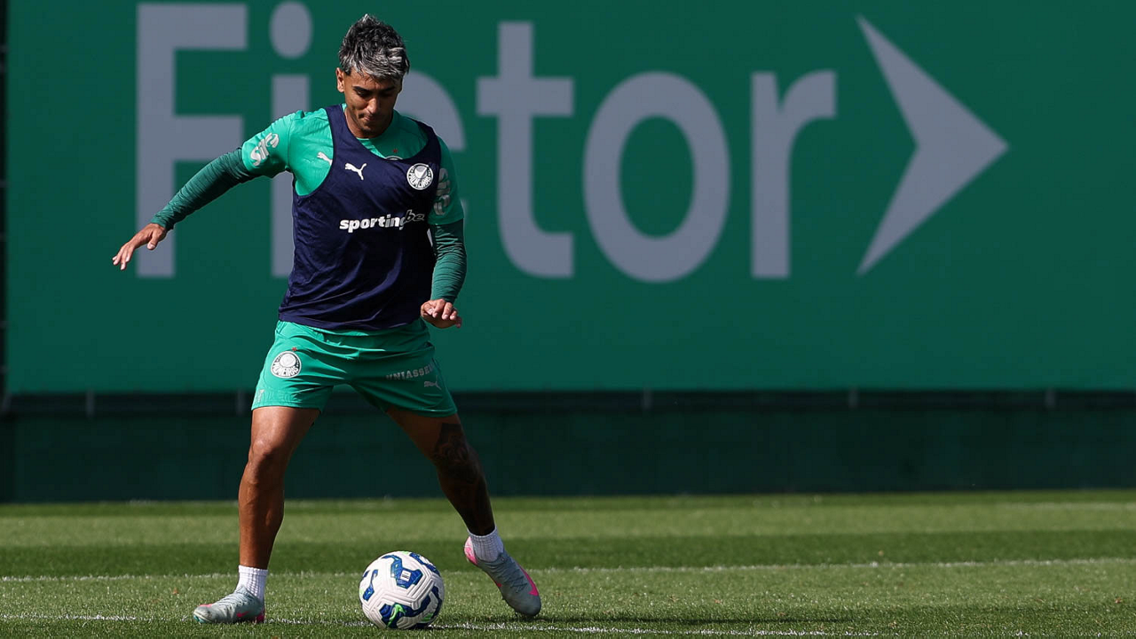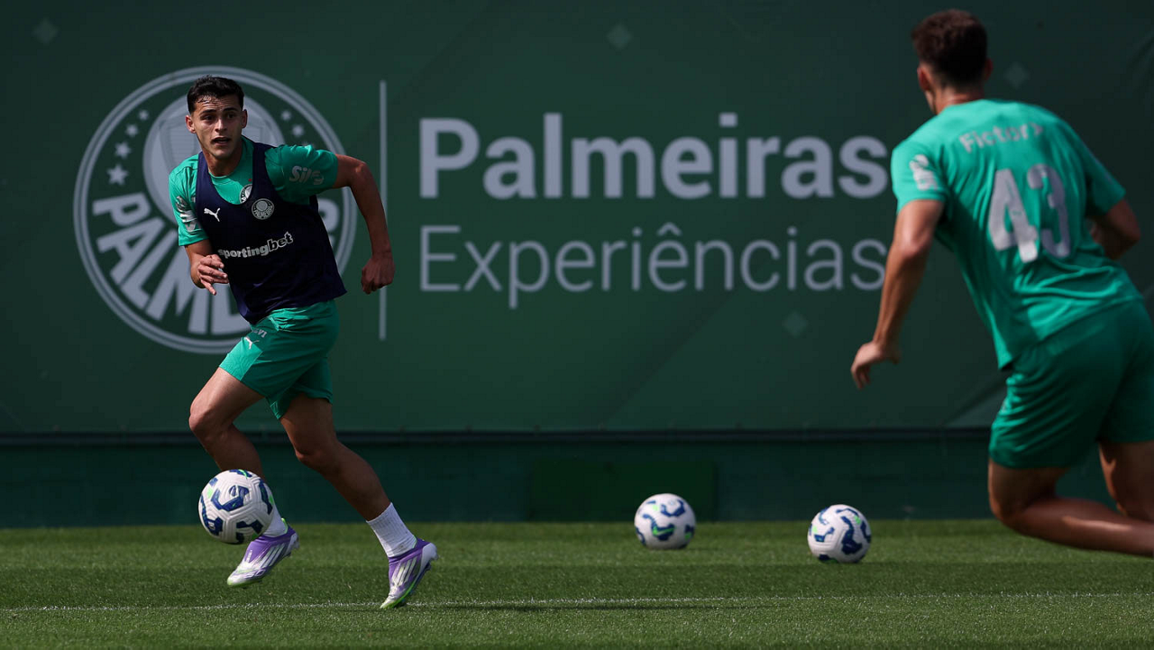 O jogador Vitor Roque, da SE Palmeiras, durante treinamento, na Academia de Futebol. (Foto: Cesar Greco/Palmeiras/by Canon)
