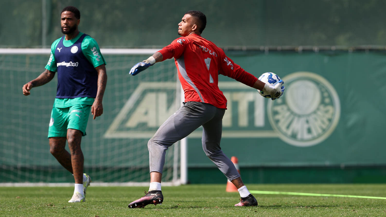 O jogador Emiliano Martínez, da SE Palmeiras, durante treinamento, na Academia de Futebol. (Foto: Cesar Greco/Palmeiras/by Canon)