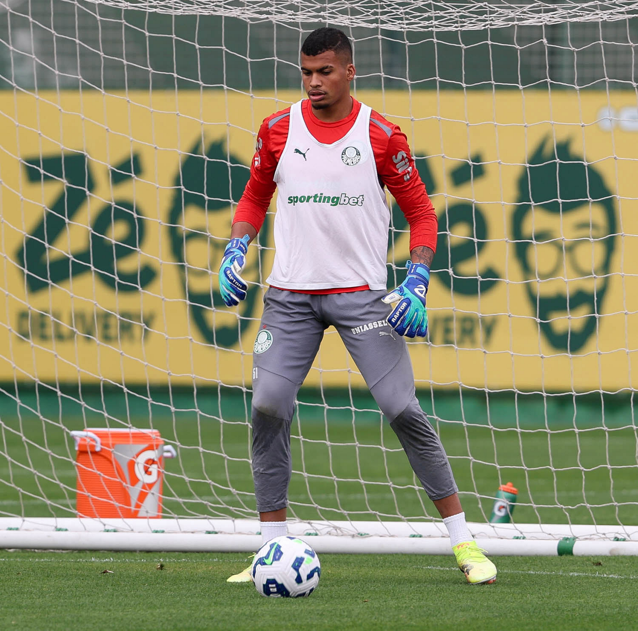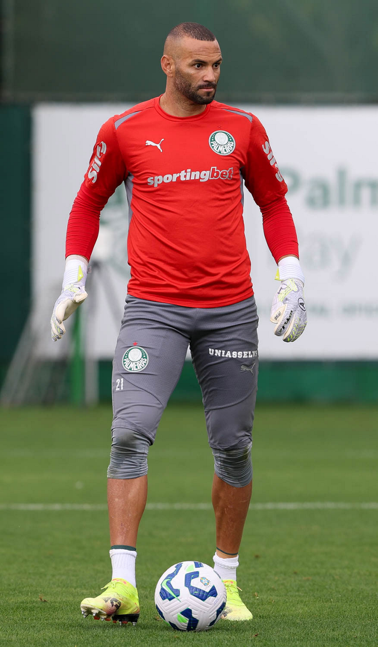 O goleiro Weverton, da SE Palmeiras, durante treinamento, na Academia de Futebol. (Foto: Cesar Greco/Palmeiras/by Canon)