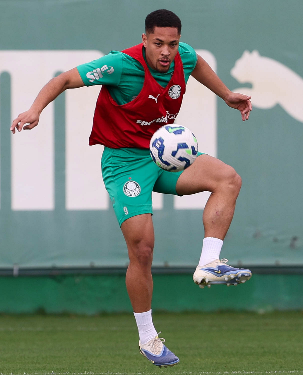 O jogador Vitor Roque, da SE Palmeiras, durante treinamento, na Academia de Futebol. (Foto: Cesar Greco/Palmeiras/by Canon)