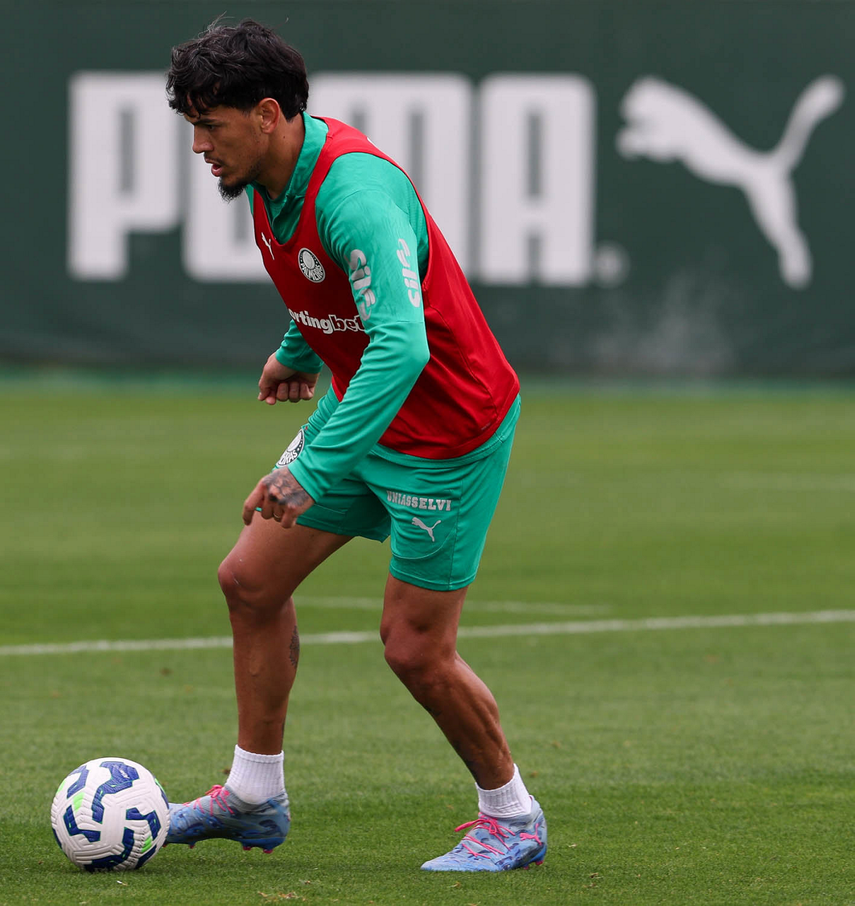 O jogador Benedetti, da SE Palmeiras, durante treinamento, na Academia de Futebol. (Foto: Cesar Greco/Palmeiras/by Canon)