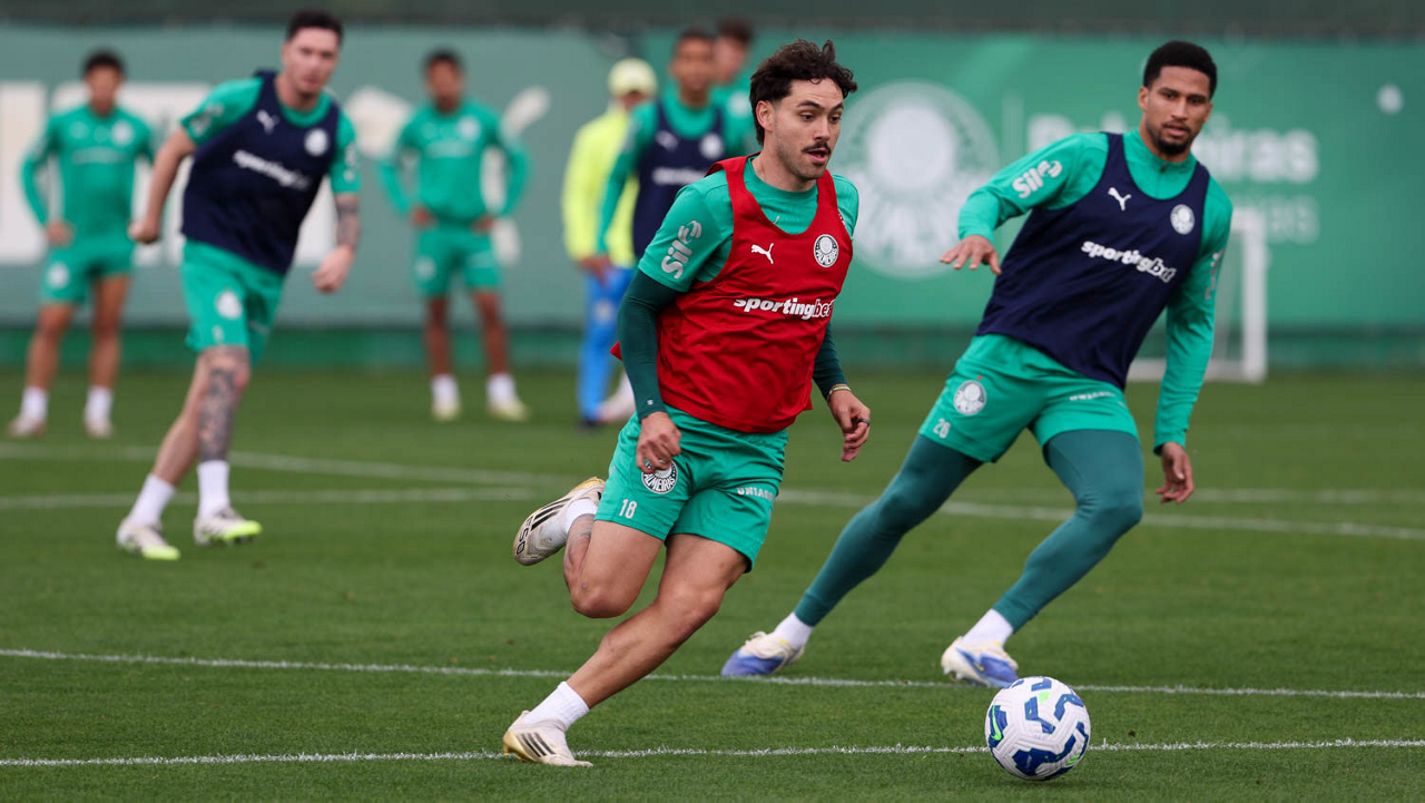 O jogador Raphael Veiga, da SE Palmeiras, durante treinamento, na Academia de Futebol. (Foto: Cesar Greco/Palmeiras/by Canon)
