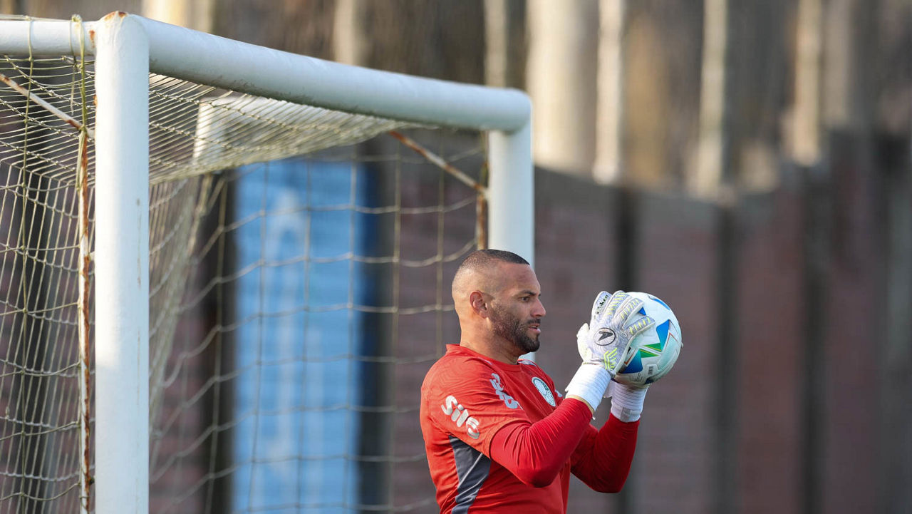 O goleiro Weverton, da SE Palmeiras, durante treinamento, no CT do Alianza Lima. (Foto: Cesar Greco/Palmeiras/by Canon)