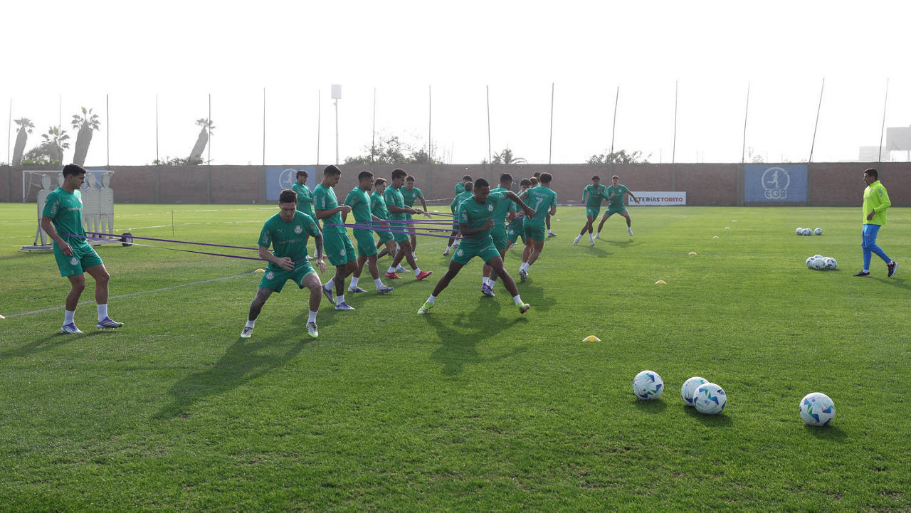 Os jogadores da SE Palmeiras, durante treinamento, no CT do Alianza Lima. (Foto: Cesar Greco/Palmeiras/by Canon)