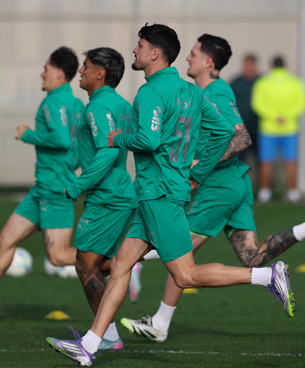 Os jogadores Vitor Roque, Ramón Sosa, Anibal Moreno e Agustín Giay (E/D), da SE Palmeiras, durante treinamento, no CT do Alianza Lima. (Foto: Cesar Greco/Palmeiras/by Canon)