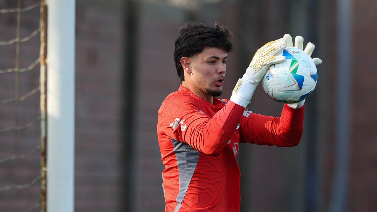 O jogador Emiliano Martínez, da SE Palmeiras, durante treinamento, no CT do Alianza Lima. (Foto: Cesar Greco/Palmeiras/by Canon)