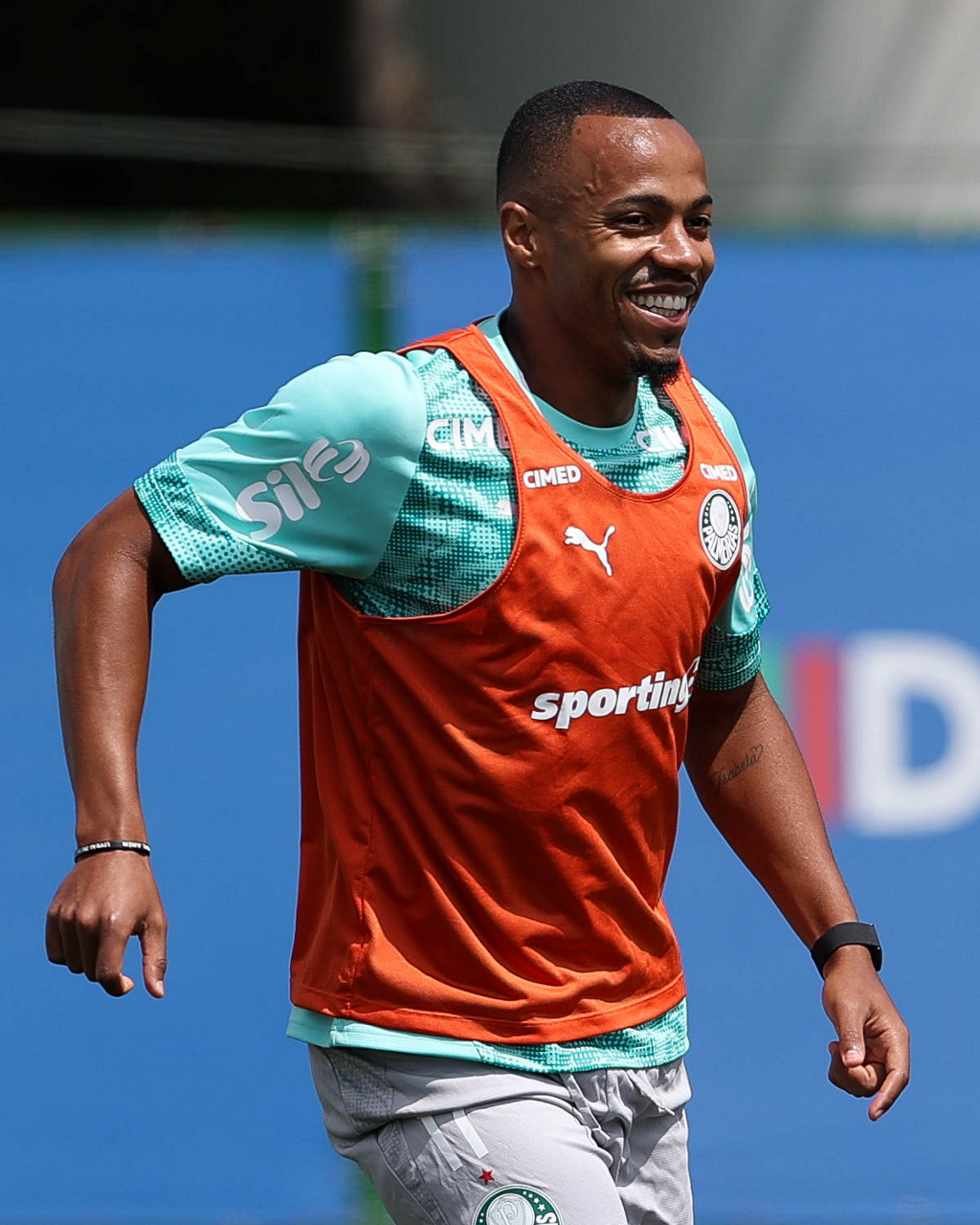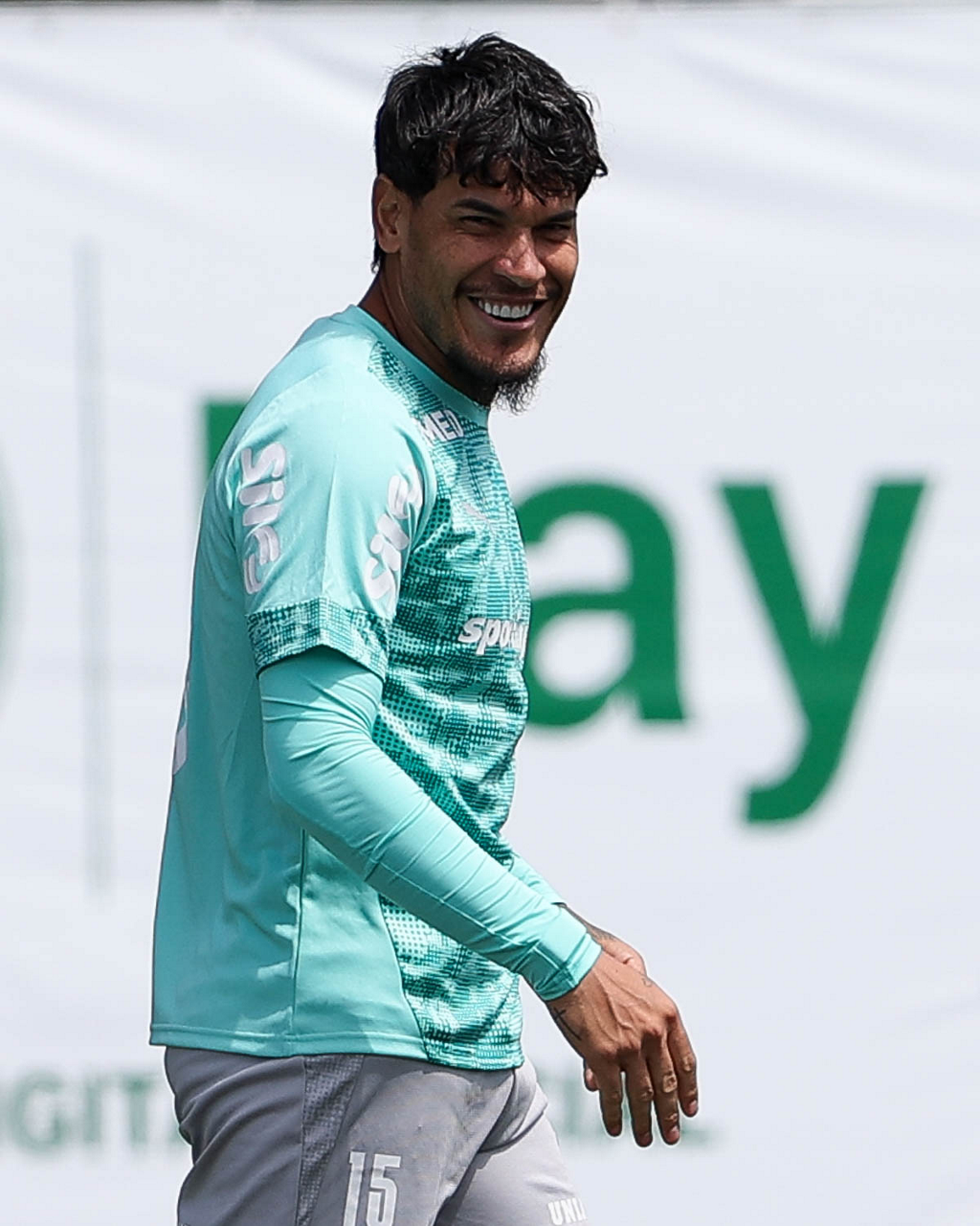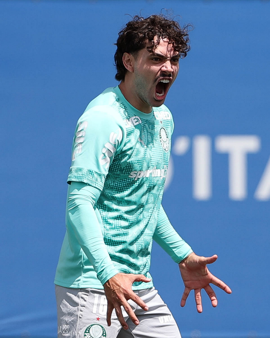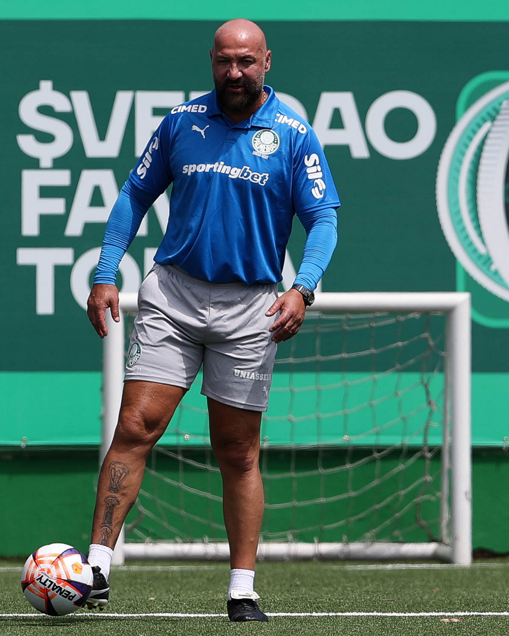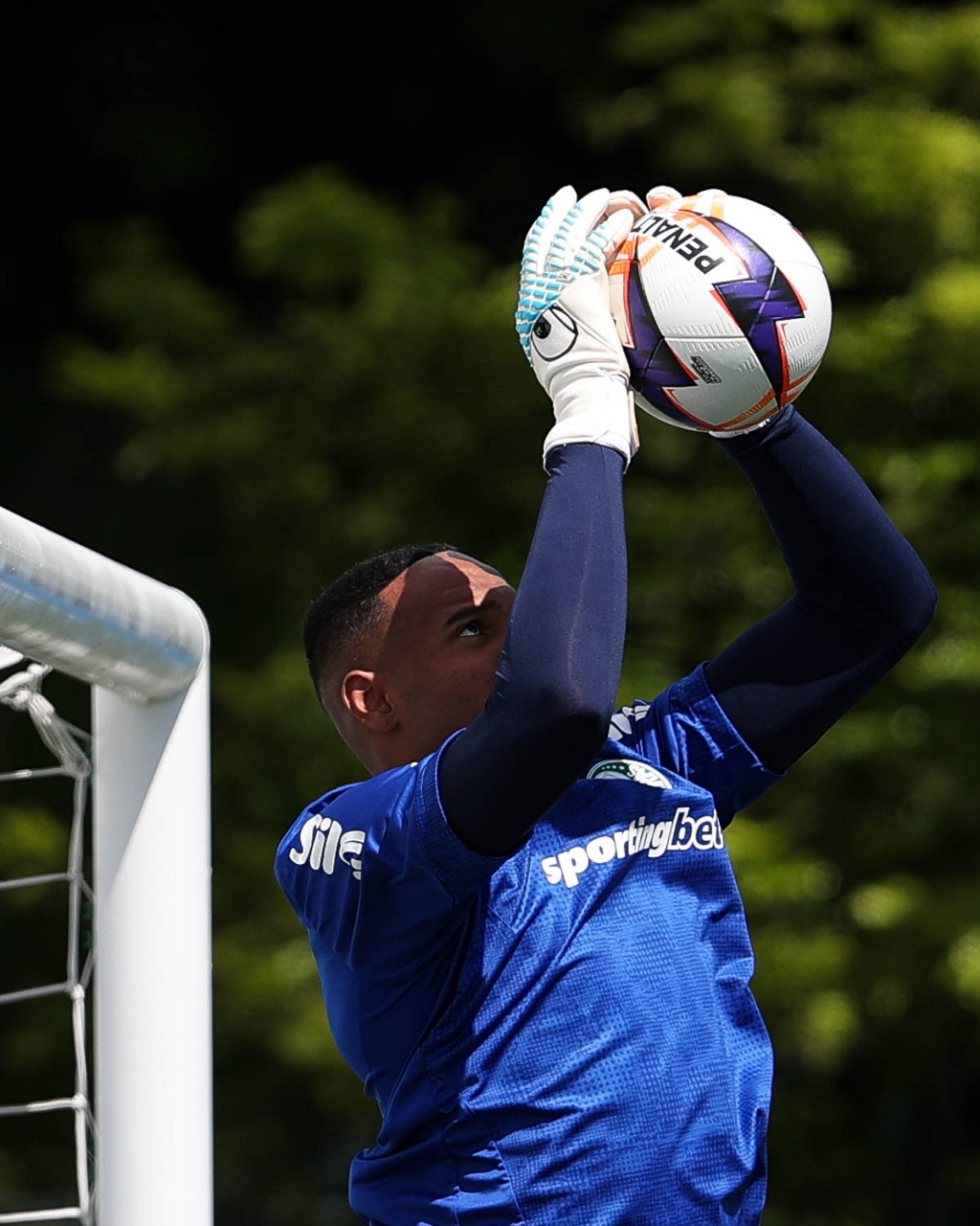 Os jogadores Sá, Larson, Carlos Miguel, Gustavo Gómez e Luighi (E/D em pé) e Vitor Roque, Arthur, Joaquín Piquerez, Ramón Sosa, Agustín Giay, Flaco López, Emiliano Martínez e Jhon Arias (E/D agachados), da SE Palmeiras, durante treinamento, na Academia de Futebol. (Foto: Cesar Greco/Palmeiras/by Canon)