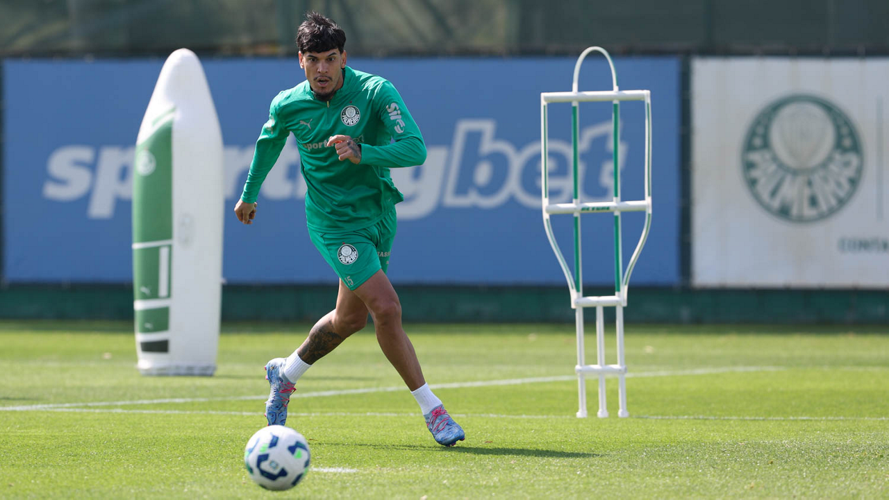 O jogador Vitor Roque, da SE Palmeiras, durante treinamento, na Academia de Futebol. (Foto: Cesar Greco/Palmeiras/by Canon)