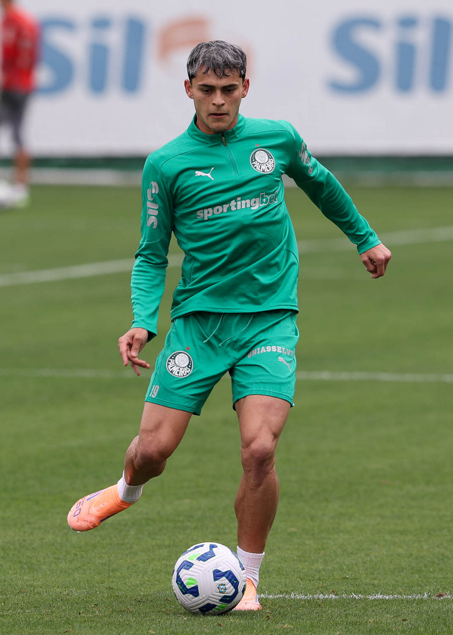 O jogador Bruno Fuchs, da SE Palmeiras, durante treinamento, na Academia de Futebol. (Foto: Cesar Greco/Palmeiras/by Canon)