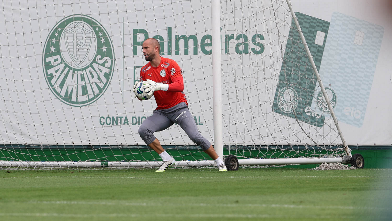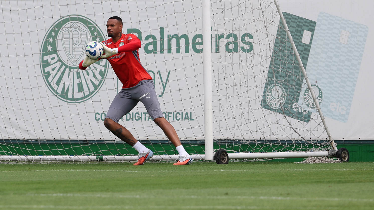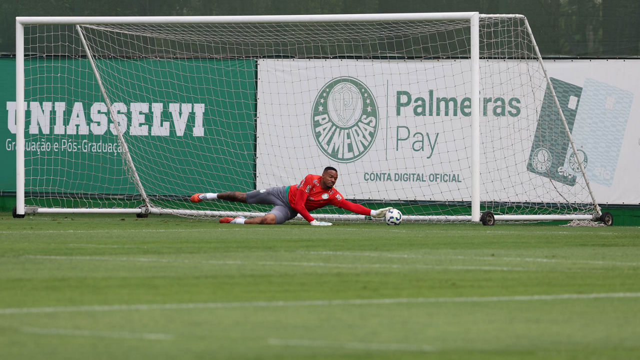 O goleiro Weverton, da SE Palmeiras, durante treinamento, na Academia de Futebol. (Foto: Cesar Greco/Palmeiras/by Canon)