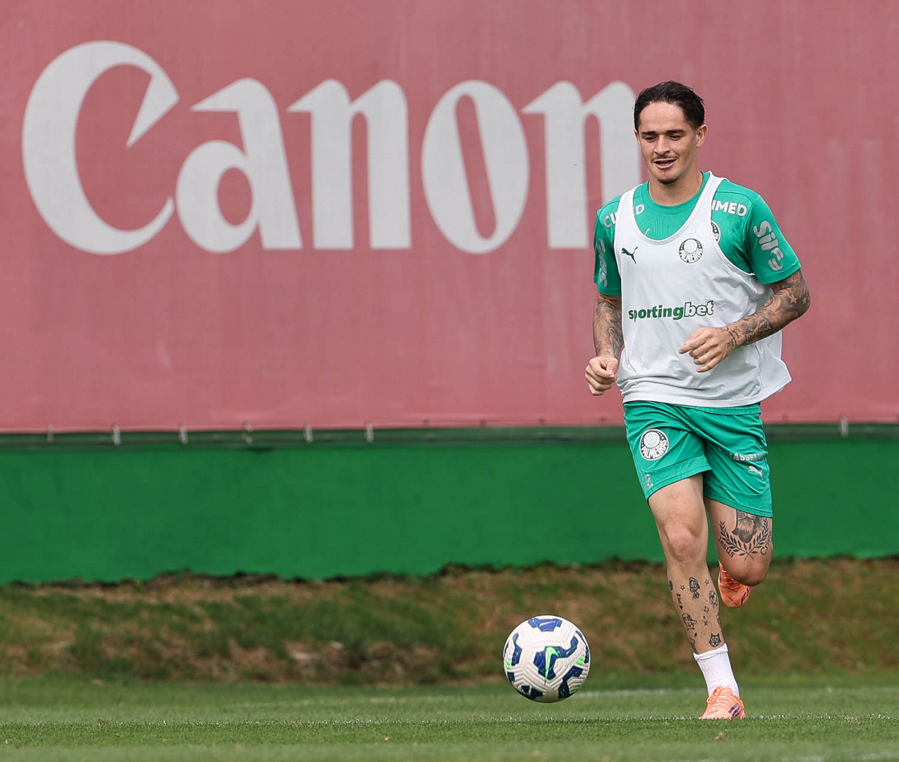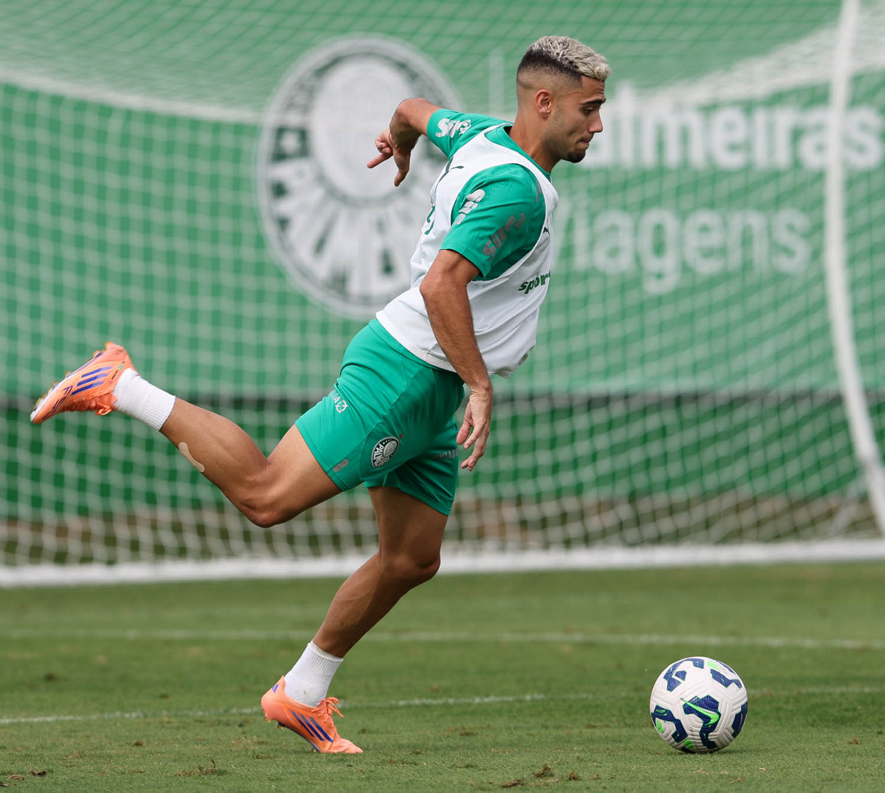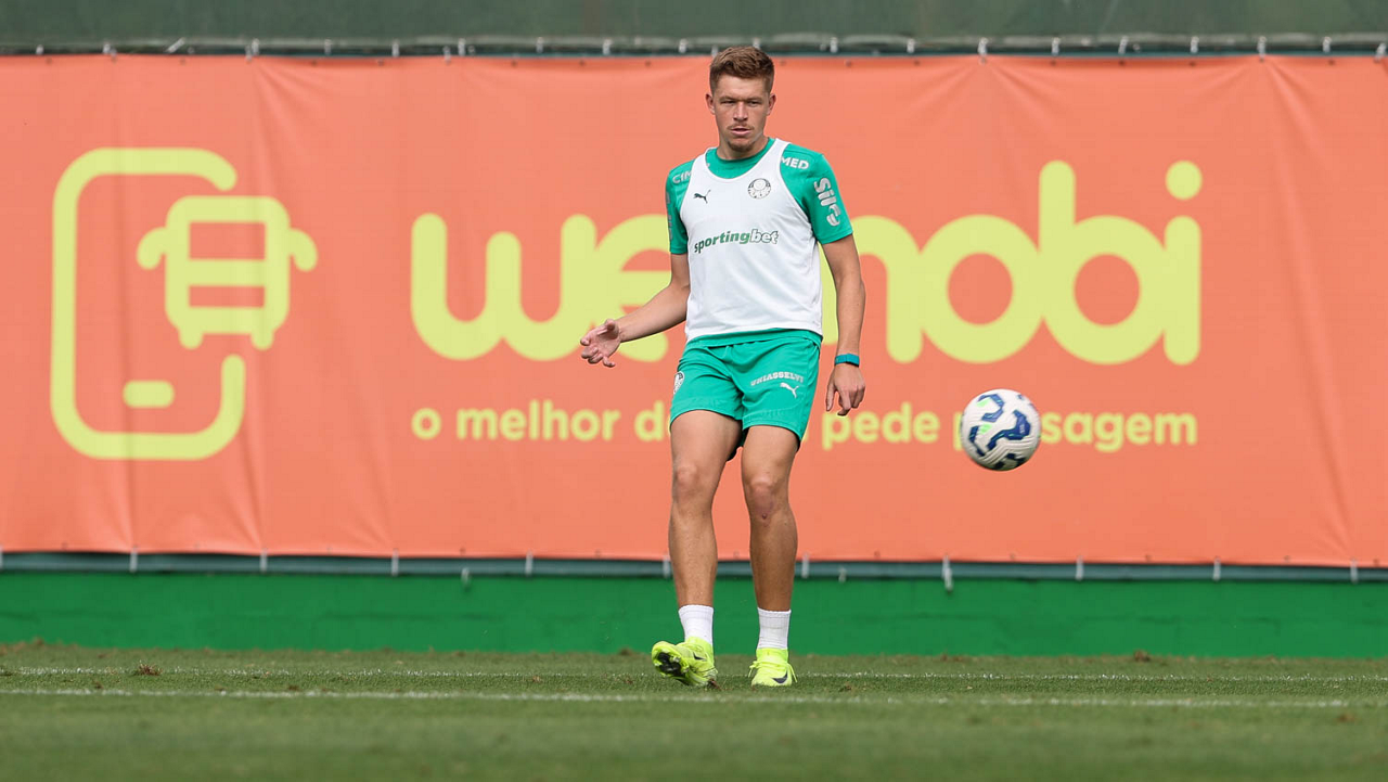 O jogador Bruno Fuchs, da SE Palmeiras, durante treinamento, na Academia de Futebol. (Foto: Cesar Greco/Palmeiras/by Canon)