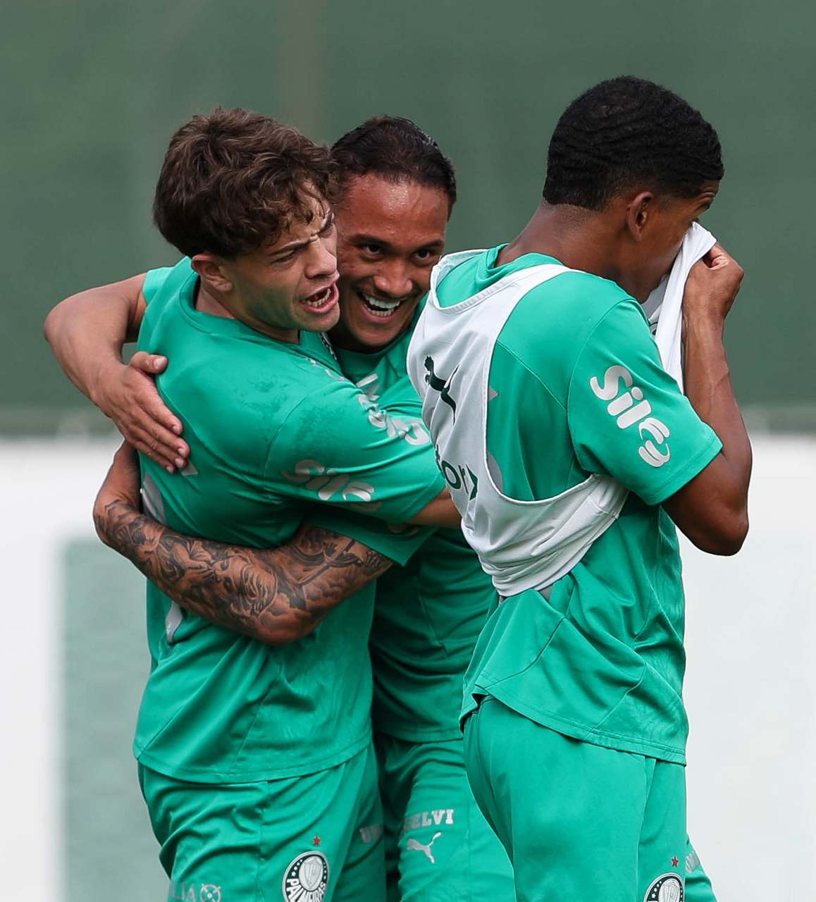 Os jogadores Rikelme e Anibal Moreno (D), da SE Palmeiras, durante treinamento, na Academia de Futebol. (Foto: Cesar Greco/Palmeiras/by Canon)