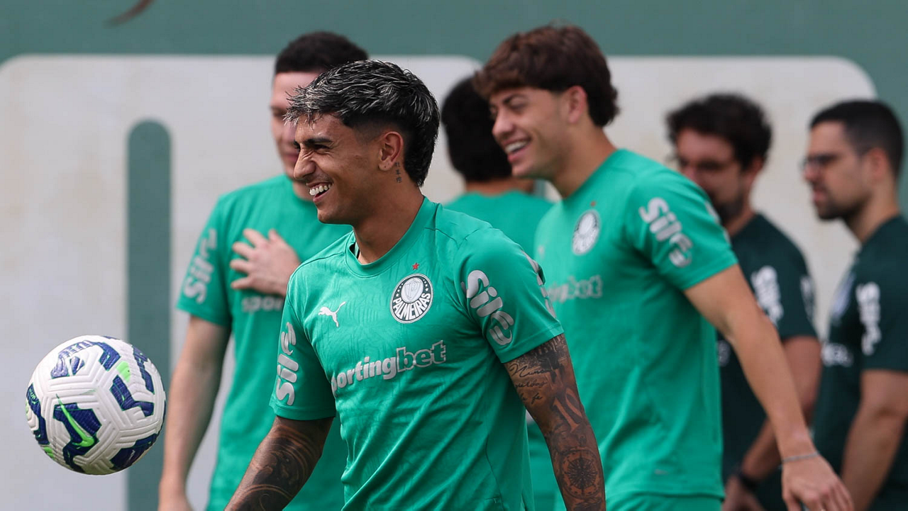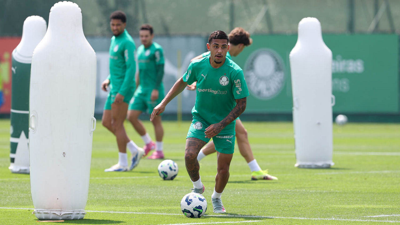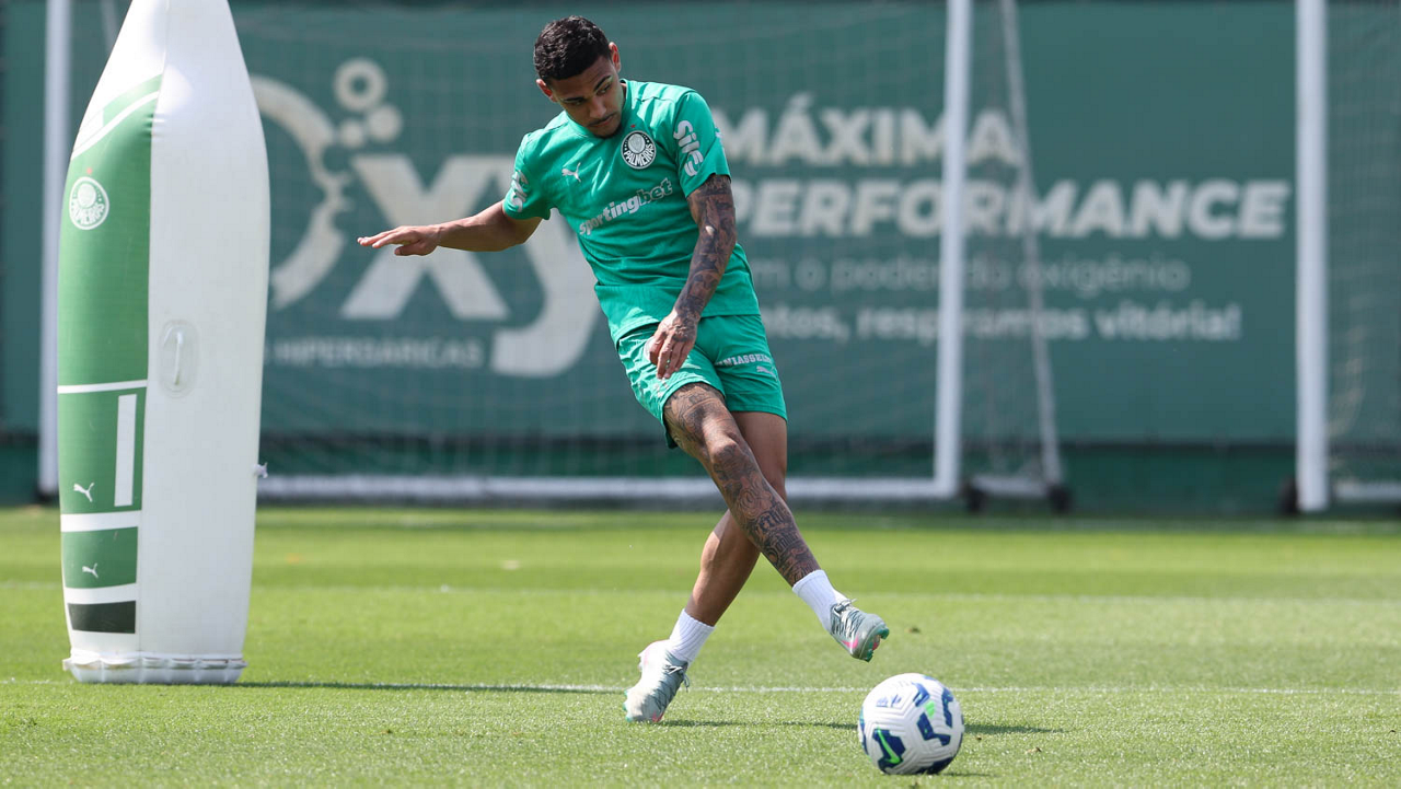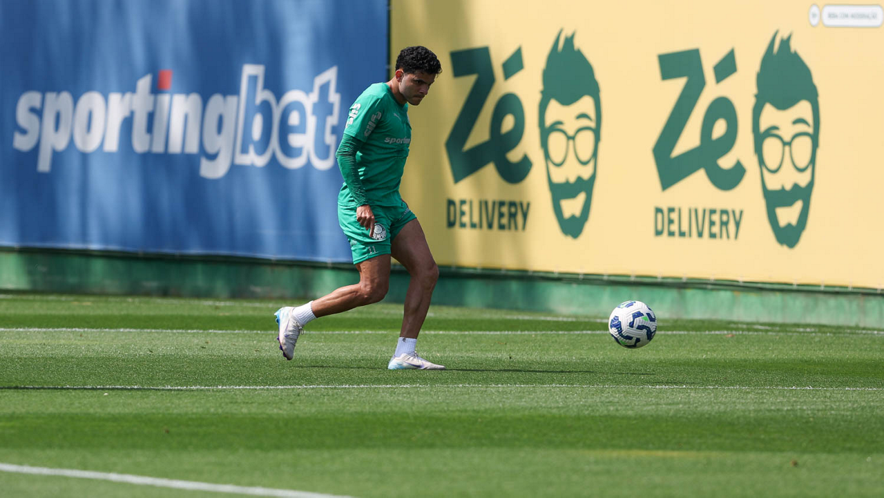 O jogador Raphael Veiga, da SE Palmeiras, durante treinamento, na Academia de Futebol. (Foto: Cesar Greco/Palmeiras/by Canon)