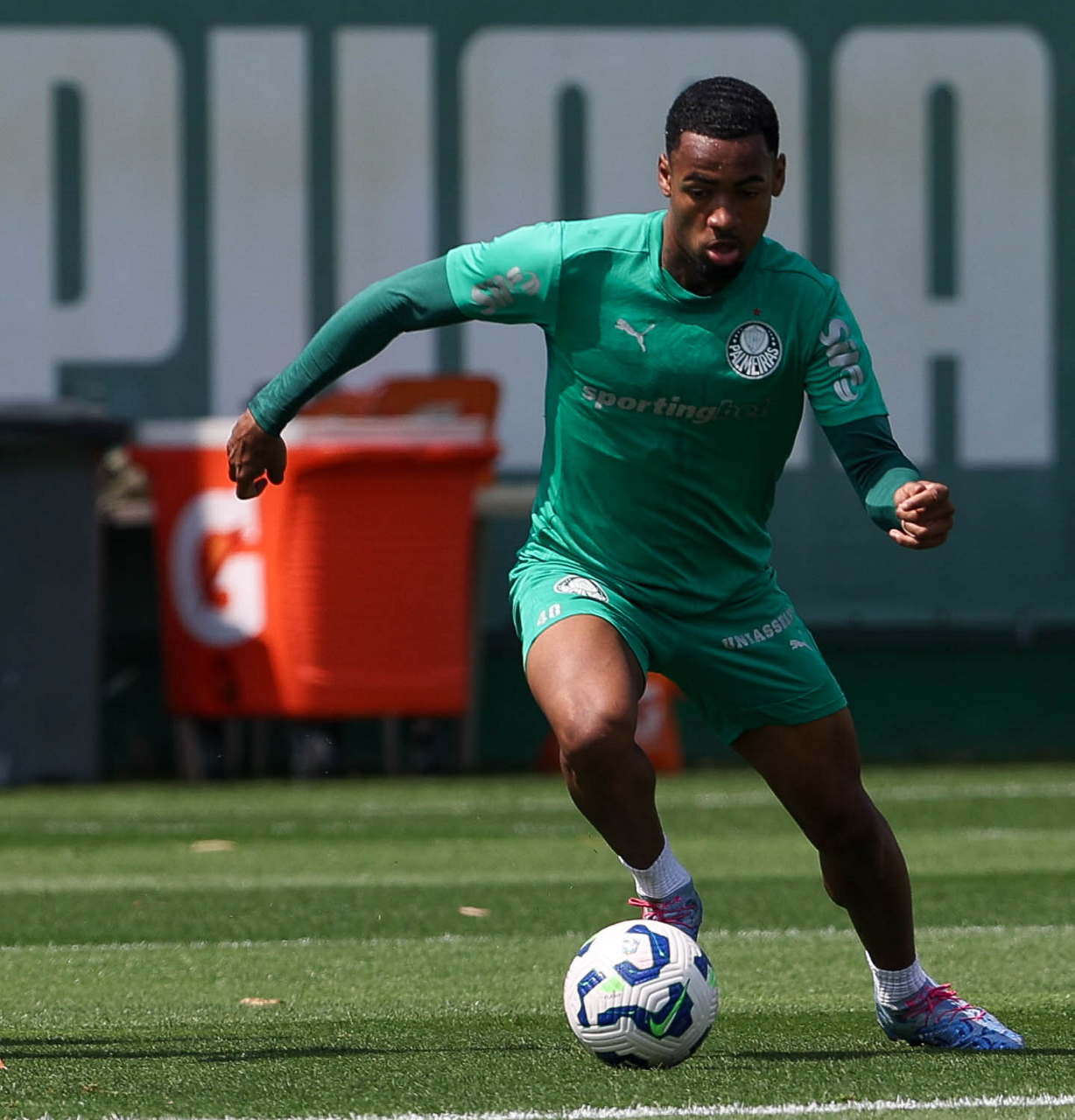 O jogador Lucas Evangelista, da SE Palmeiras, durante treinamento, na Academia de Futebol. (Foto: Cesar Greco/Palmeiras/by Canon)