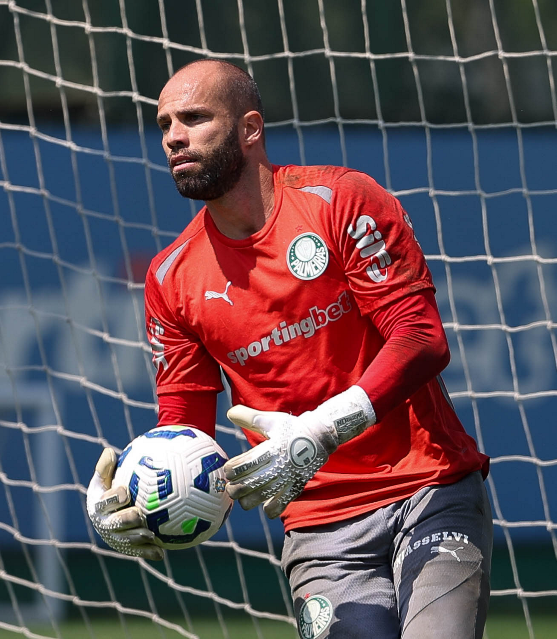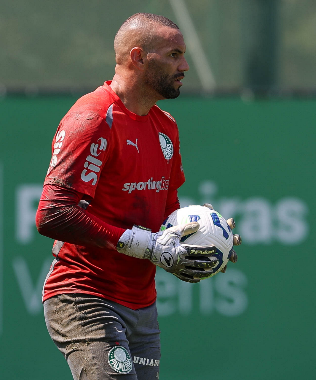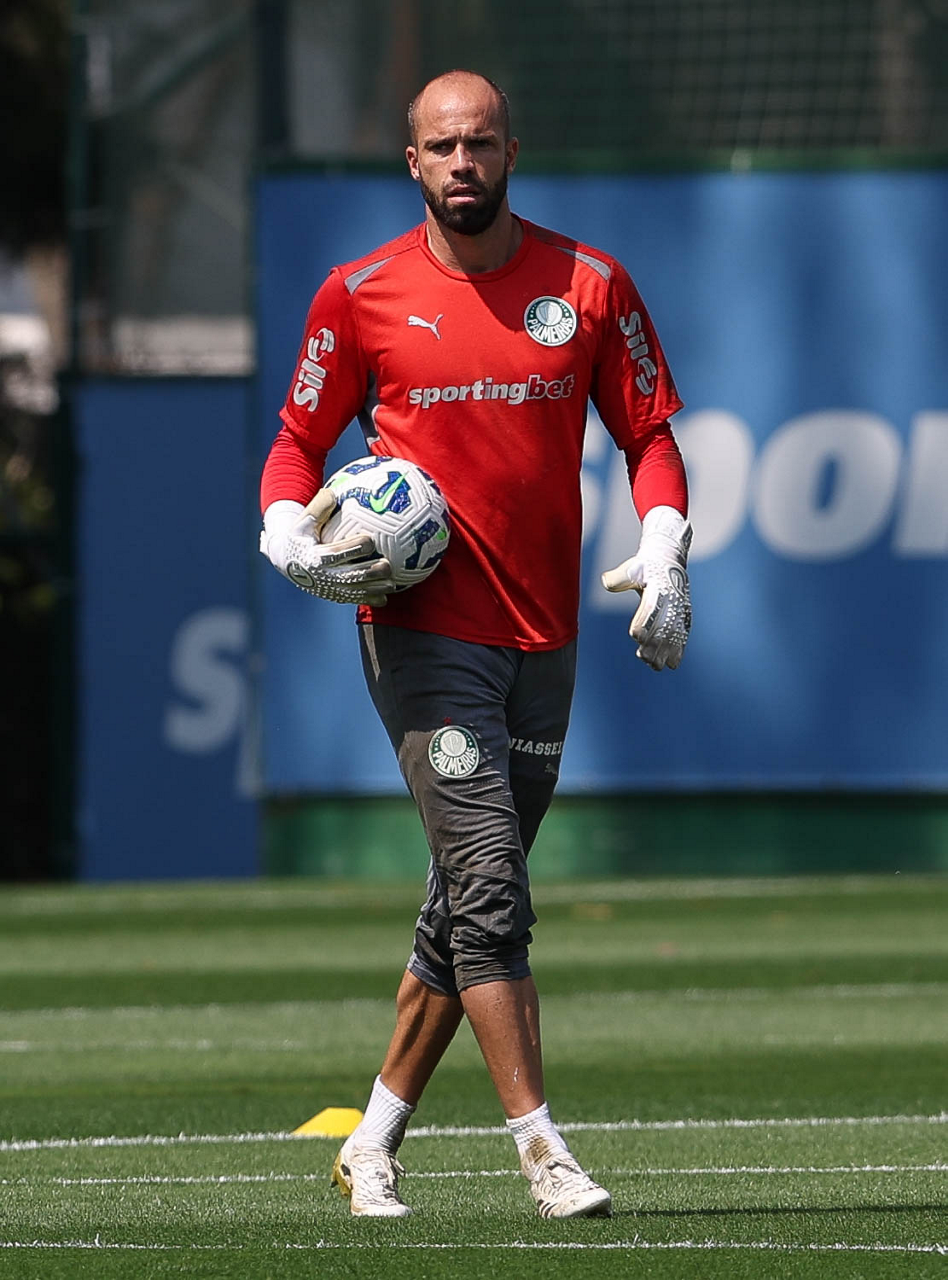 O goleiro Weverton, da SE Palmeiras, durante treinamento, na Academia de Futebol. (Foto: Cesar Greco/Palmeiras/by Canon)