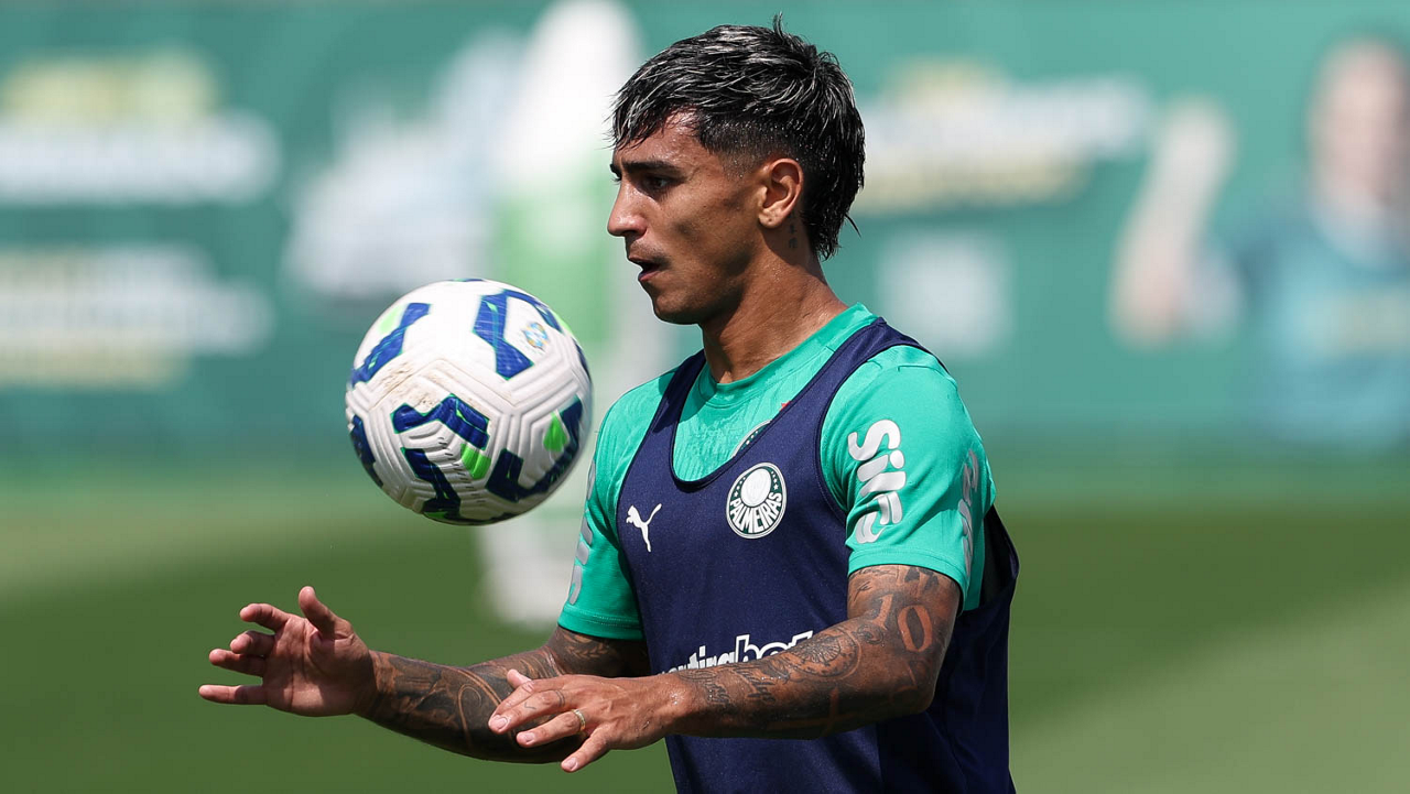 O jogador Facundo Torres, da SE Palmeiras, durante treinamento, na Academia de Futebol. (Foto: Cesar Greco/Palmeiras/by Canon)