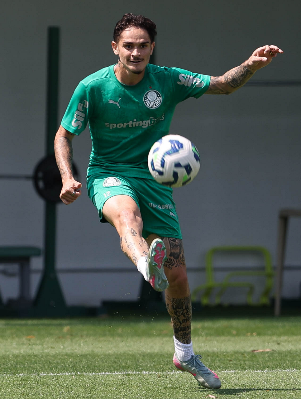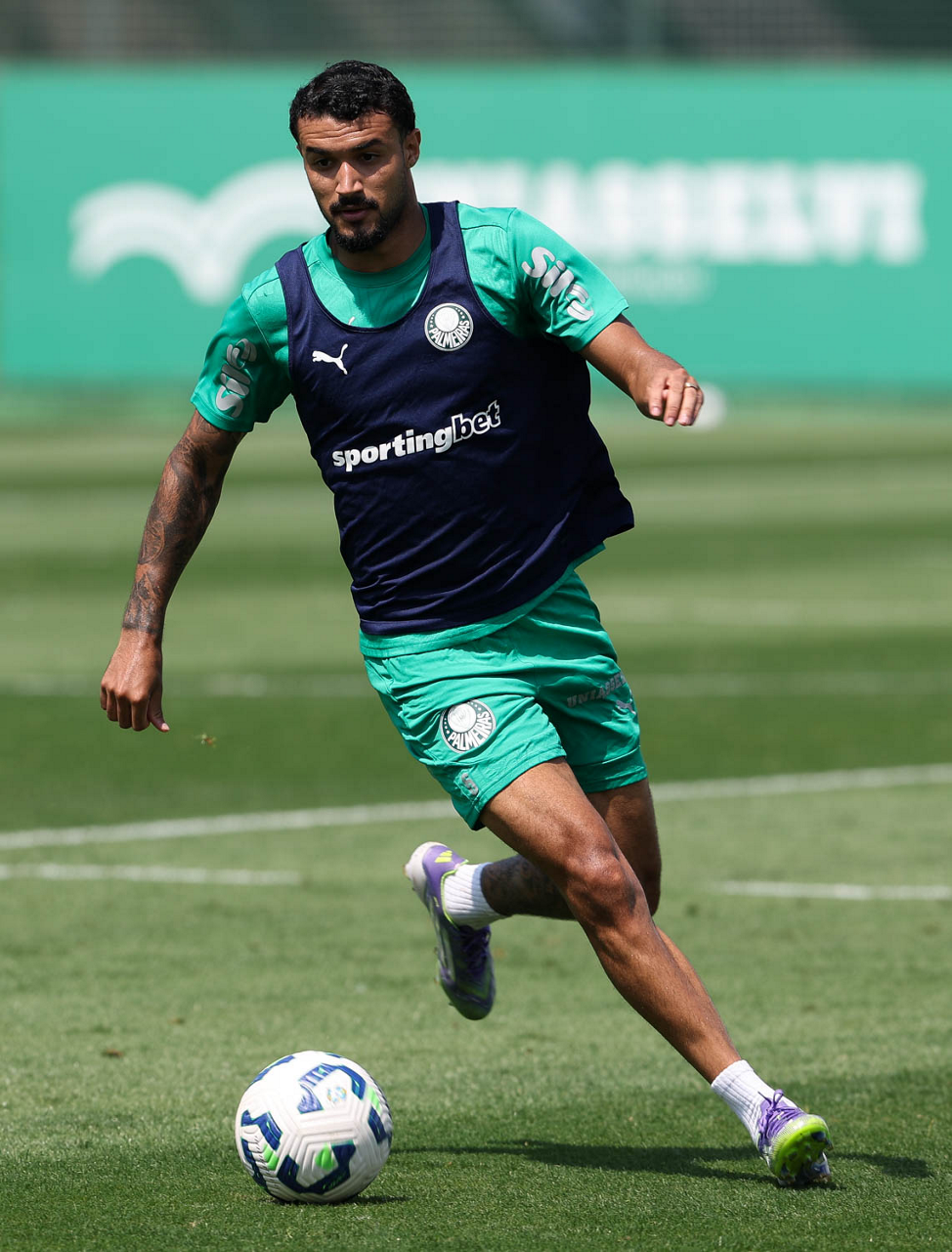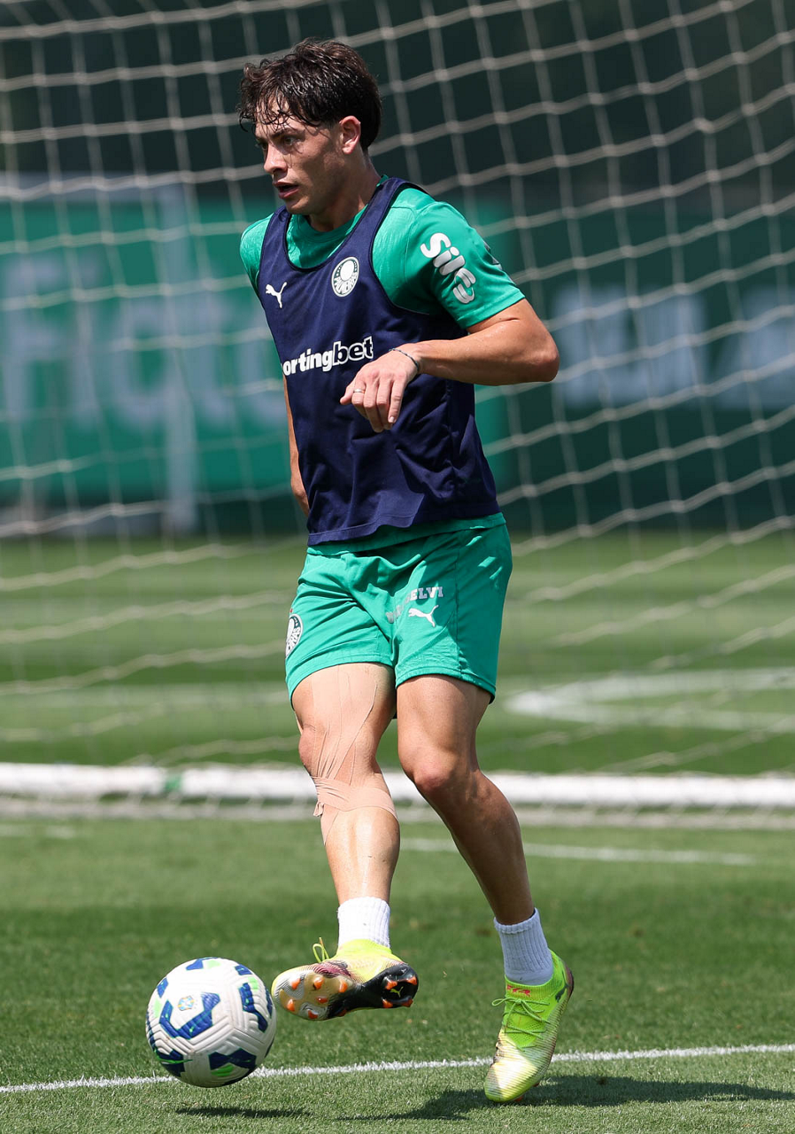 O jogador Bruno Fuchs, da SE Palmeiras, durante treinamento, na Academia de Futebol. (Foto: Cesar Greco/Palmeiras/by Canon)