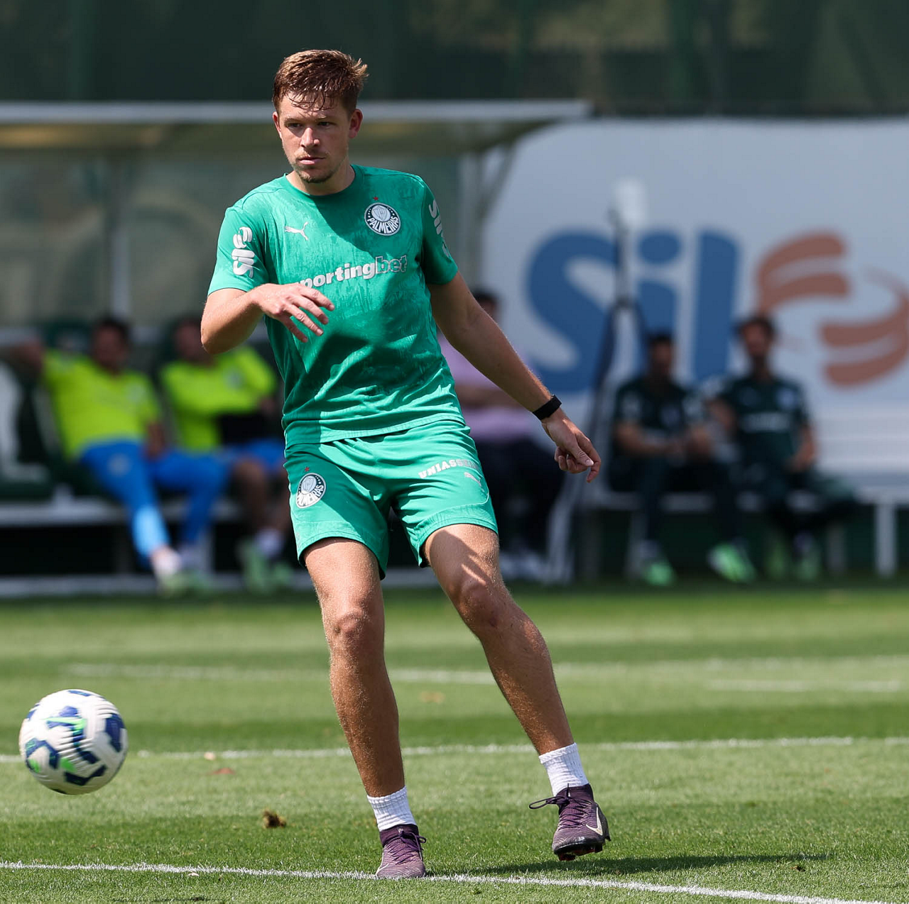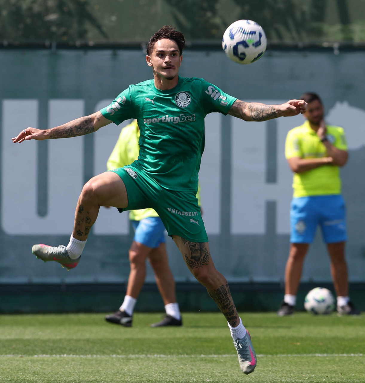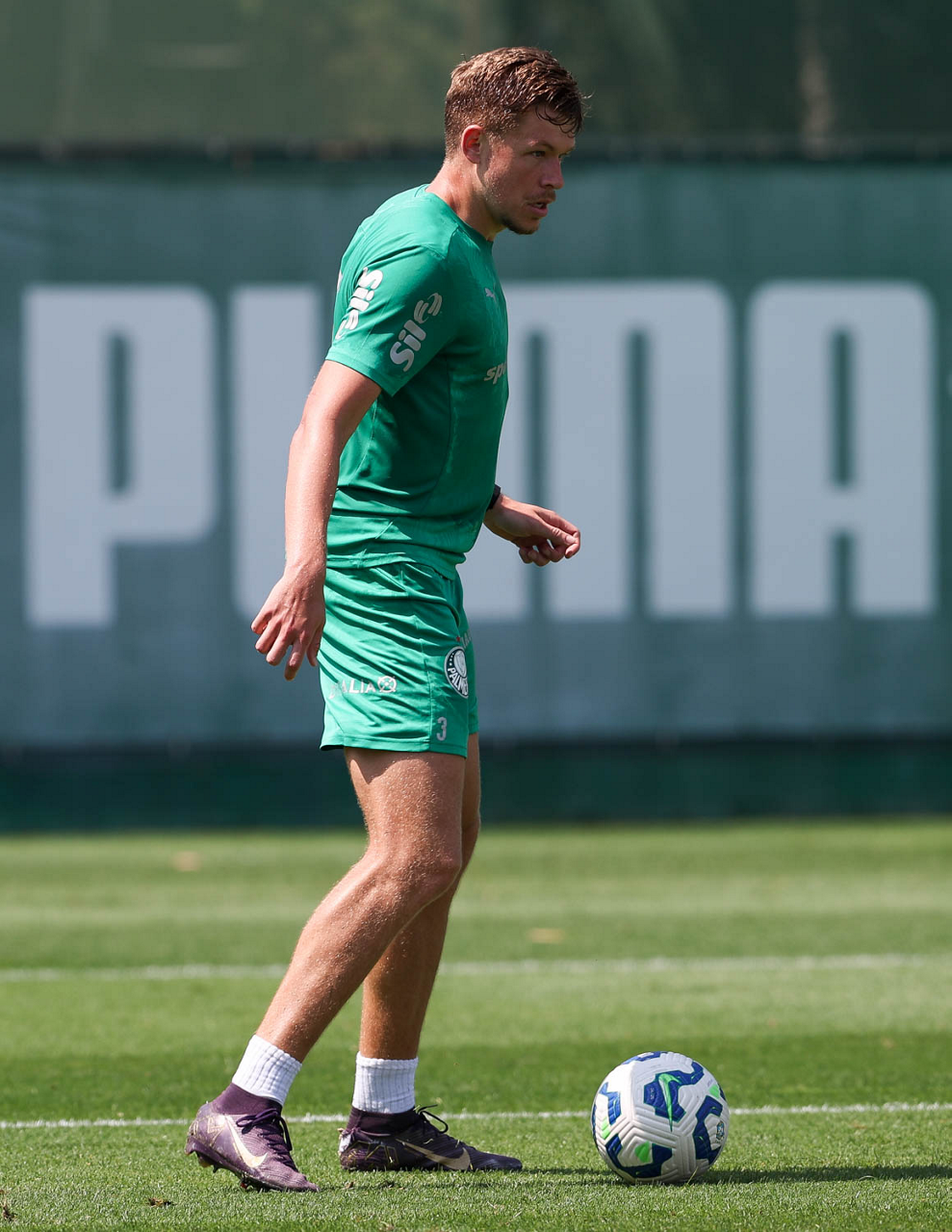 O jogador Bruno Fuchs, da SE Palmeiras, durante treinamento, na Academia de Futebol. (Foto: Cesar Greco/Palmeiras/by Canon)