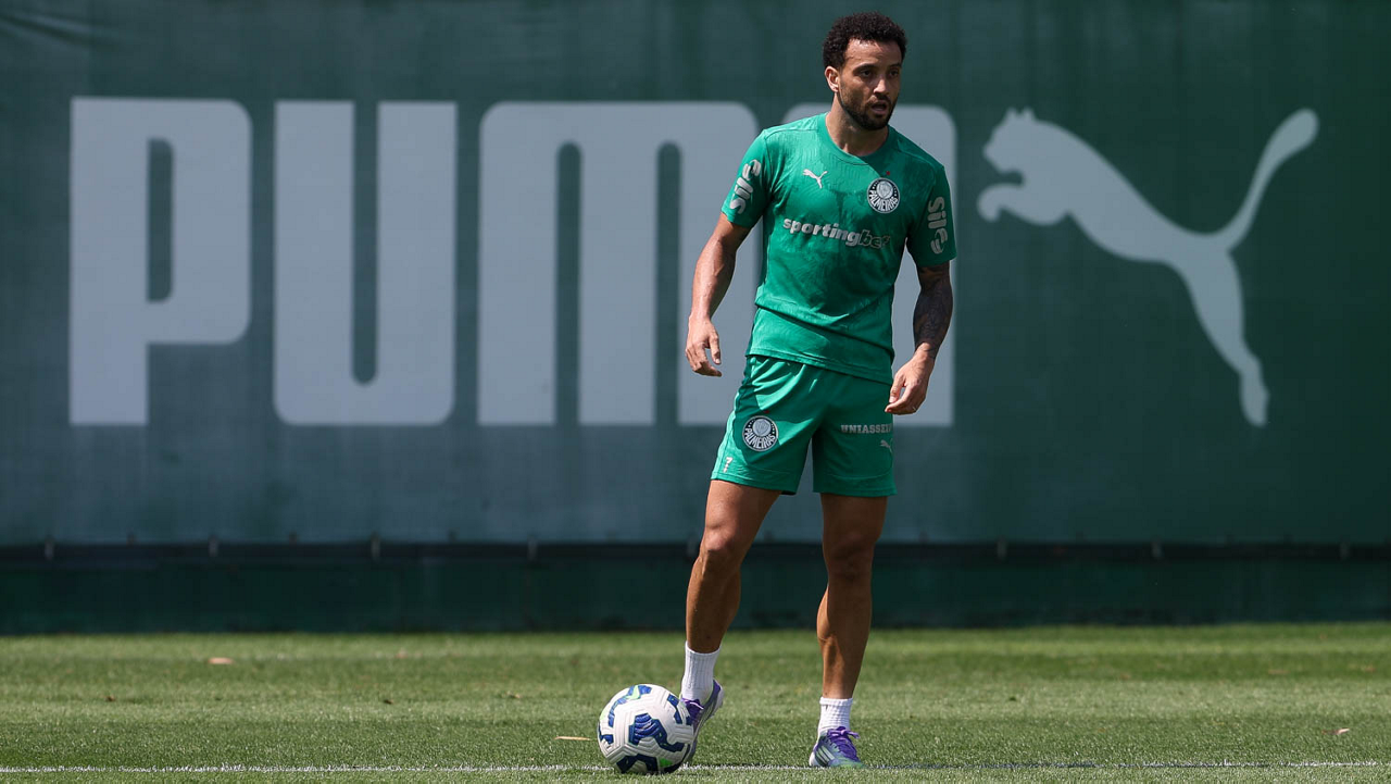 O jogador Allan, da SE Palmeiras, durante treinamento, na Academia de Futebol. (Foto: Cesar Greco/Palmeiras/by Canon)
