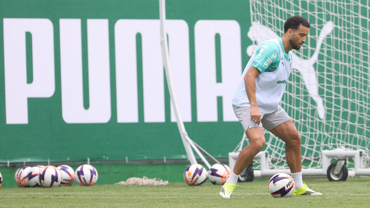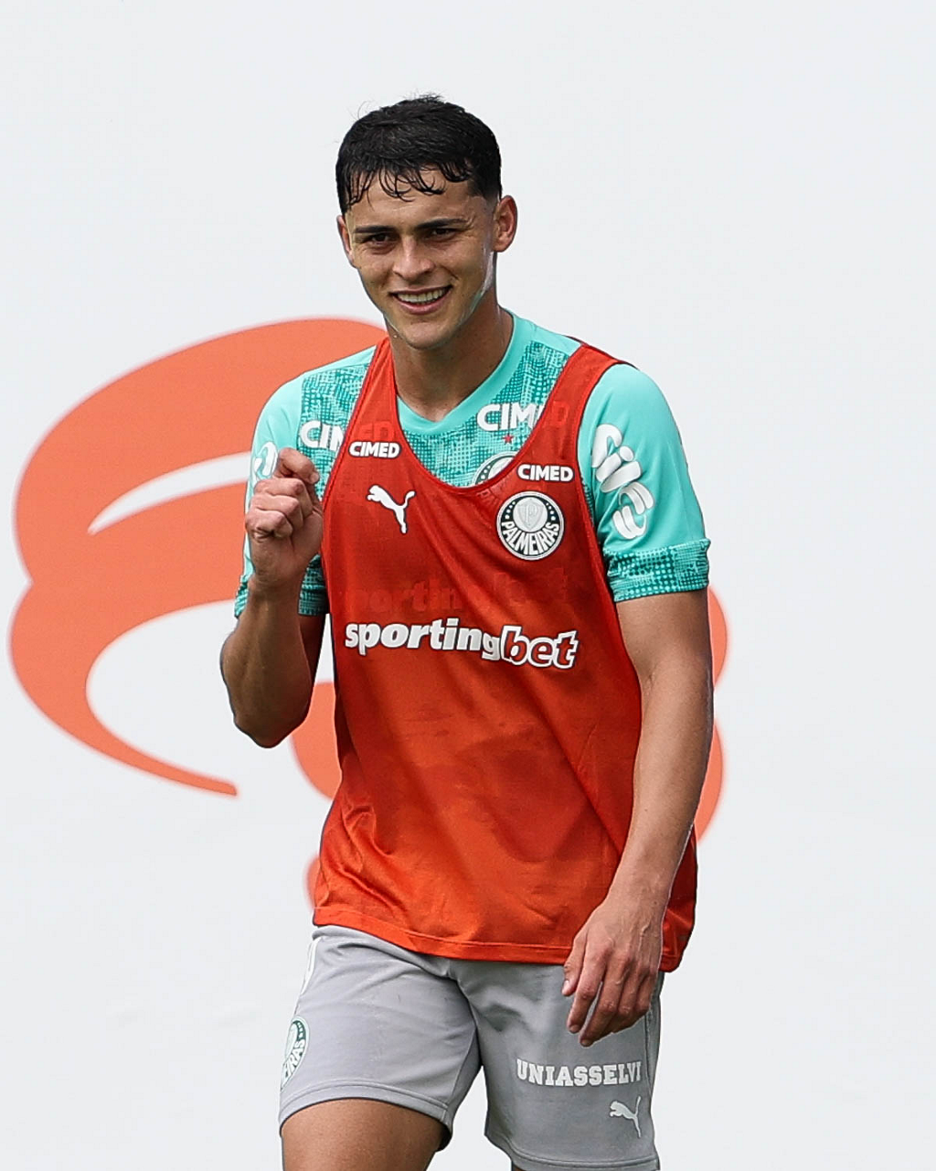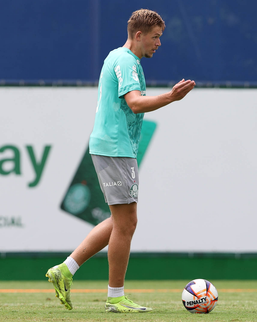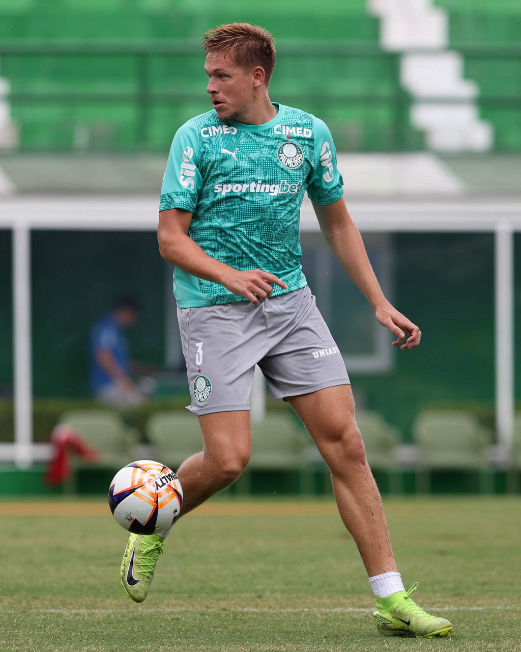 O jogador Bruno Fuchs, da SE Palmeiras, durante treinamento, na Academia de Futebol. (Foto: Cesar Greco/Palmeiras/by Canon)