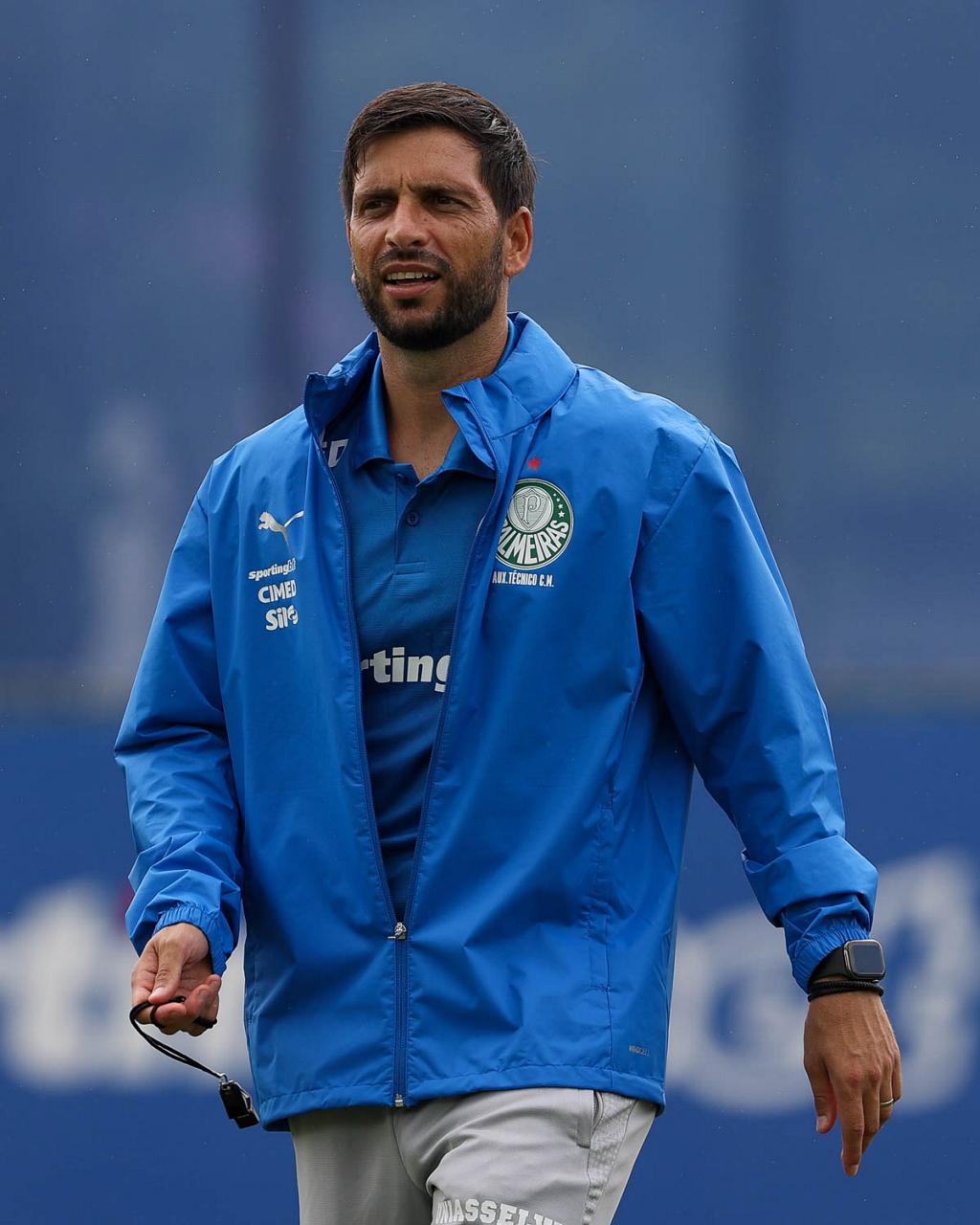 O auxiliar técnico Carlos Martinho, da SE Palmeiras, durante treinamento, na Academia de Futebol. (Foto: Cesar Greco/Palmeiras/by Canon)