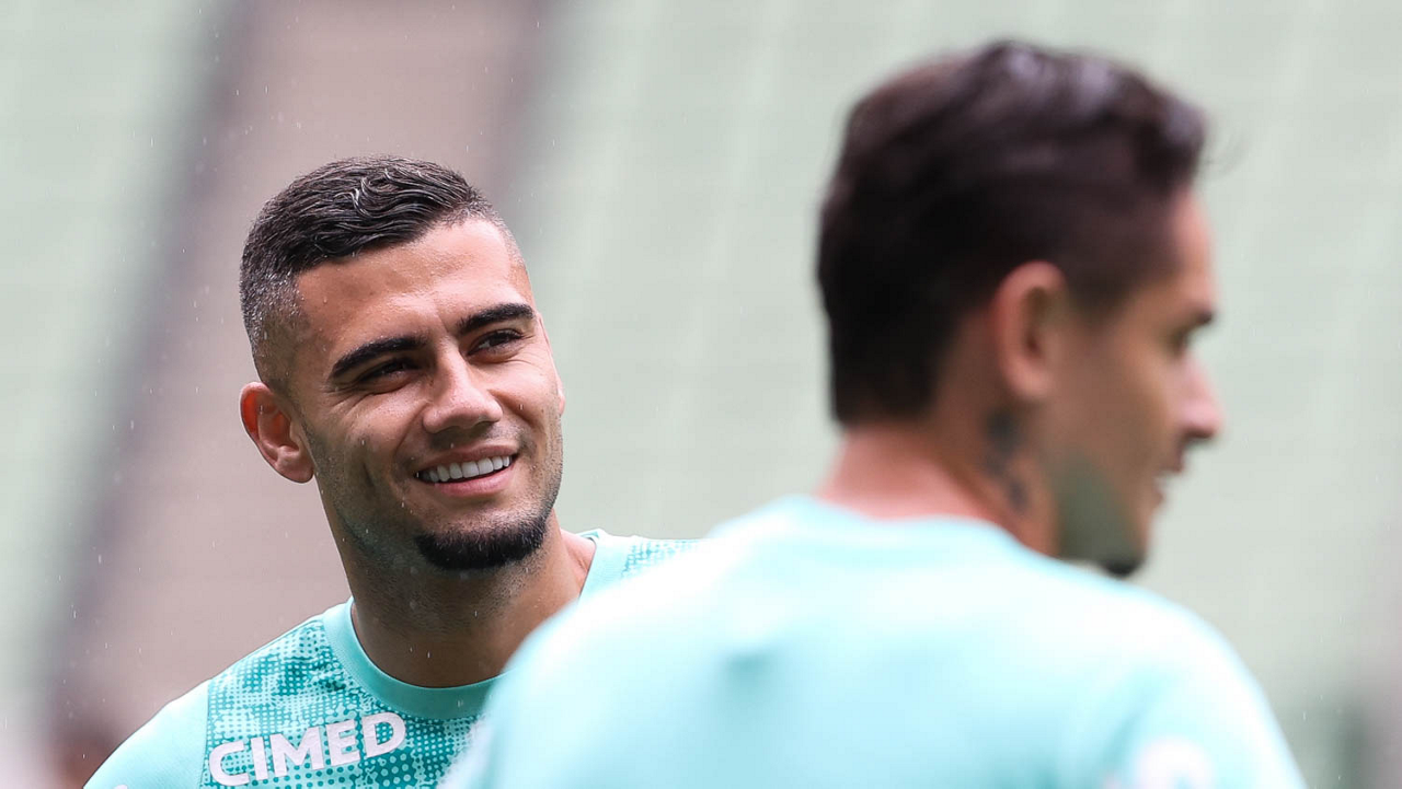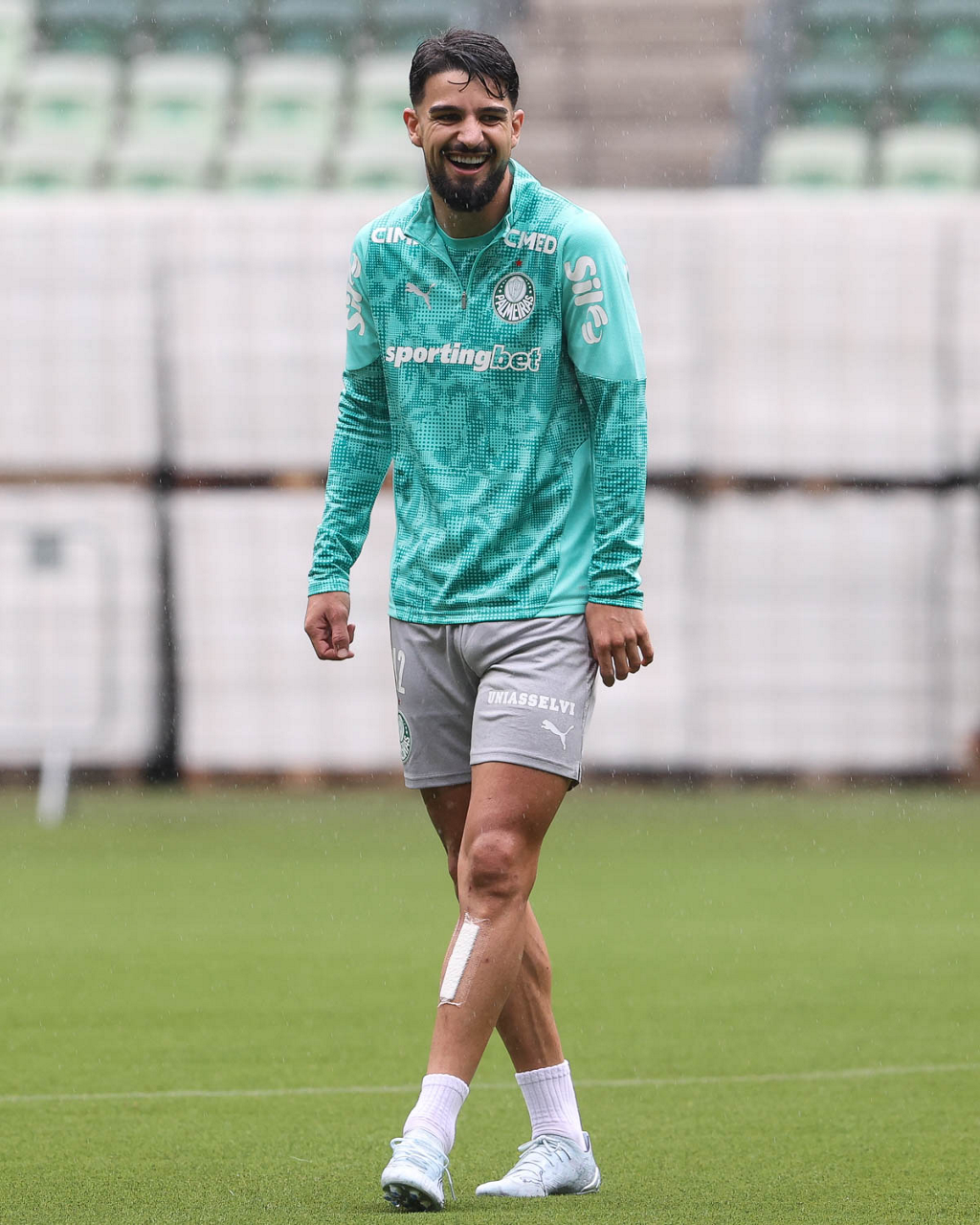 O jogador Agustín Giay, da SE Palmeiras, durante treinamento, na arena Allianz Parque. (Foto: Cesar Greco/Palmeiras/by Canon)