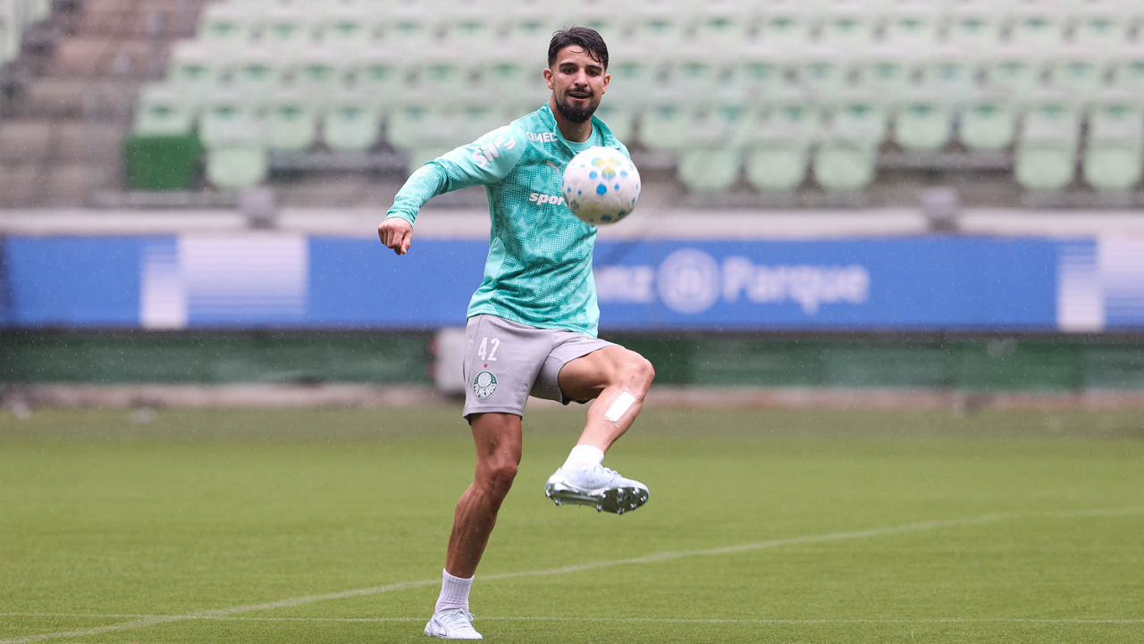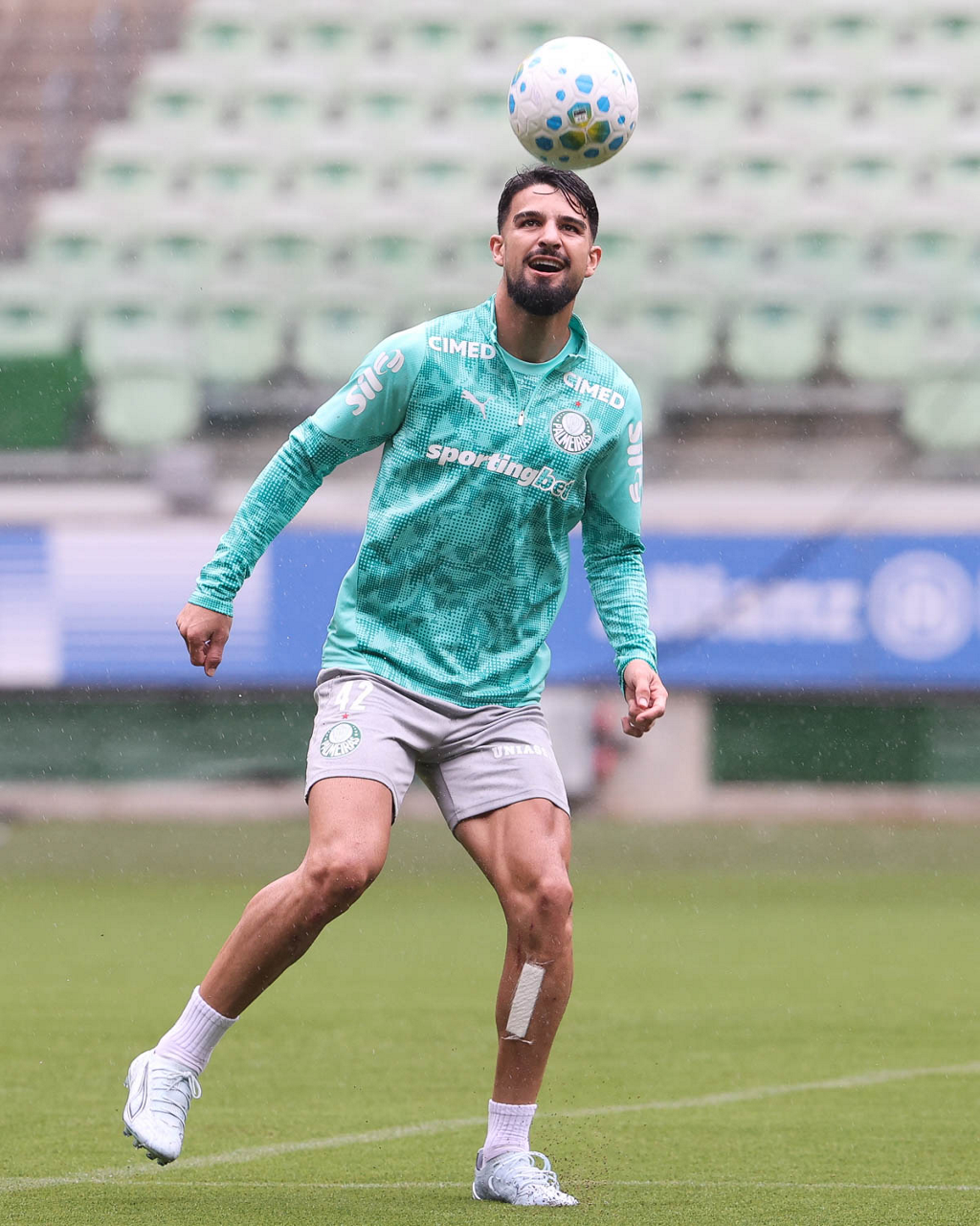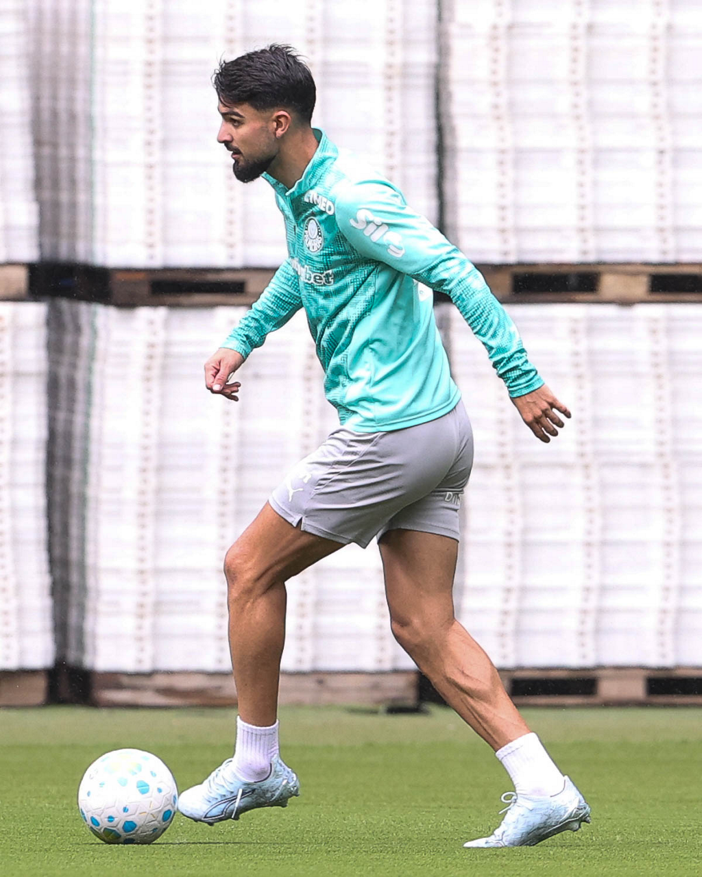 O jogador Bruno Fuchs, da SE Palmeiras, durante treinamento, na arena Allianz Parque. (Foto: Cesar Greco/Palmeiras/by Canon)
