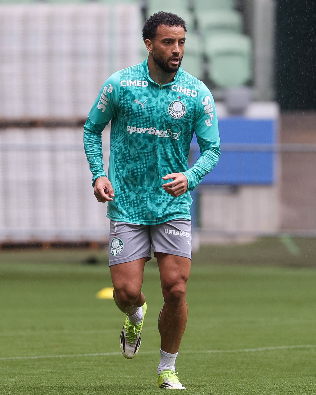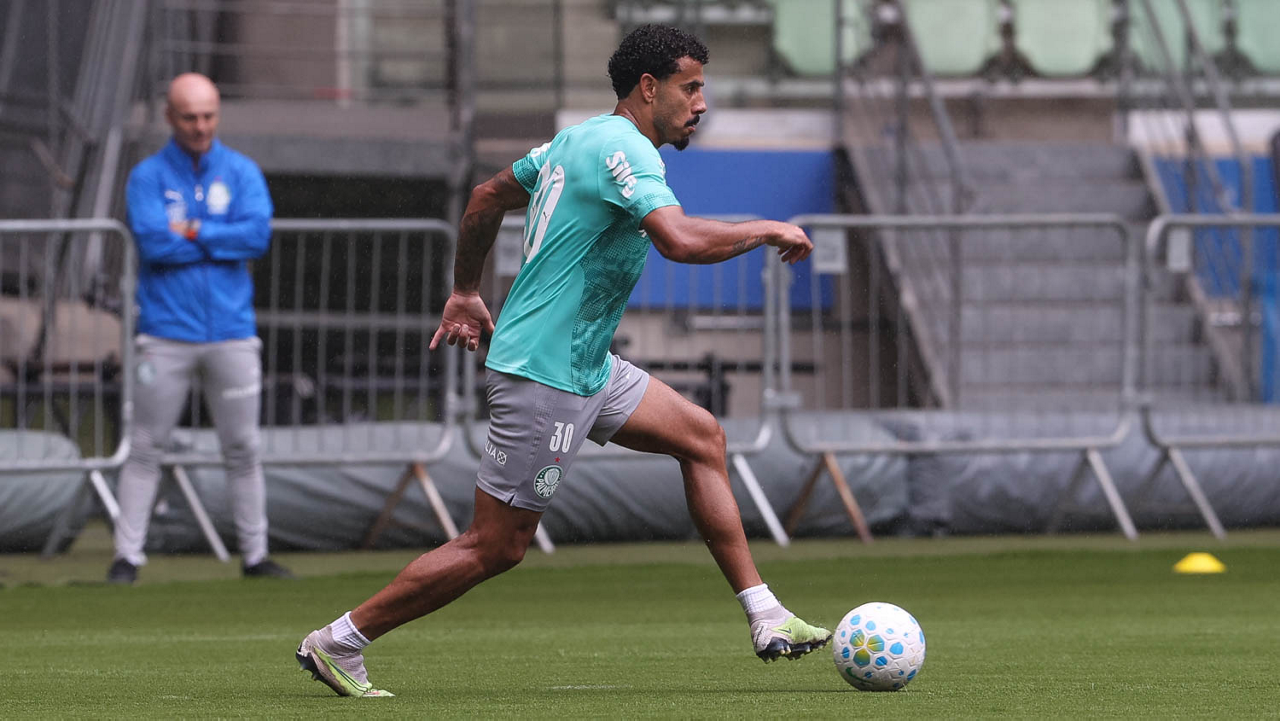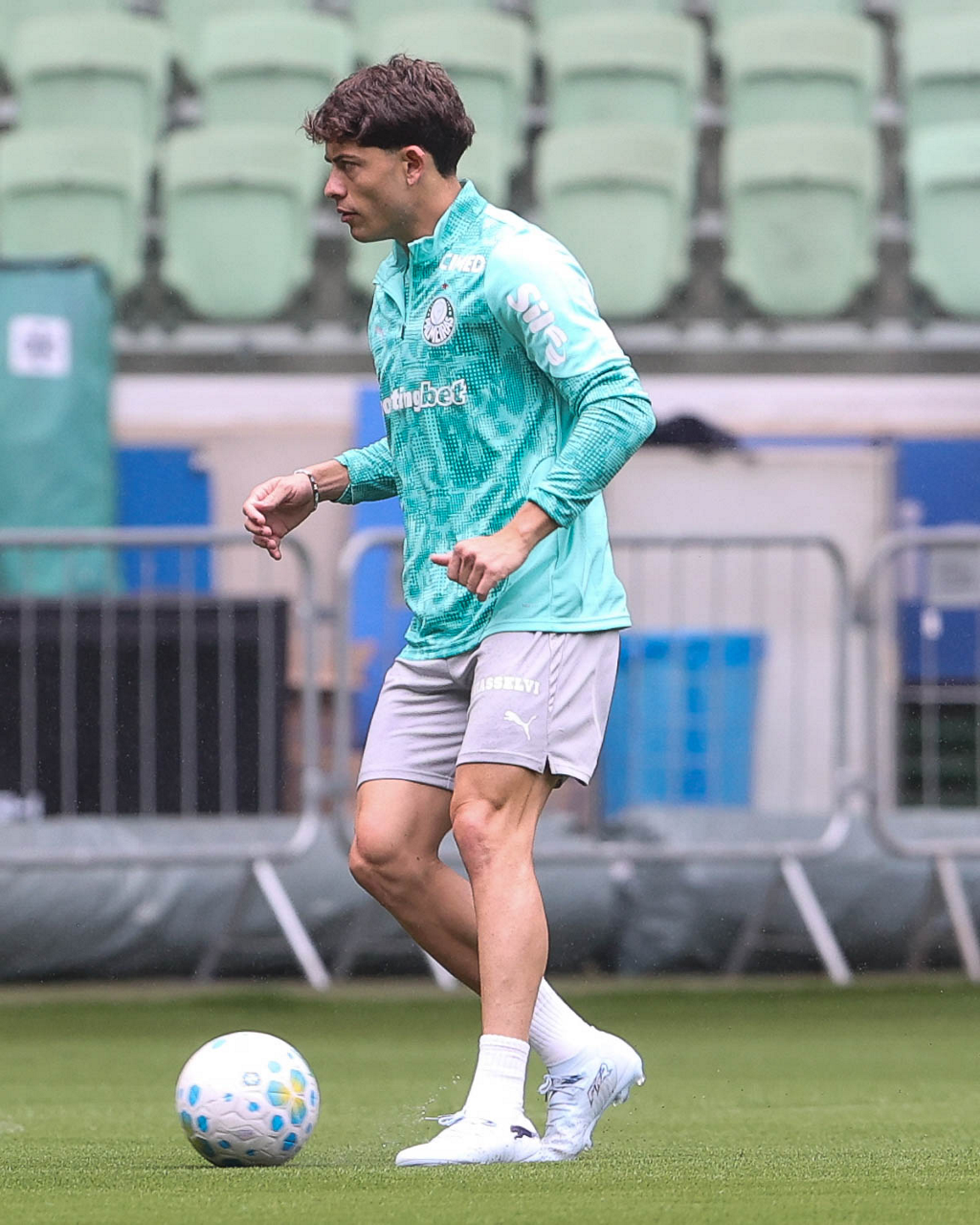 O jogador Bruno Fuchs, da SE Palmeiras, durante treinamento, na arena Allianz Parque. (Foto: Cesar Greco/Palmeiras/by Canon)