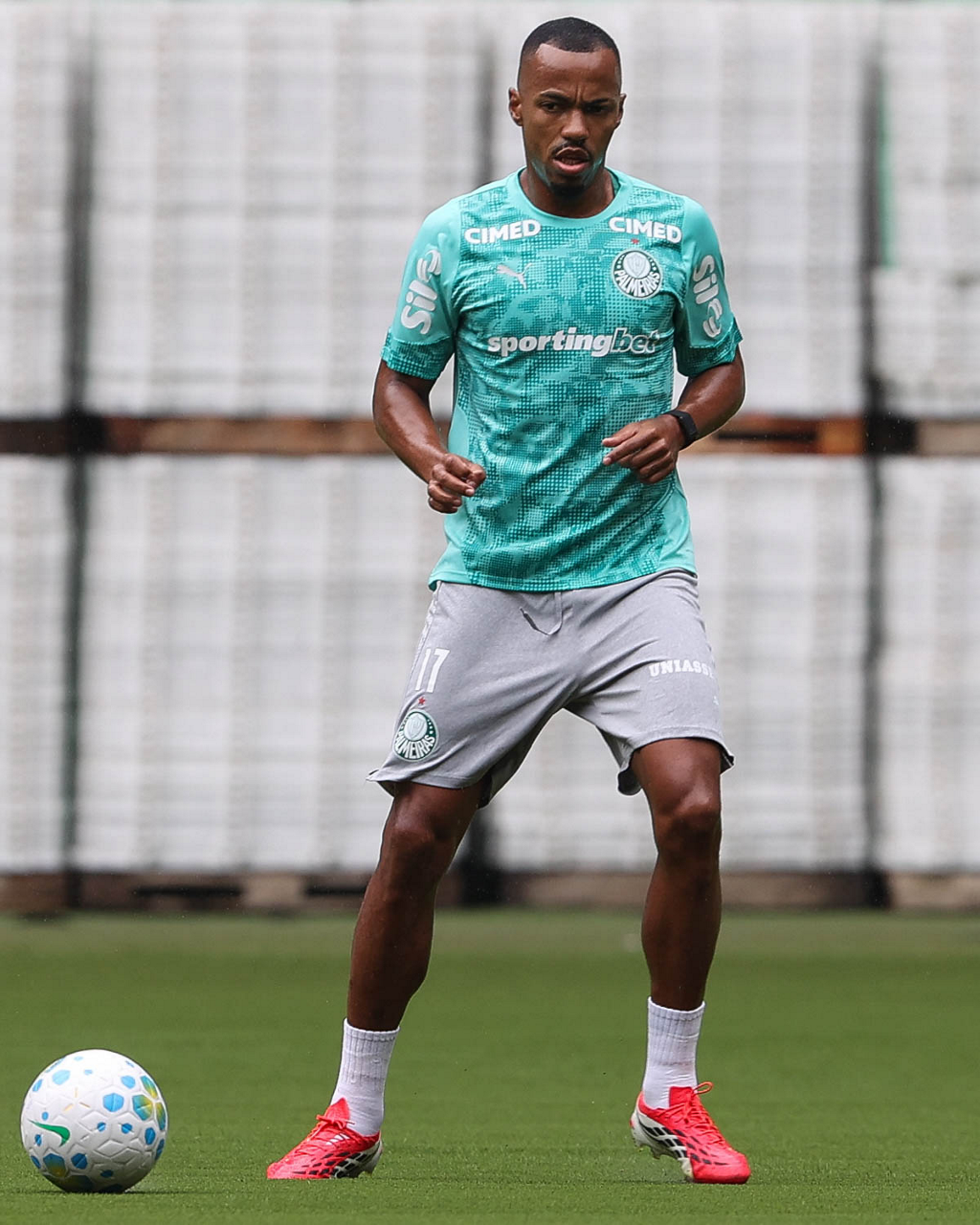 O jogador Larson, da SE Palmeiras, durante treinamento, na arena Allianz Parque. (Foto: Cesar Greco/Palmeiras/by Canon)