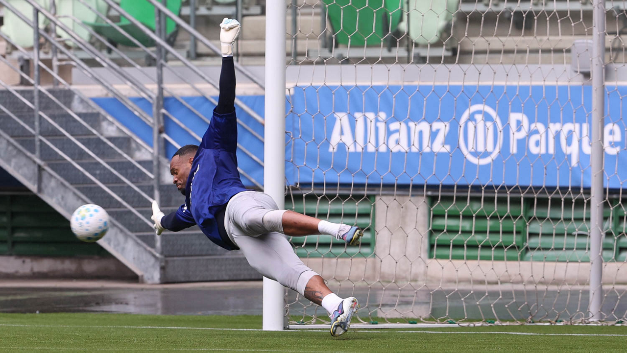 O goleiro Carlos Miguel, da SE Palmeiras, durante treinamento, na arena Allianz Parque. (Foto: Cesar Greco/Palmeiras/by Canon)