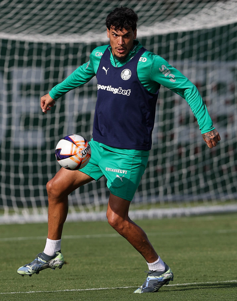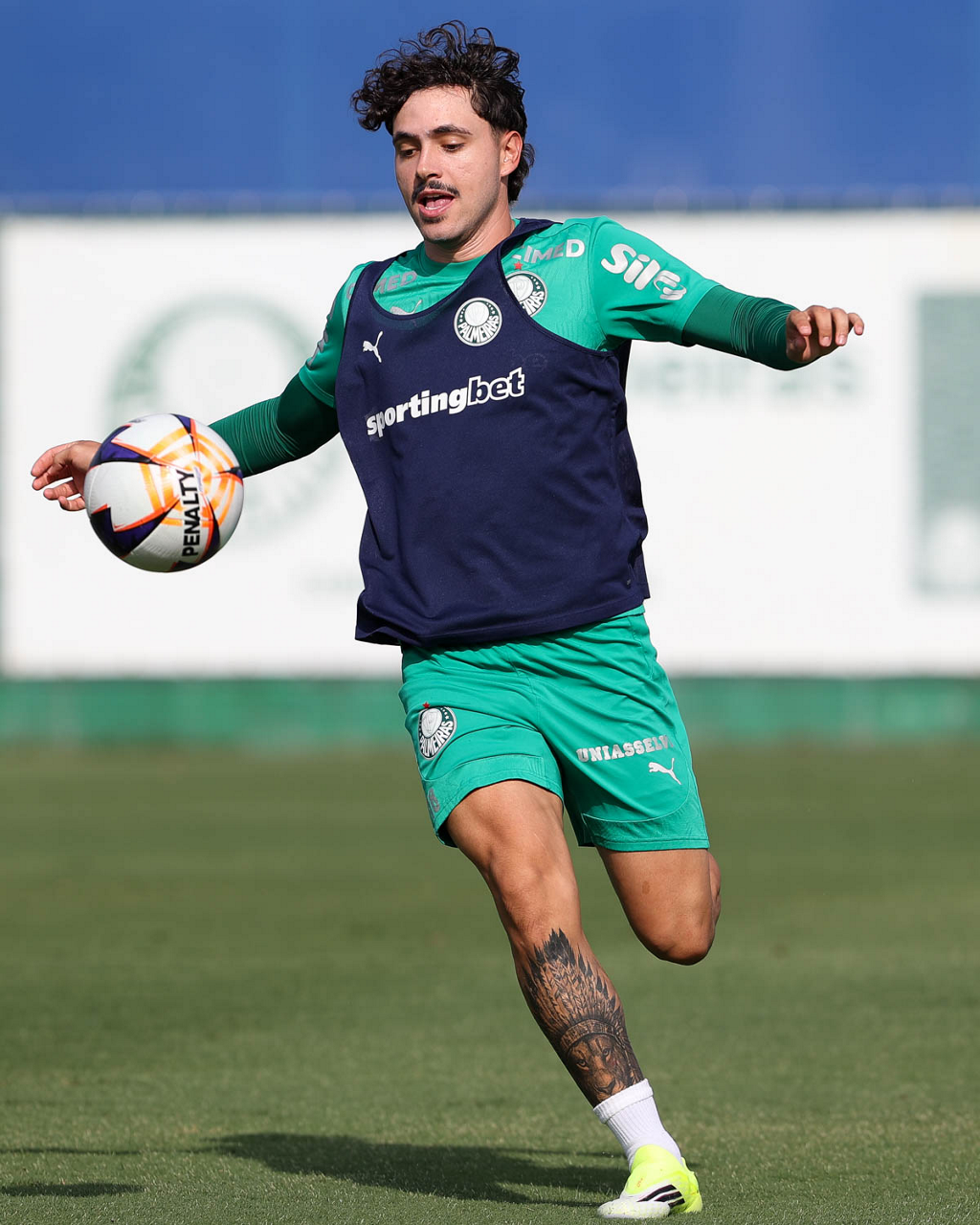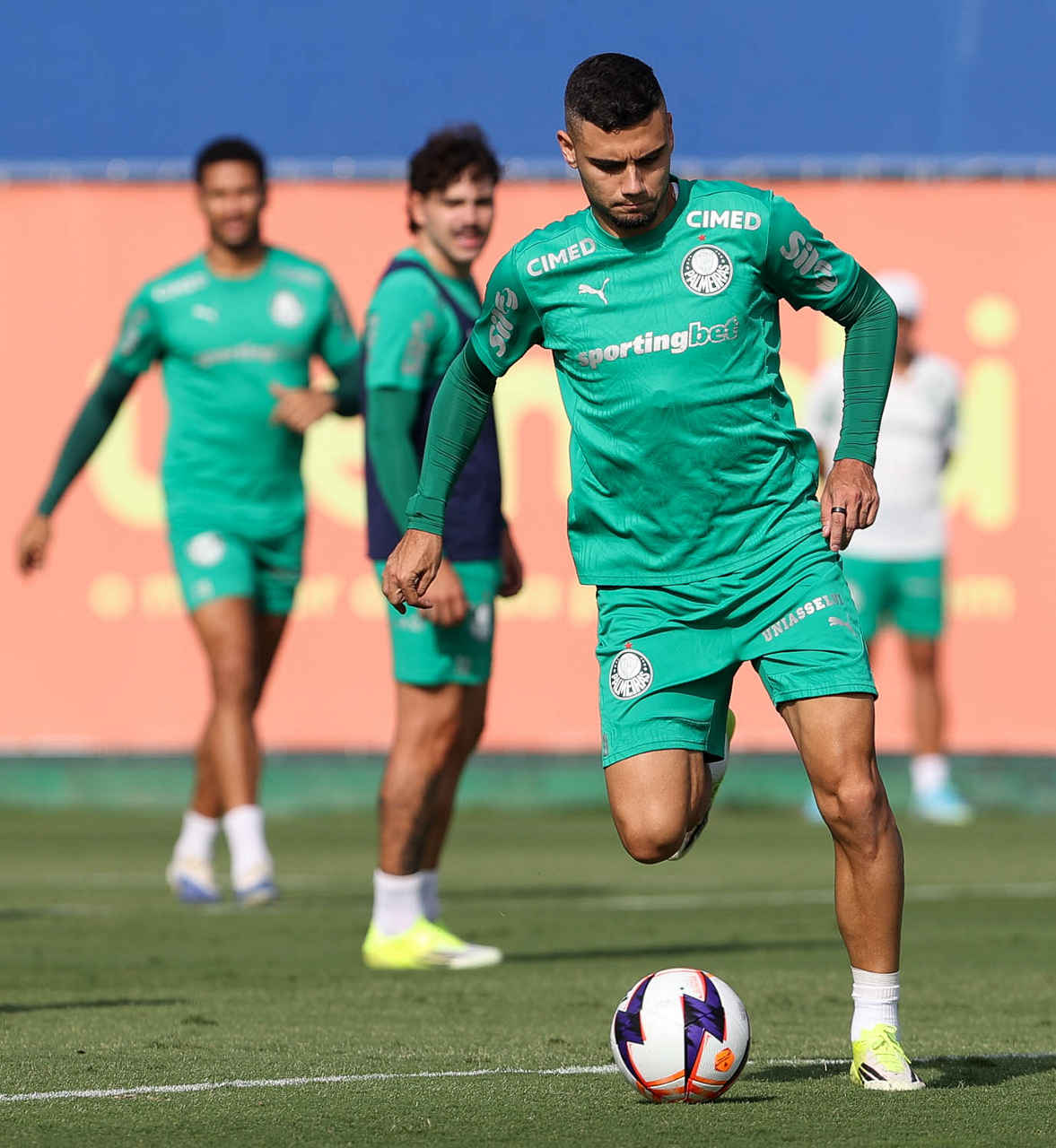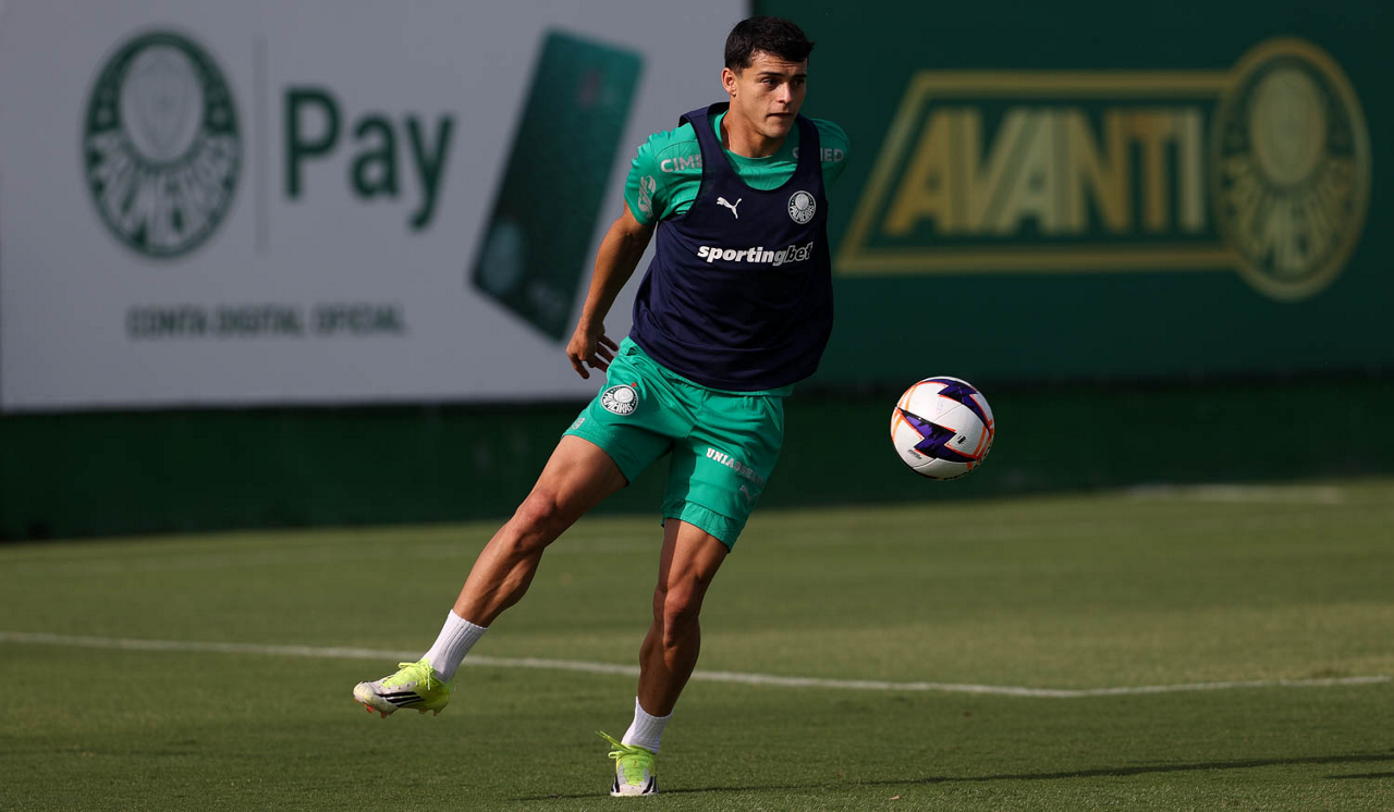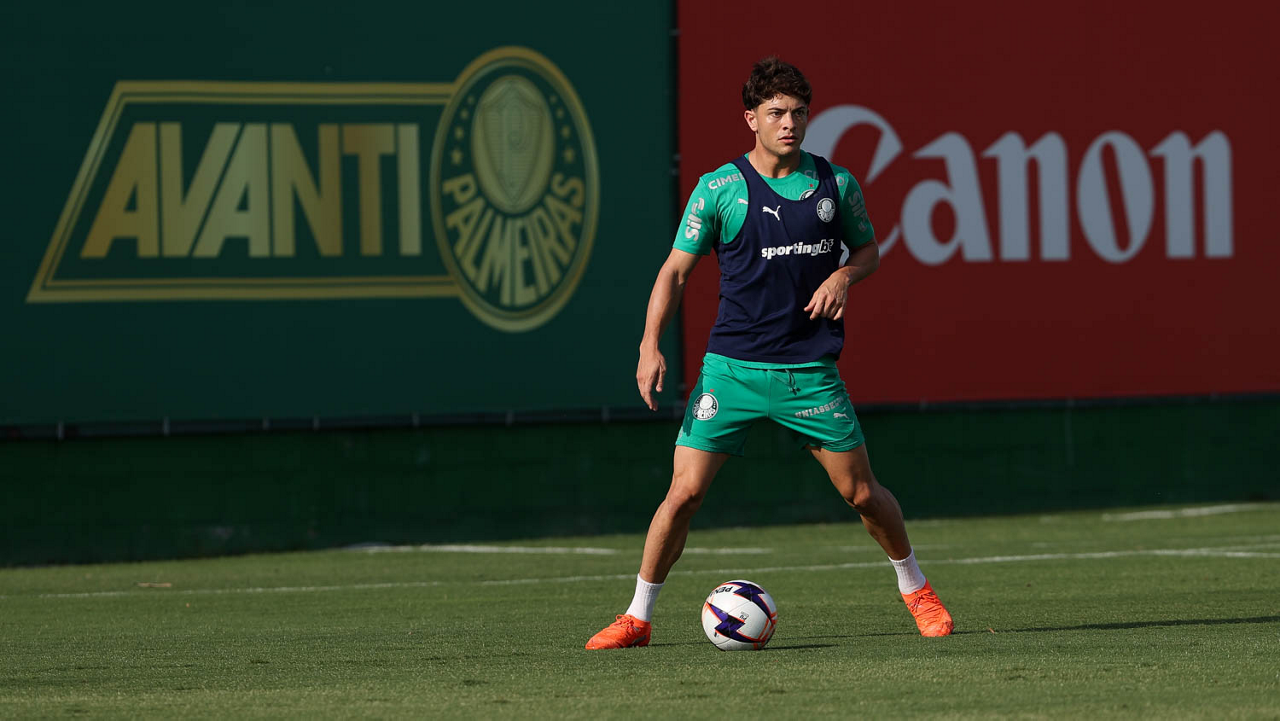 O jogador Vitor Roque, da SE Palmeiras, durante treinamento, na Academia de Futebol. (Foto: Cesar Greco/Palmeiras/by Canon)