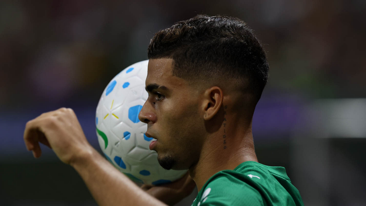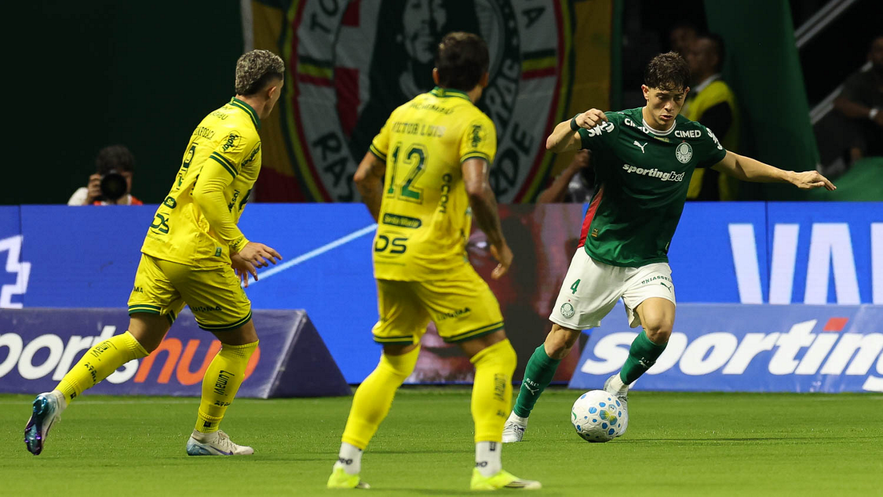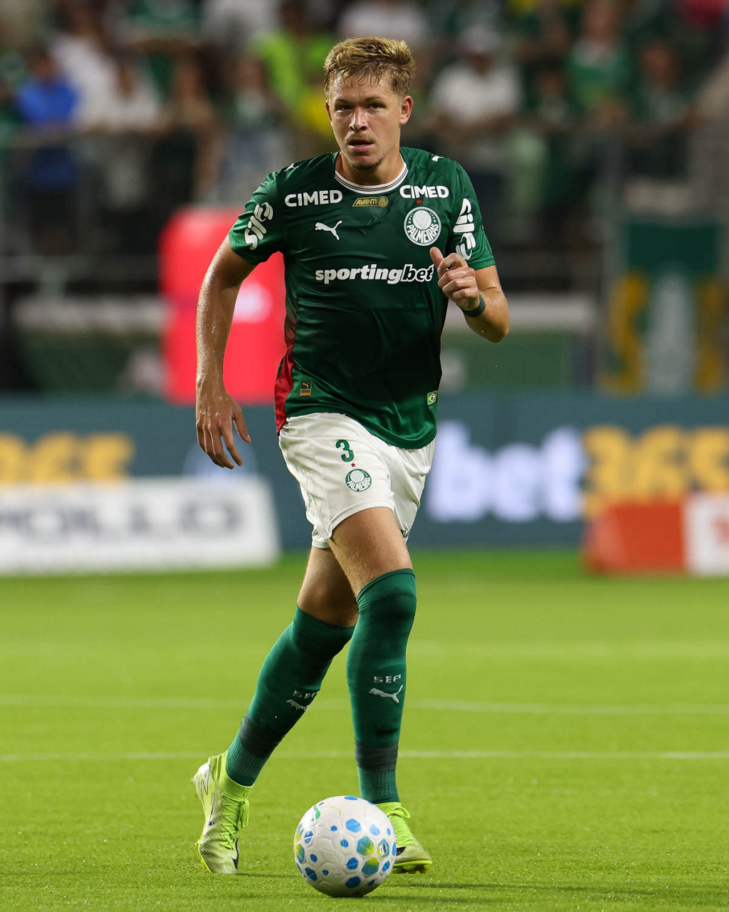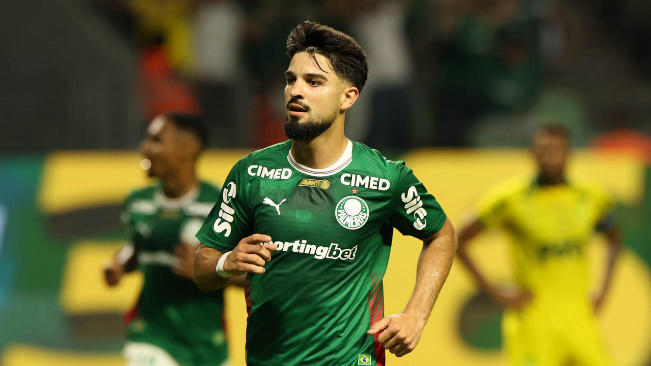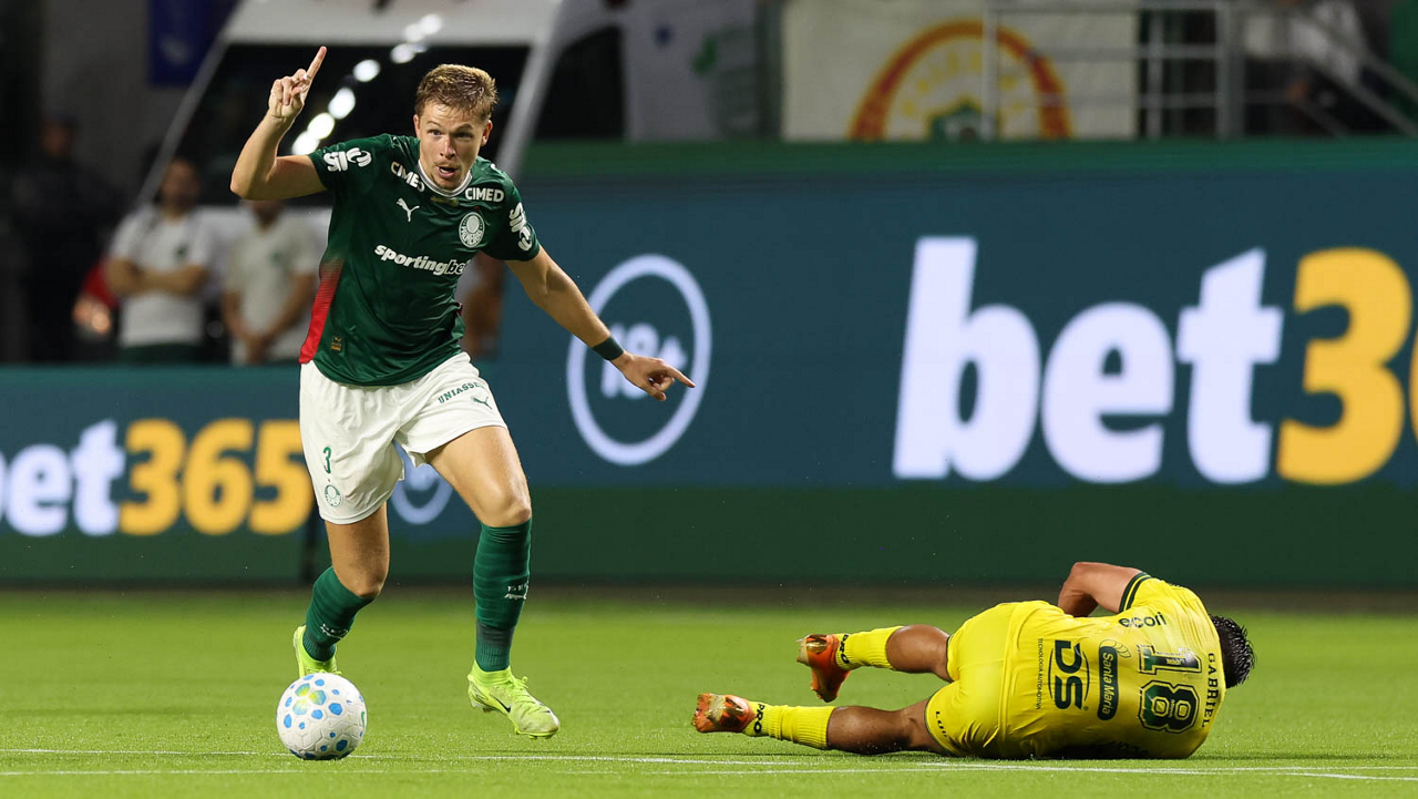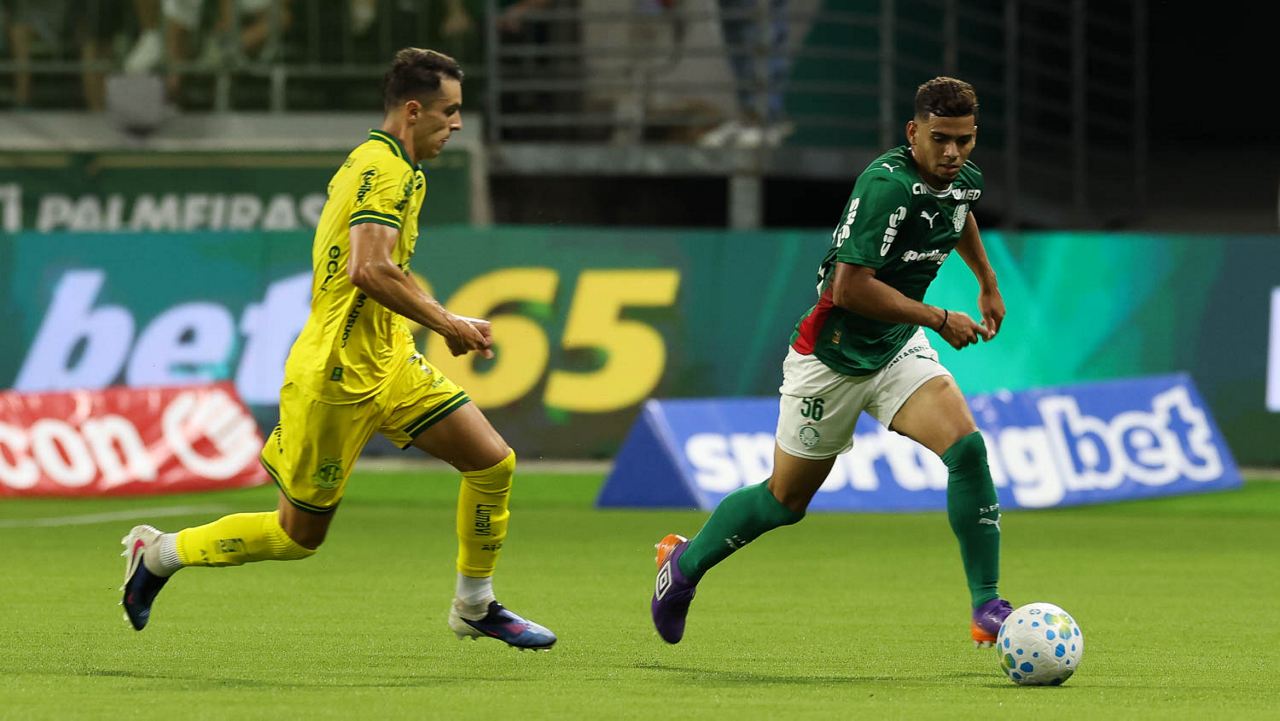 O jogador Bruno Fuchs, da SE Palmeiras, em jogo contra a equipe do Mirassol FC, durante partida válida pela sexta rodada, do Campeonato Brasileiro, Série A, na arena Allianz Parque. (Foto: Cesar Greco/Palmeiras/by Canon)