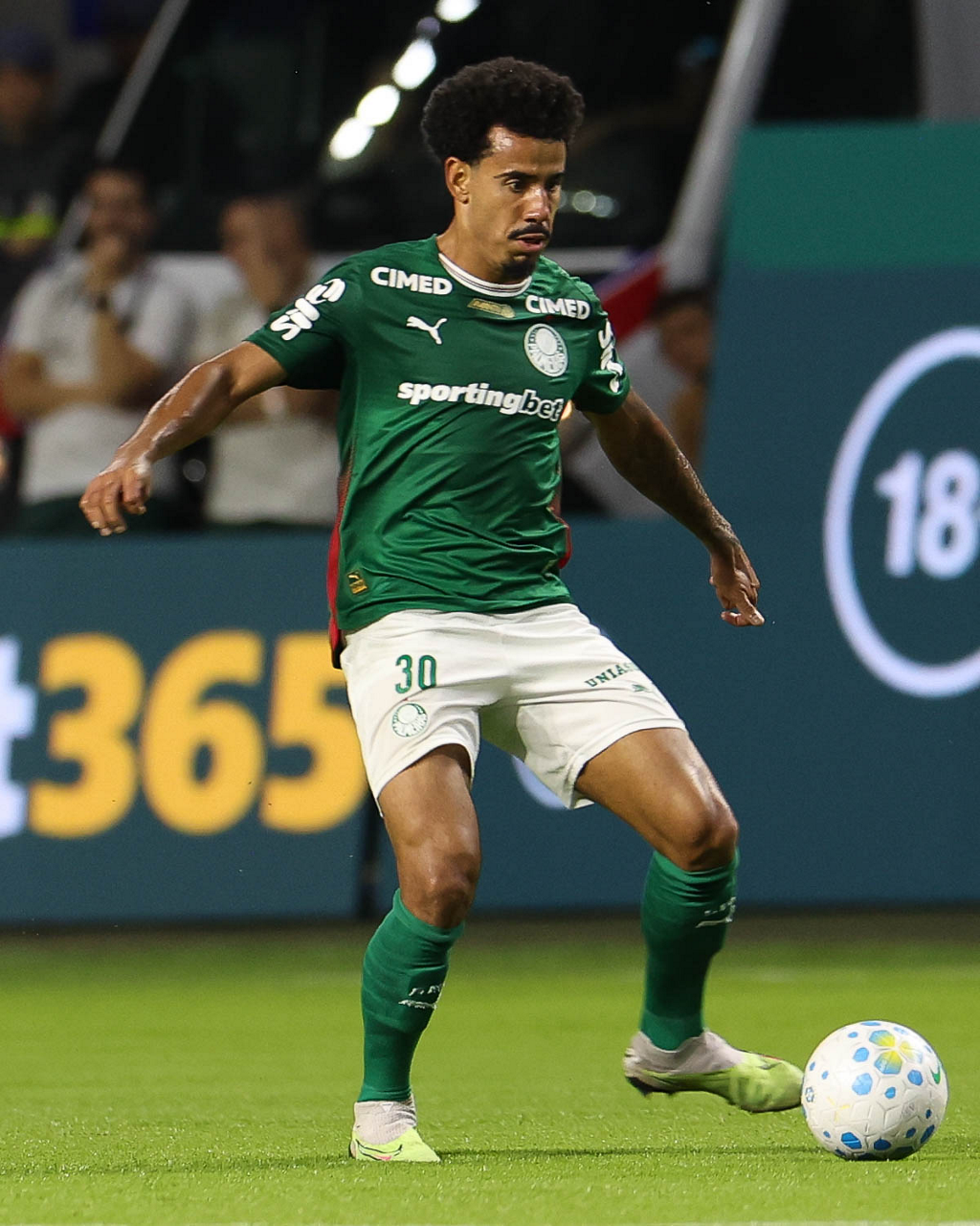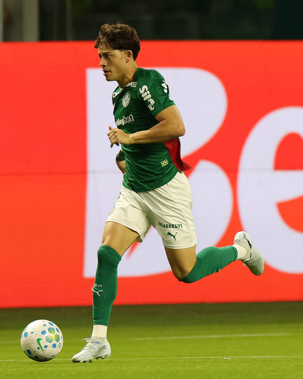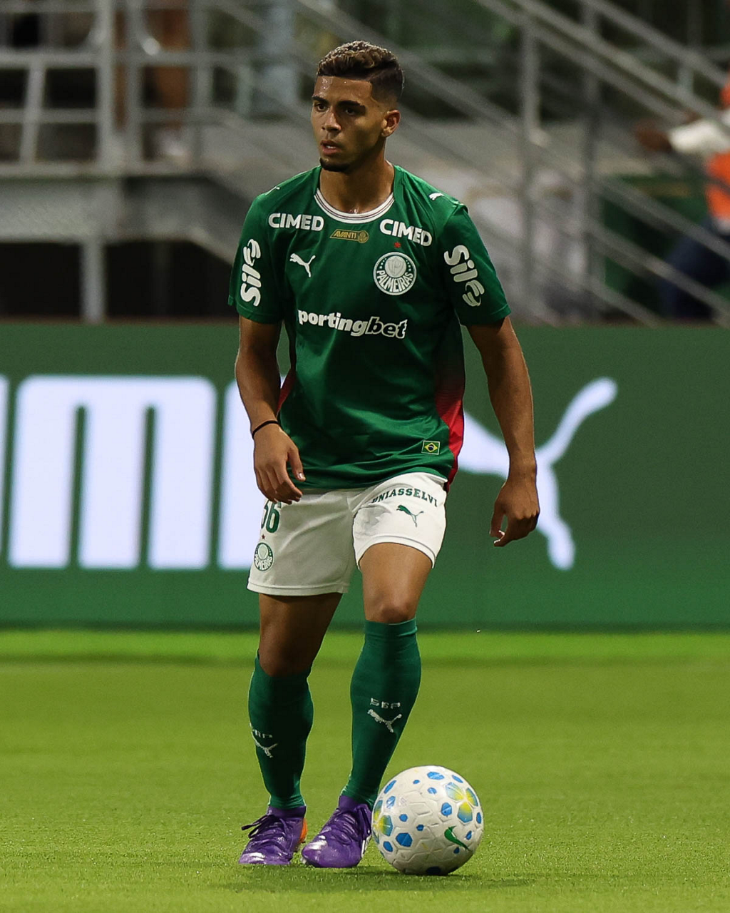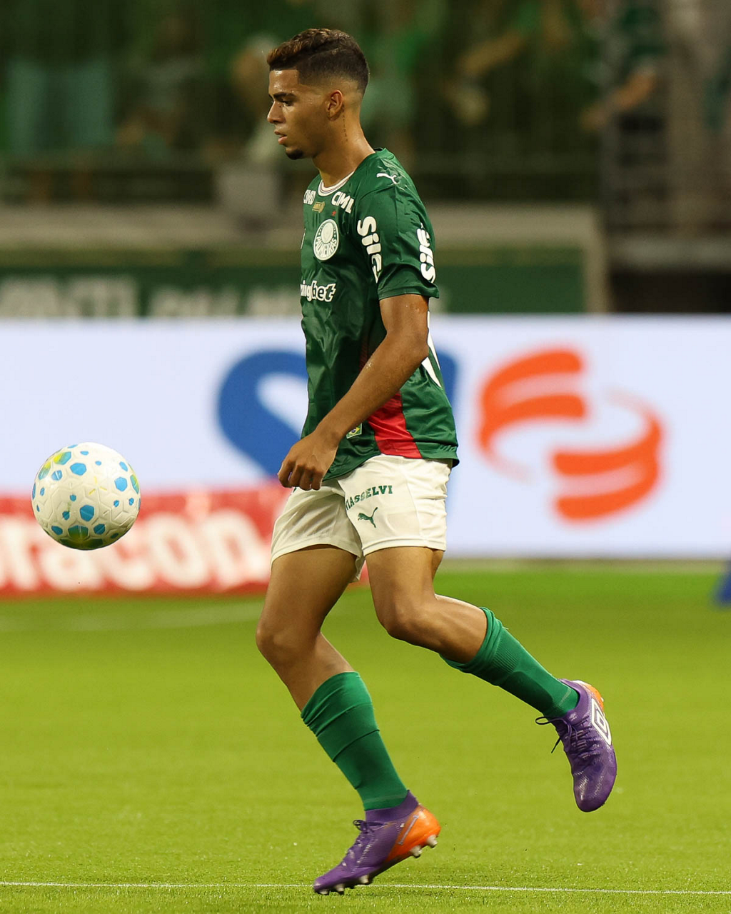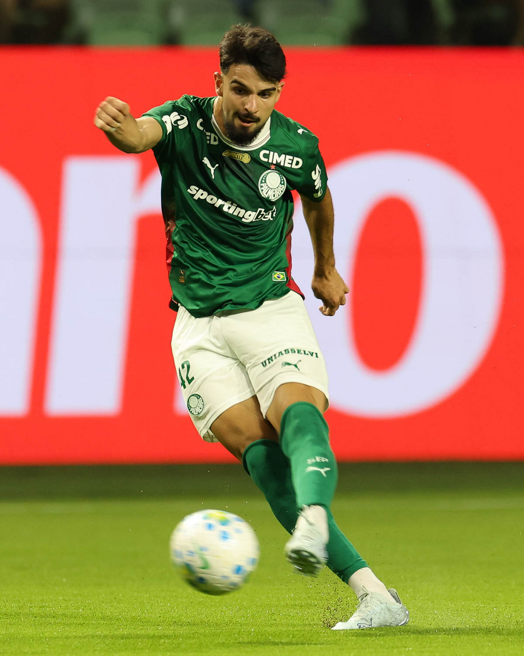 O jogador Bruno Fuchs, da SE Palmeiras, em jogo contra a equipe do Mirassol FC, durante partida válida pela sexta rodada, do Campeonato Brasileiro, Série A, na arena Allianz Parque. (Foto: Cesar Greco/Palmeiras/by Canon)