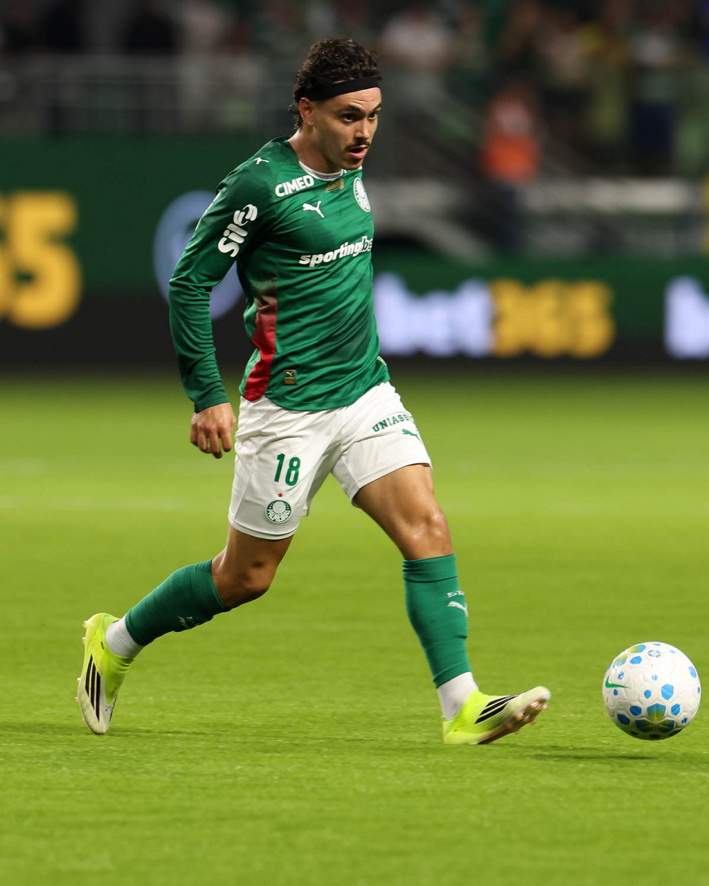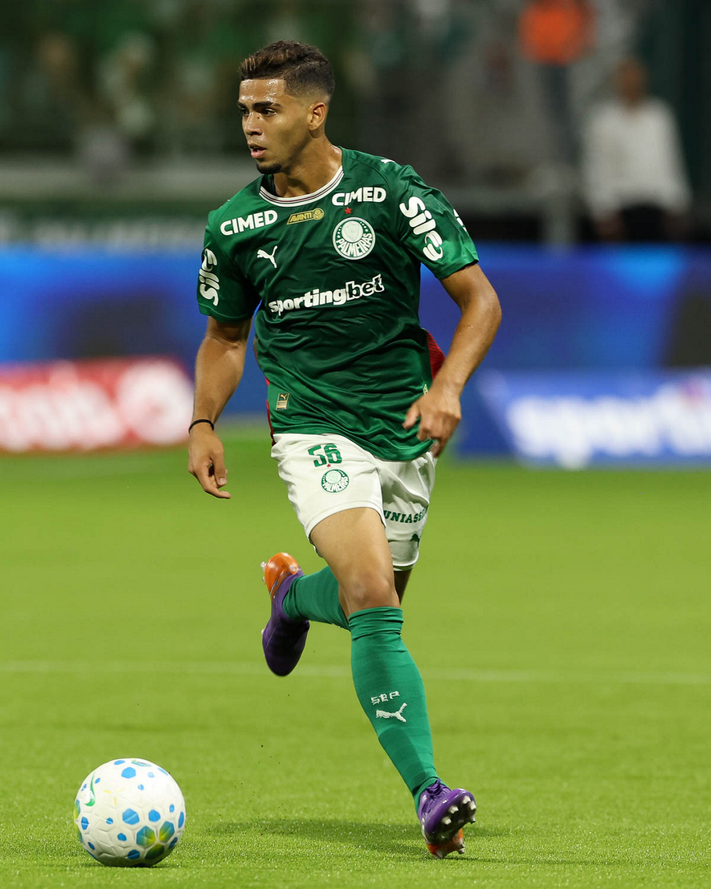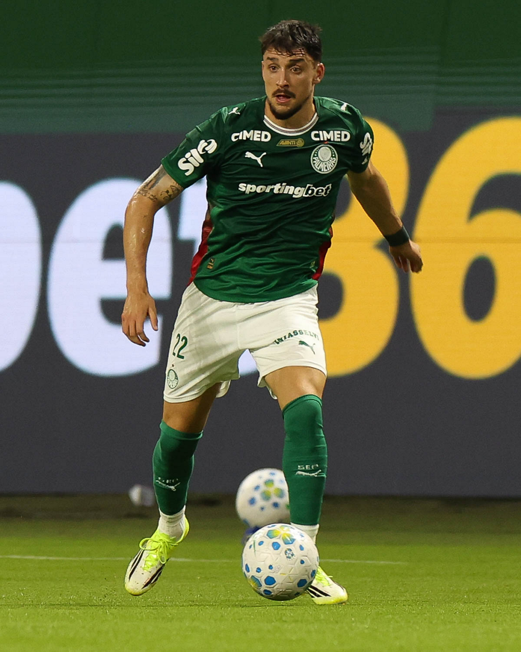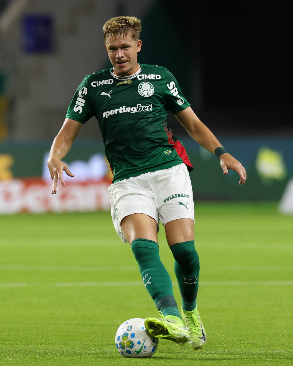 O jogador Bruno Fuchs, da SE Palmeiras, em jogo contra a equipe do Mirassol FC, durante partida válida pela sexta rodada, do Campeonato Brasileiro, Série A, na arena Allianz Parque. (Foto: Cesar Greco/Palmeiras/by Canon)