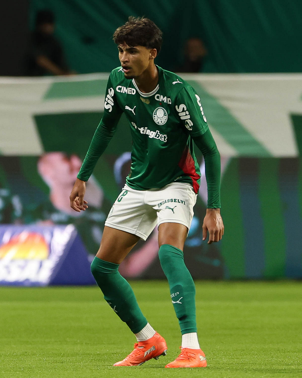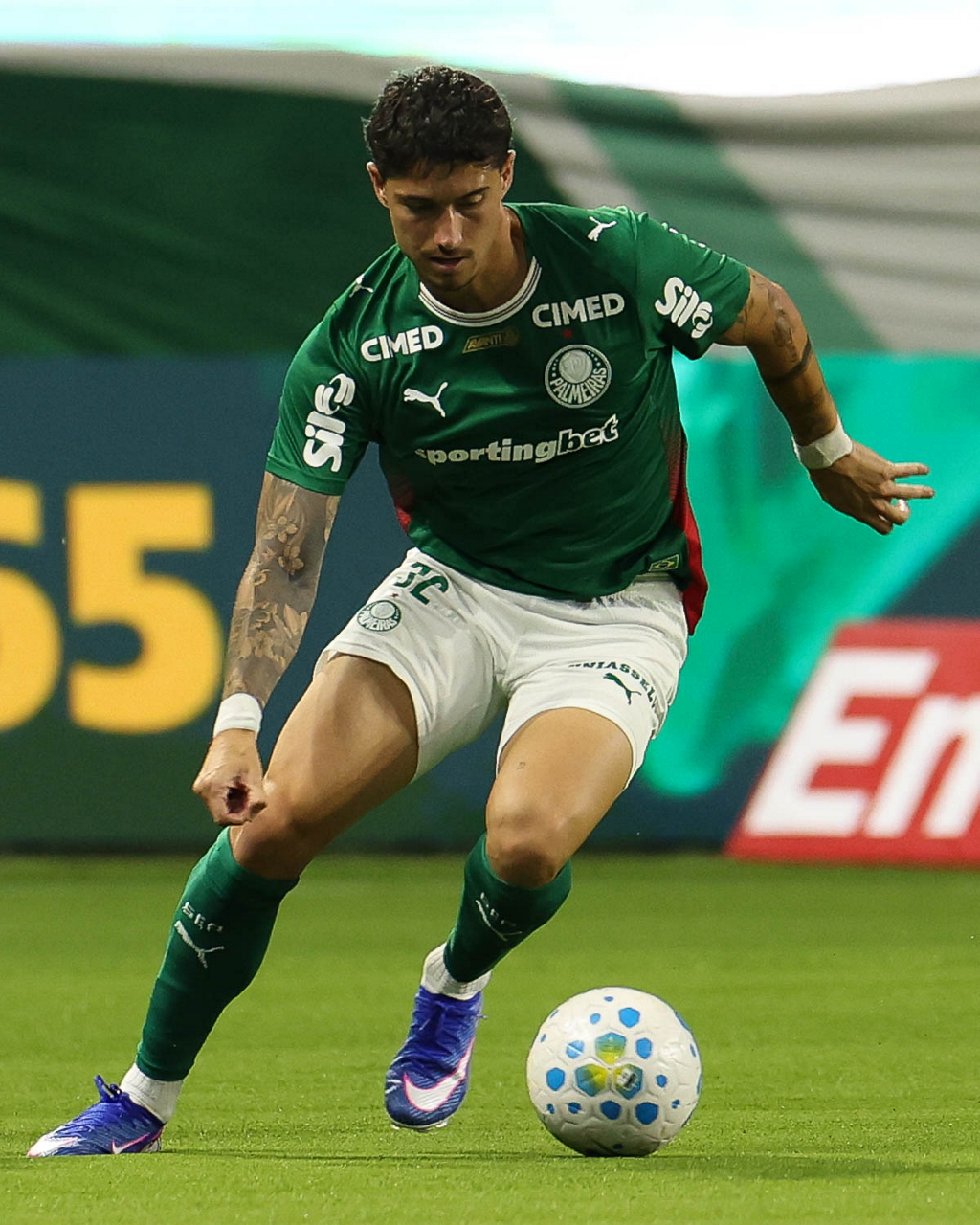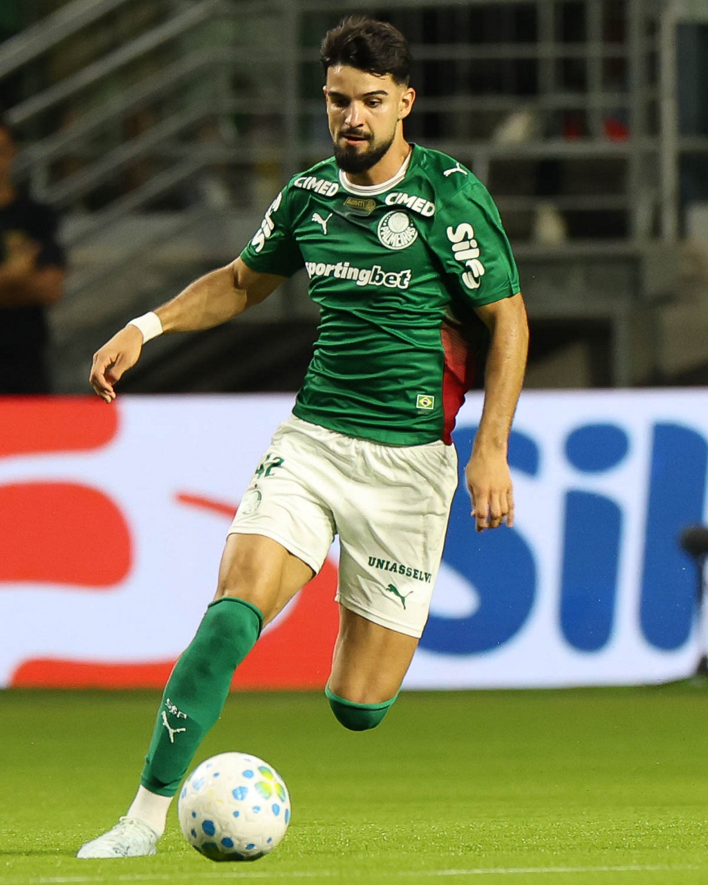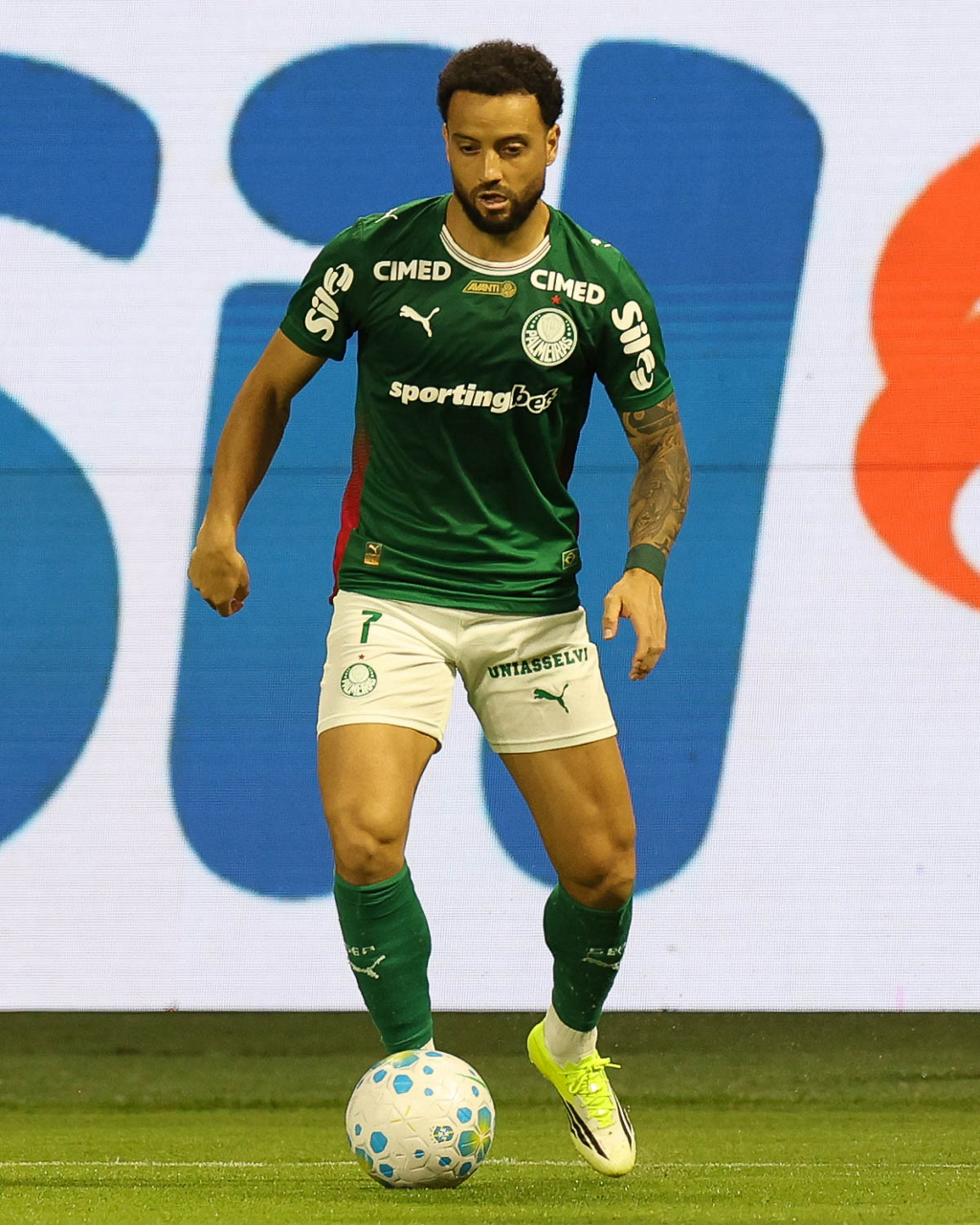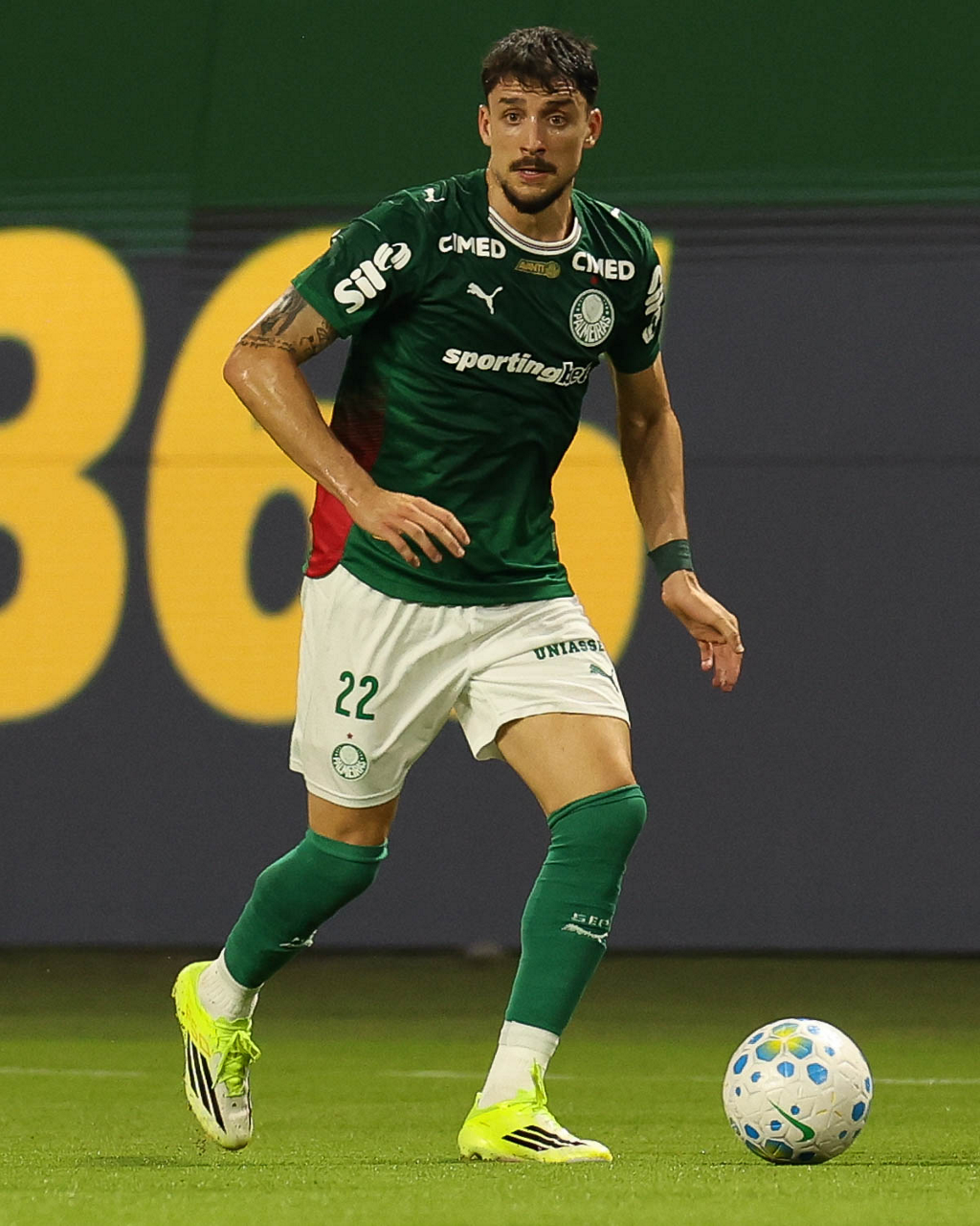 O jogador Bruno Fuchs, da SE Palmeiras, em jogo contra a equipe do Mirassol FC, durante partida válida pela sexta rodada, do Campeonato Brasileiro, Série A, na arena Allianz Parque. (Foto: Cesar Greco/Palmeiras/by Canon)