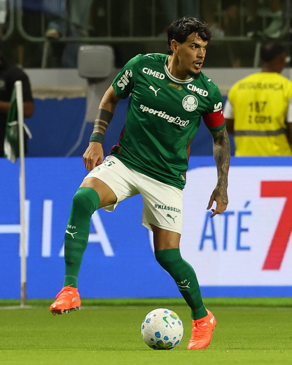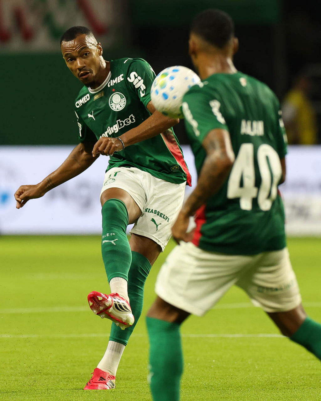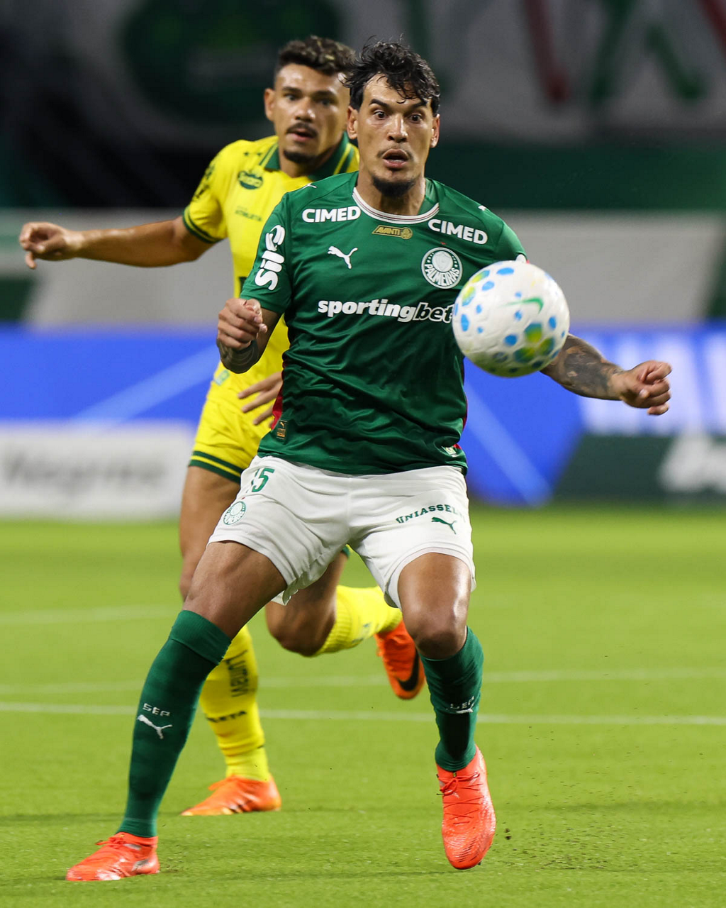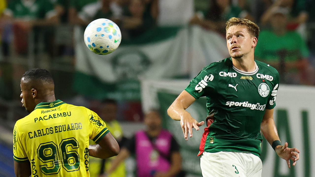 O jogador Larson, da SE Palmeiras, em jogo contra a equipe do Mirassol FC, durante partida válida pela sexta rodada, do Campeonato Brasileiro, Série A, na arena Allianz Parque. (Foto: Cesar Greco/Palmeiras/by Canon)