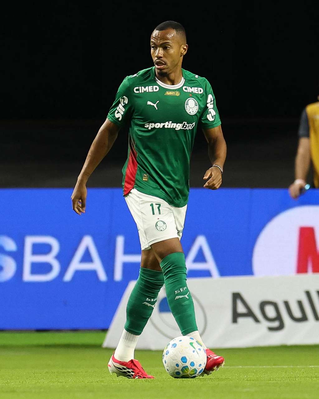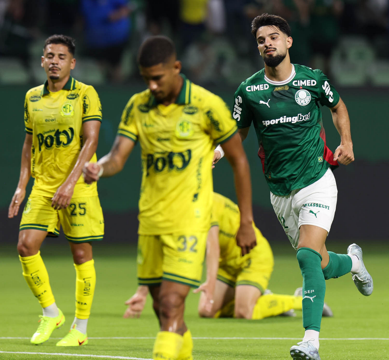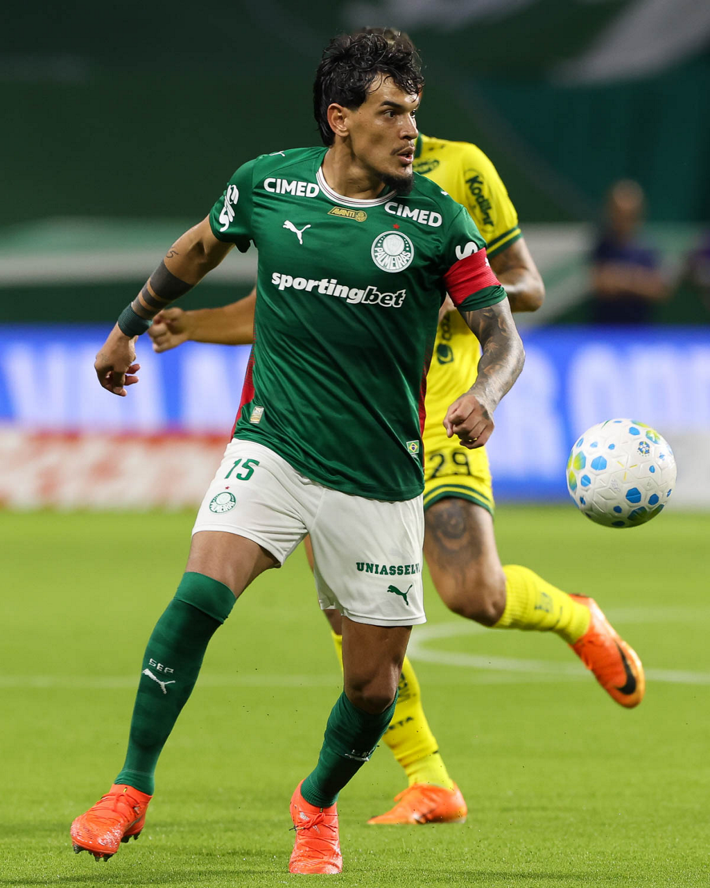 O jogador Larson, da SE Palmeiras, em jogo contra a equipe do Mirassol FC, durante partida válida pela sexta rodada, do Campeonato Brasileiro, Série A, na arena Allianz Parque. (Foto: Cesar Greco/Palmeiras/by Canon)