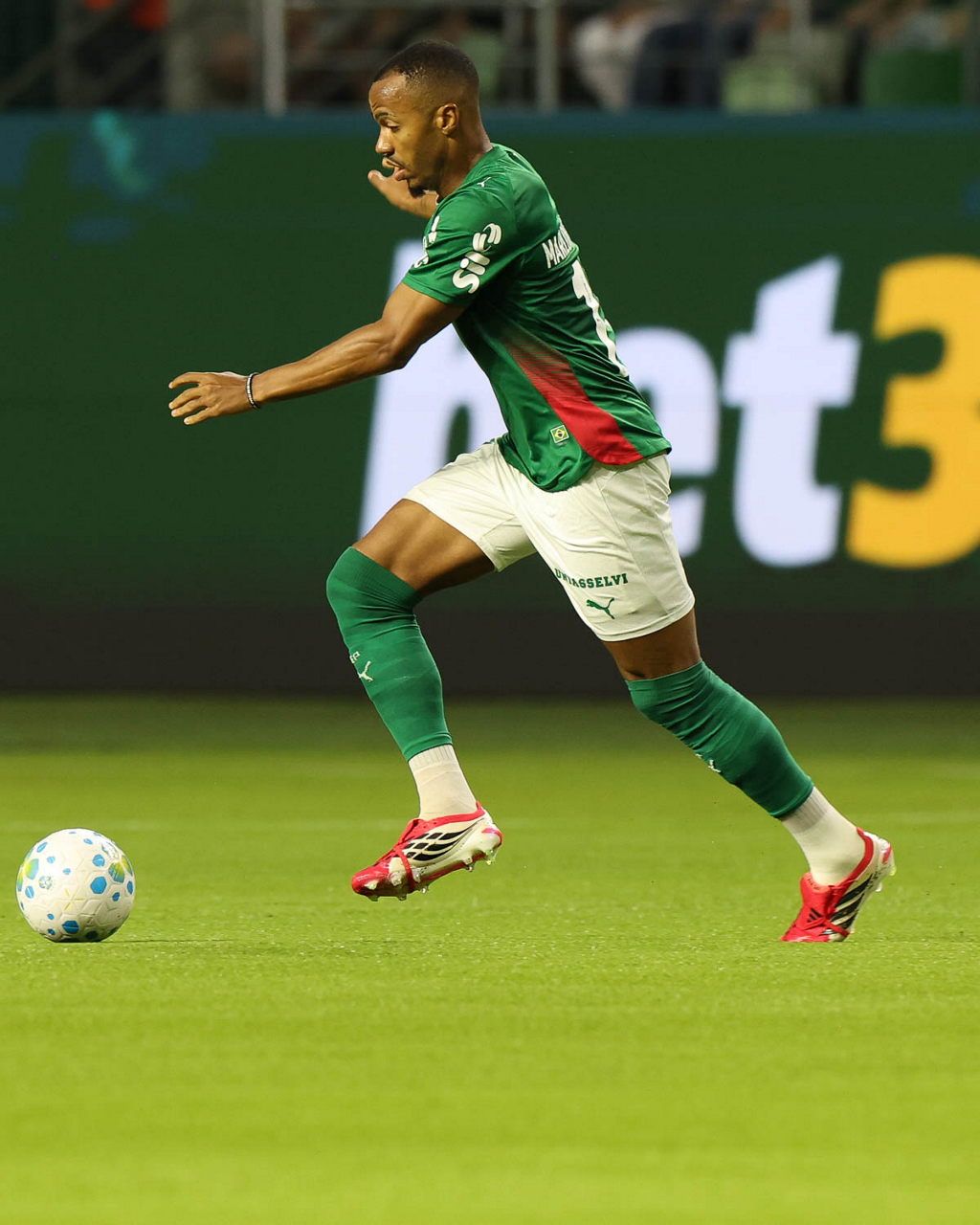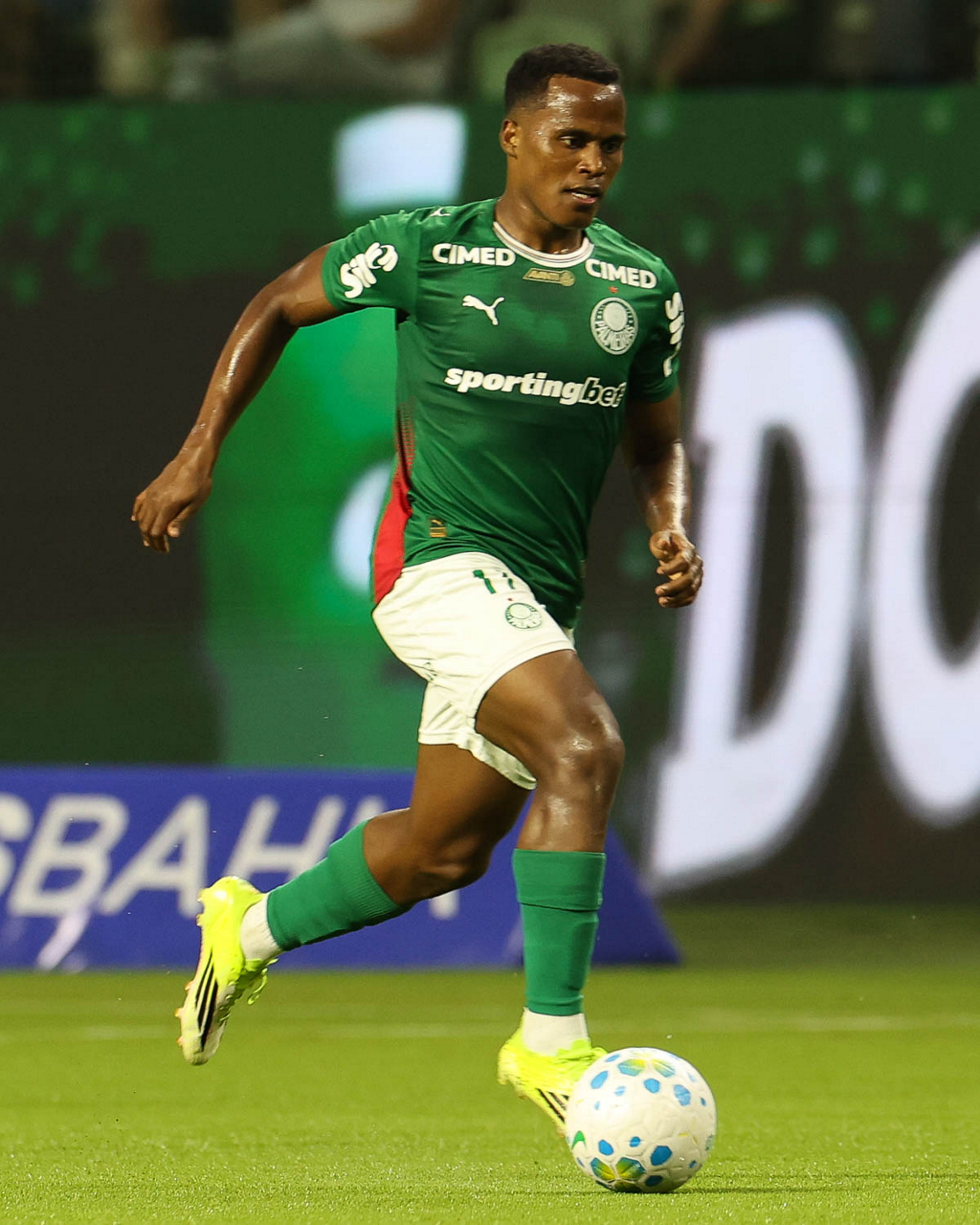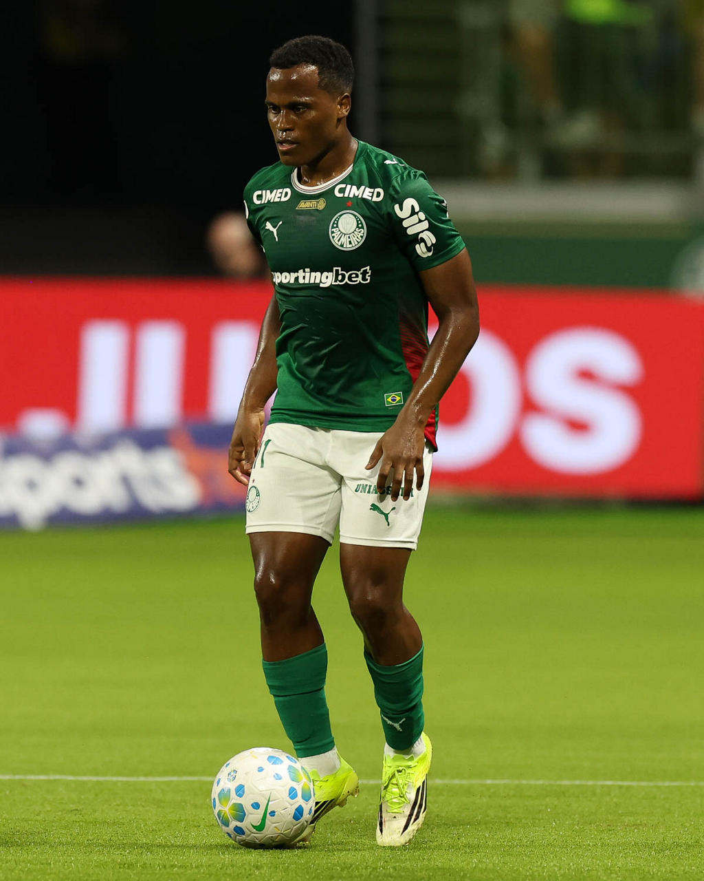 O jogador Jhon Arias, da SE Palmeiras, em jogo contra a equipe do Mirassol FC, durante partida válida pela sexta rodada, do Campeonato Brasileiro, Série A, na arena Allianz Parque. (Foto: Cesar Greco/Palmeiras/by Canon)