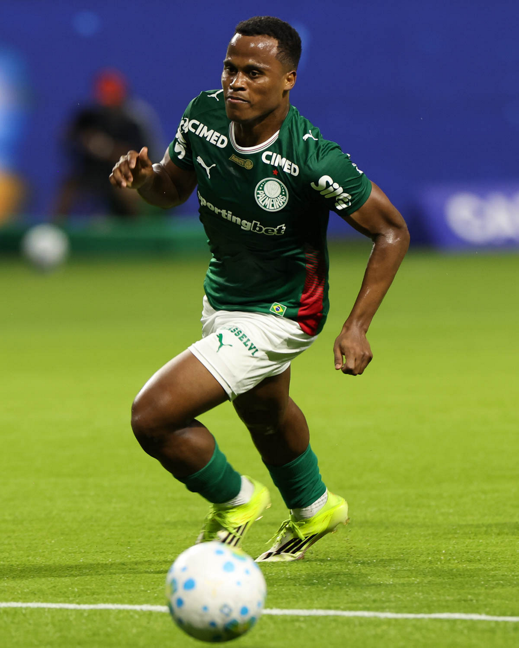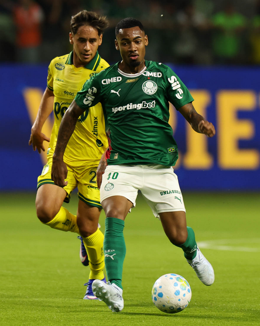 O jogador Lucas Evangelista, da SE Palmeiras, em jogo contra a equipe do Mirassol FC, durante partida válida pela sexta rodada, do Campeonato Brasileiro, Série A, na arena Allianz Parque. (Foto: Cesar Greco/Palmeiras/by Canon)