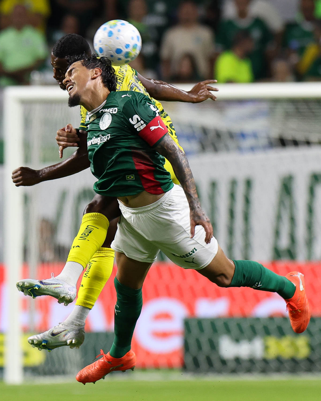 O jogador Arthur, da SE Palmeiras, disputa bola com o jogador do Mirassol FC, durante partida válida pela sexta rodada, do Campeonato Brasileiro, Série A, na arena Allianz Parque. (Foto: Cesar Greco/Palmeiras/by Canon)