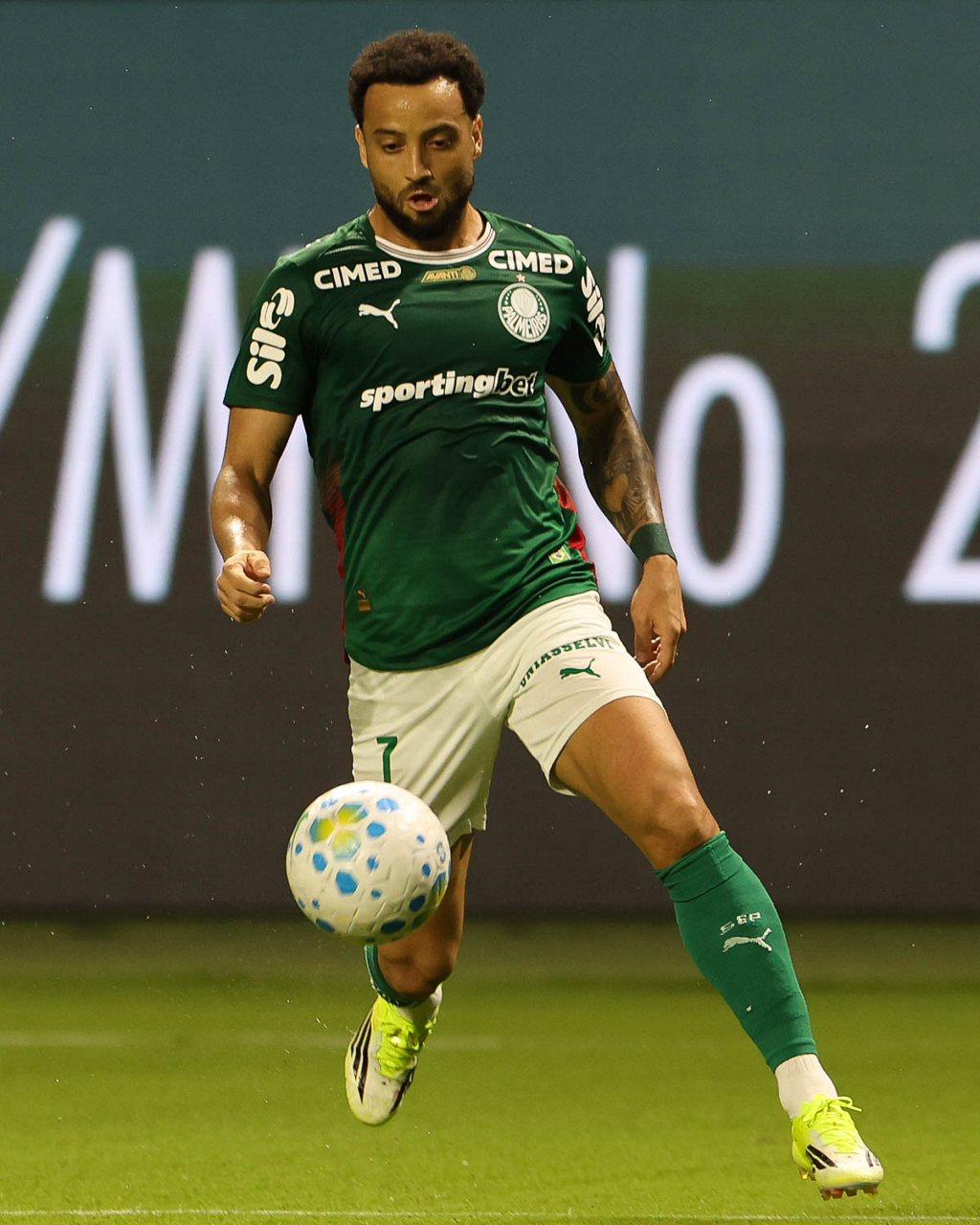 O jogador Felipe Anderson, da SE Palmeiras, em jogo contra a equipe do Mirassol FC, durante partida válida pela sexta rodada, do Campeonato Brasileiro, Série A, na arena Allianz Parque. (Foto: Cesar Greco/Palmeiras/by Canon)