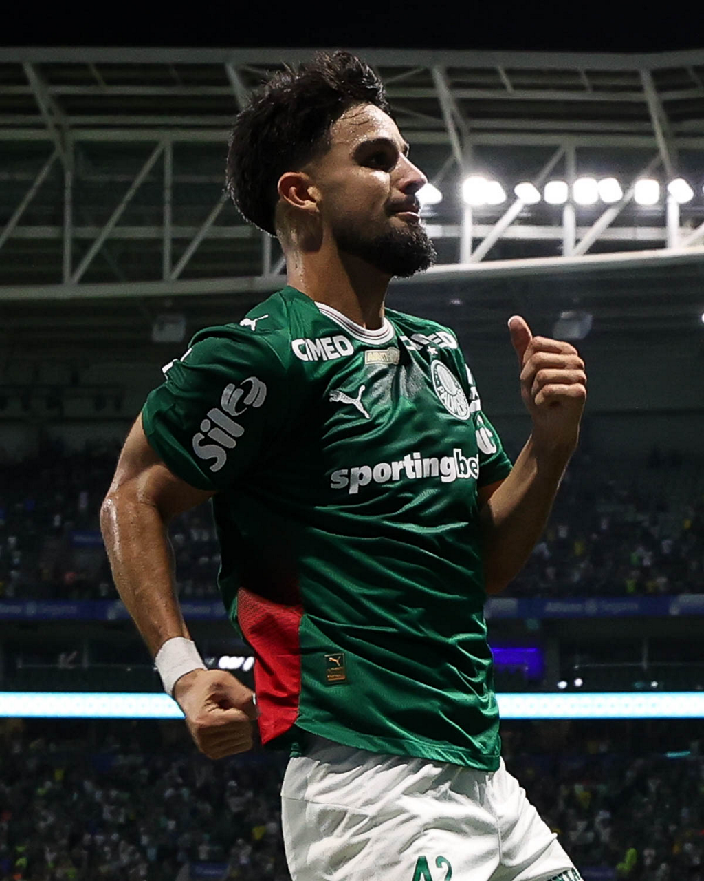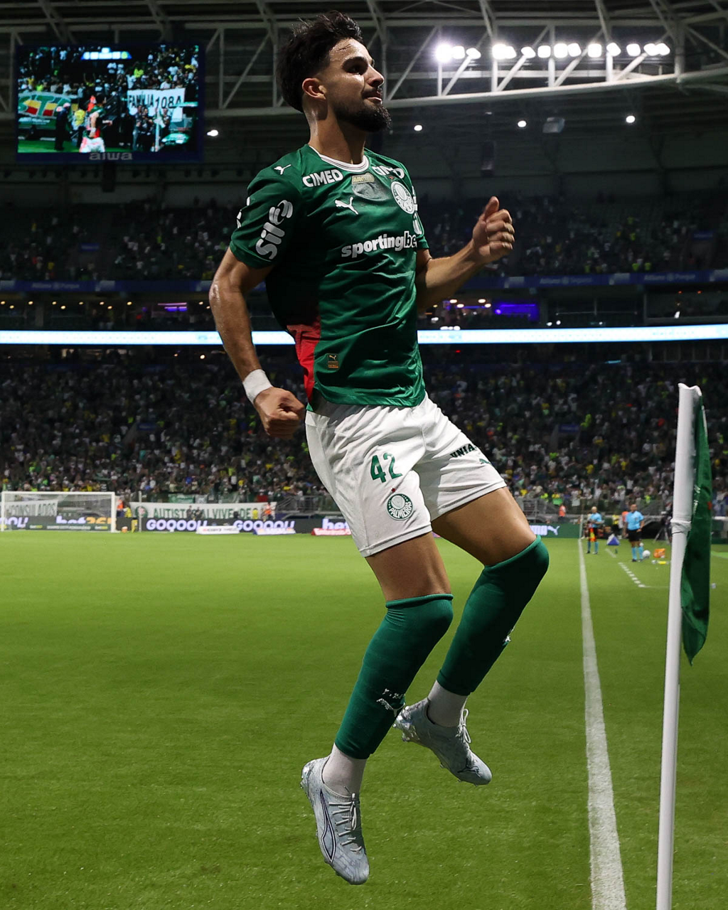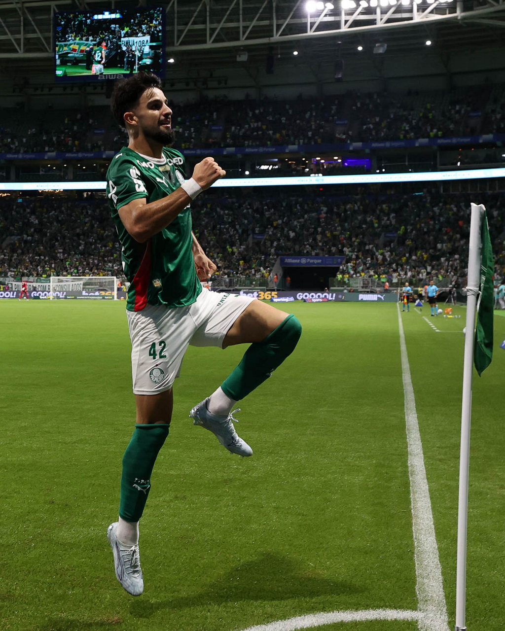 O jogador Flaco López, da SE Palmeiras, comemora seu gol contra a equipe do Mirassol FC, durante partida válida pela sexta rodada, do Campeonato Brasileiro, Série A, na arena Allianz Parque. (Foto: Cesar Greco/Palmeiras/by Canon)